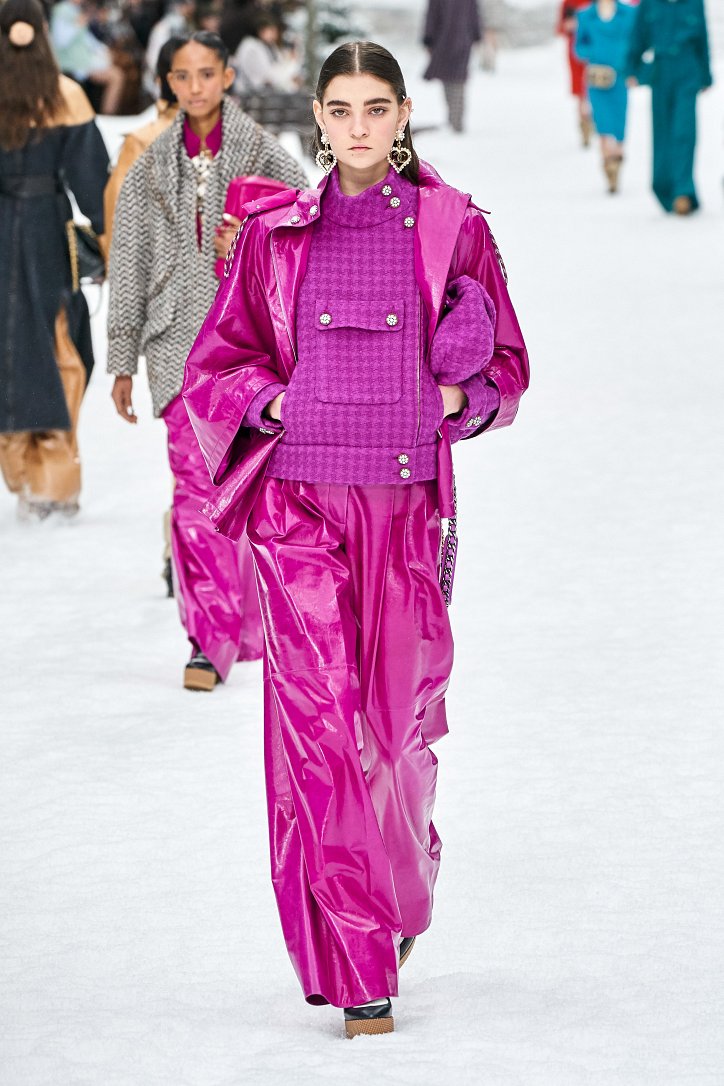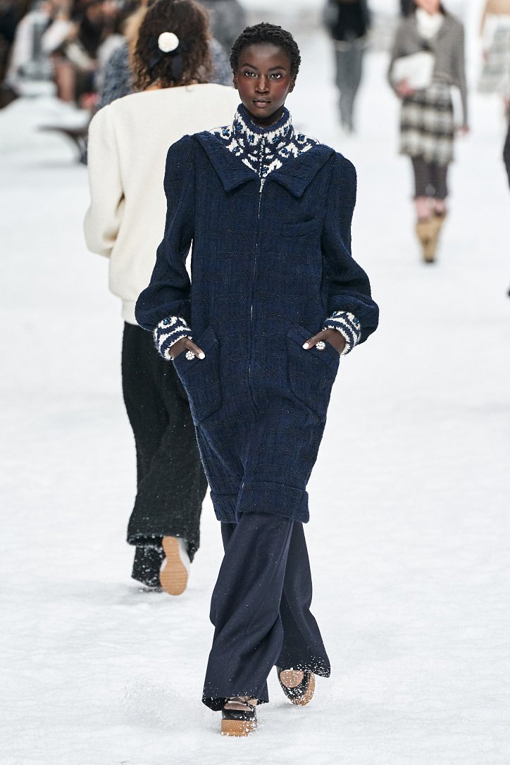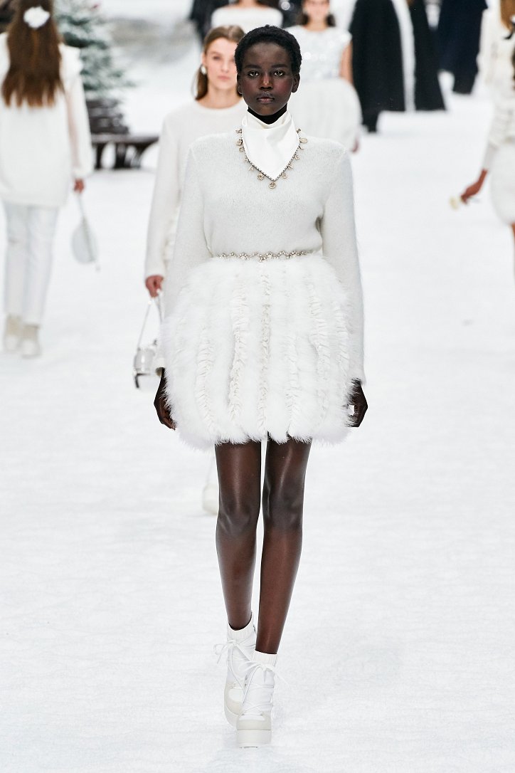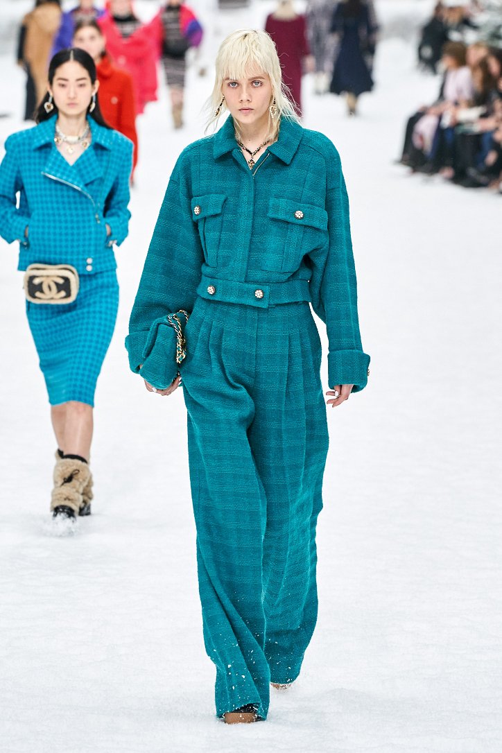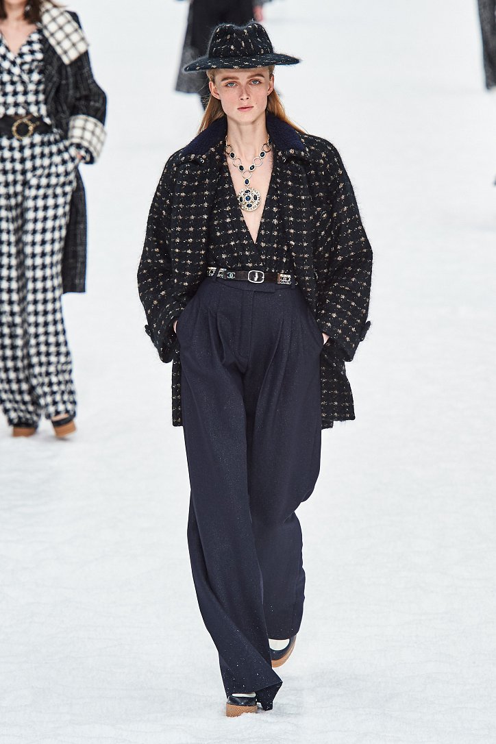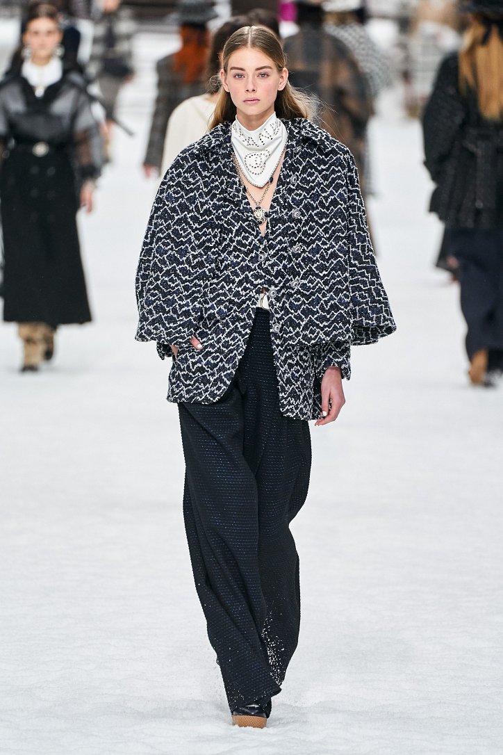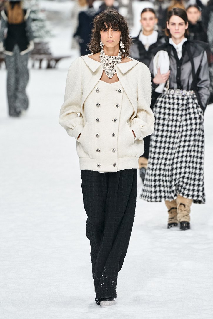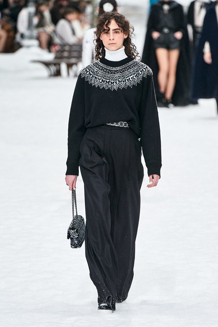 В последний раз гости шоу могли полюбоваться творениями, к созданию которых был причастен Лагерфельд. Своеобразное «прощание» состоялось на горнолыжном курорте: на фоне заснеженной альпийской деревни, деревянных шале и покрытых снегом елок модели демонстрировали анонсированную в прошлом году коллекцию Coco Neige. В ней есть все, что нужно для того, чтобы покататься на лыжах или отправиться на прогулку, а вечером посидеть у камина: вязаные кардиганы, шерстяные брюки и зимние юбки, яркие пуховики и пальто макси, обилие твида и всевозможной клетки, длинные кейпы и роскошные белые платья-мини – прекрасный наряд для встречи Нового года в горах.