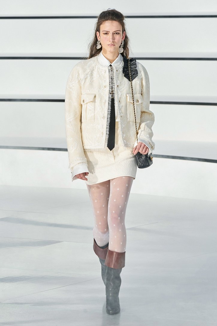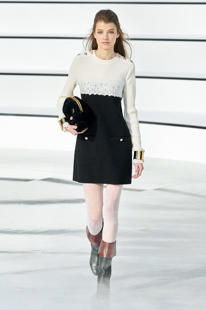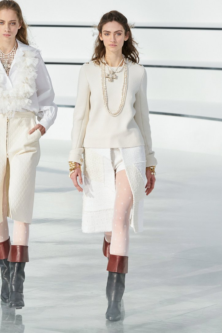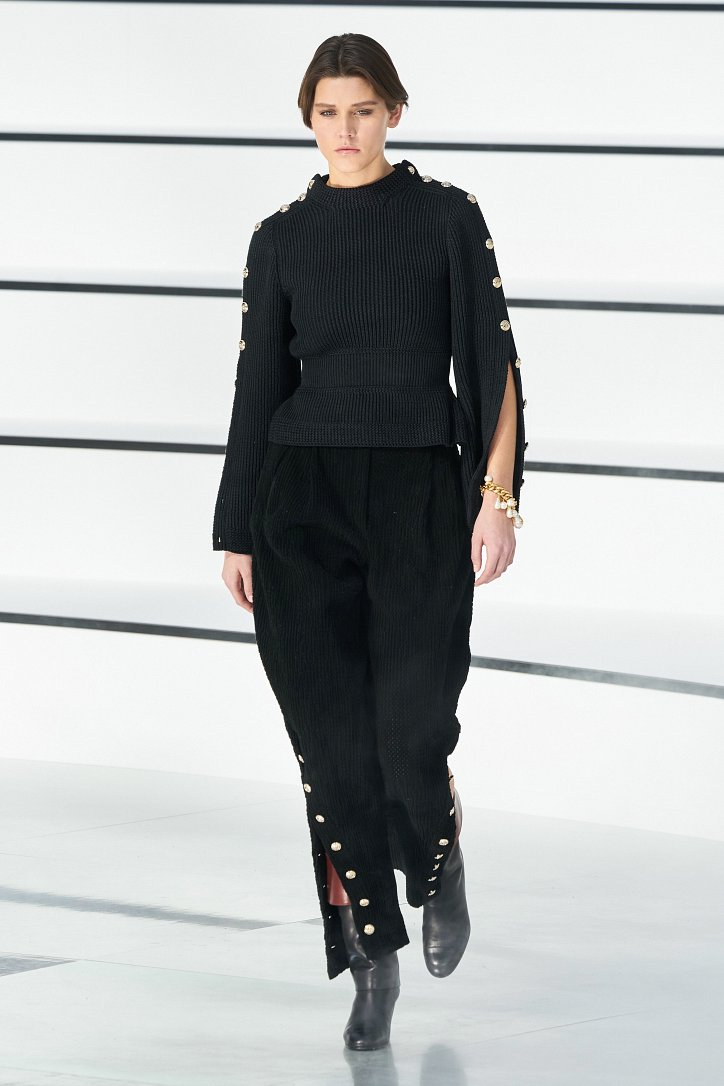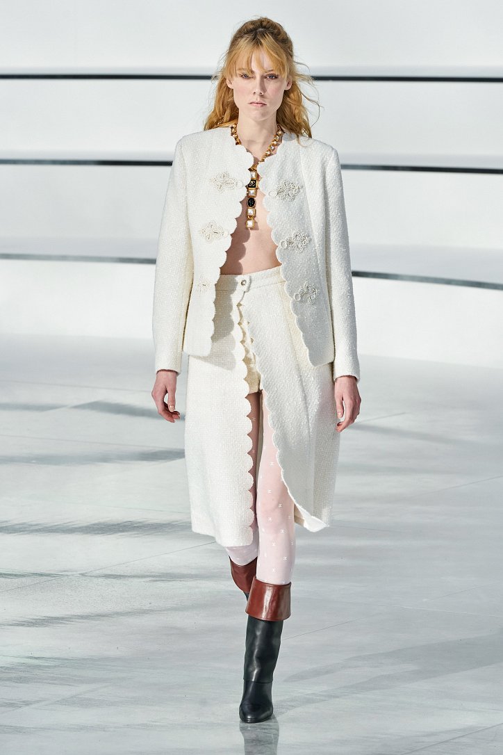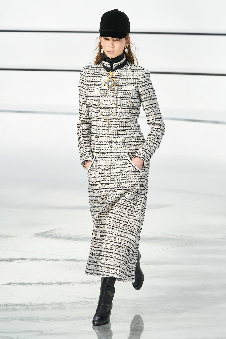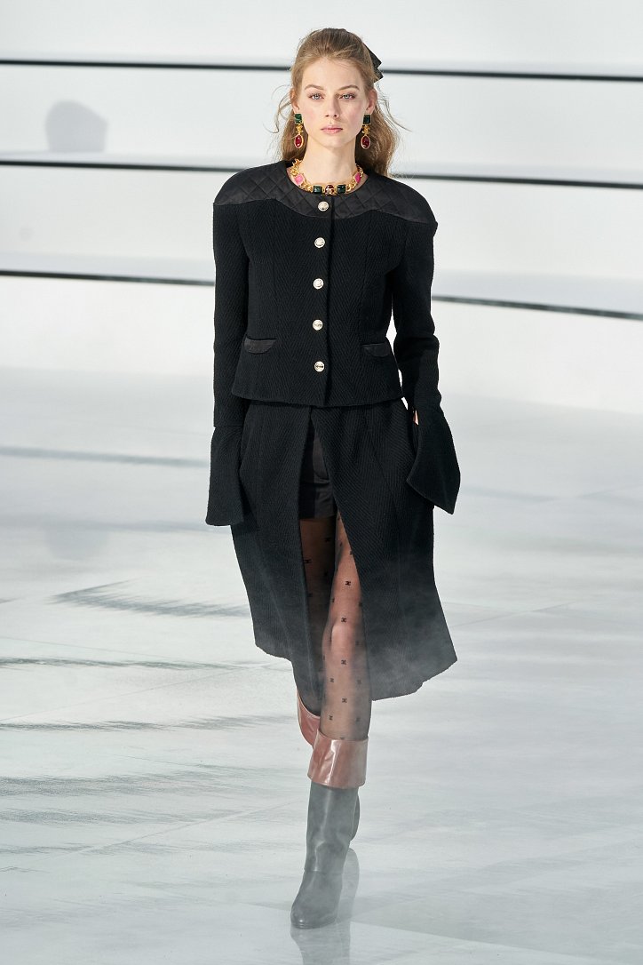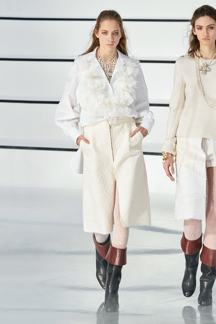 Благодаря страсти мадемуазель Коко к скачкам и образу Карла Лагерфельда, который запечатлен в сапогах для верховой езды и «утреннем» пиджаке с жилетом, в коллекции появилась череда легких и непринужденных образов. Юбки с высокими разрезами чередовались с брюками, которые расстегивались по боковым швам, длинные пальто с пуговицами только до пояса соседствовали с белыми свободными блузками, а твидовые жакеты – с кружевными топами.