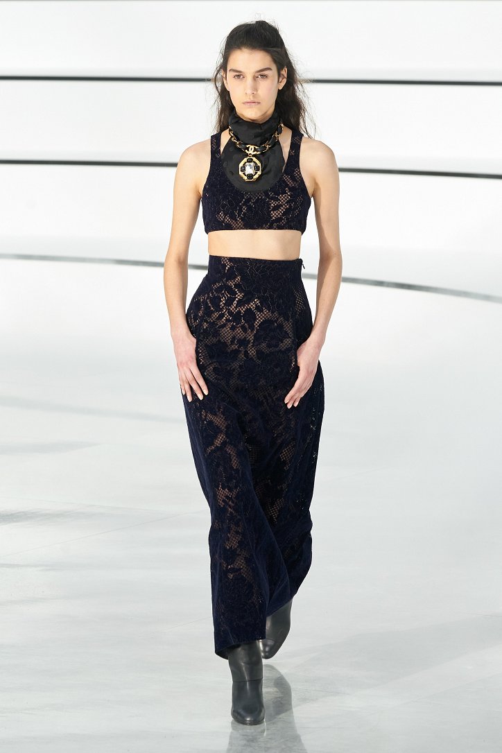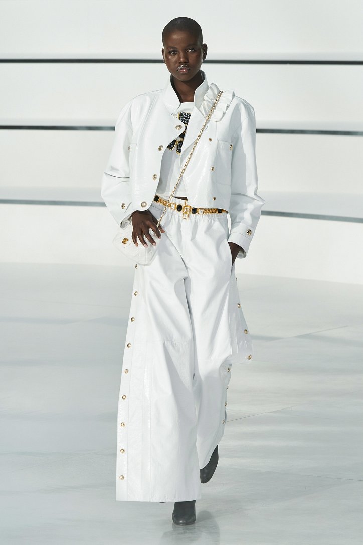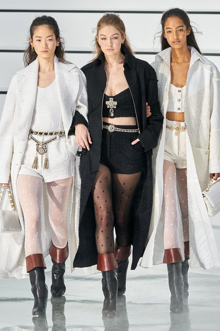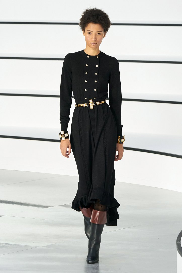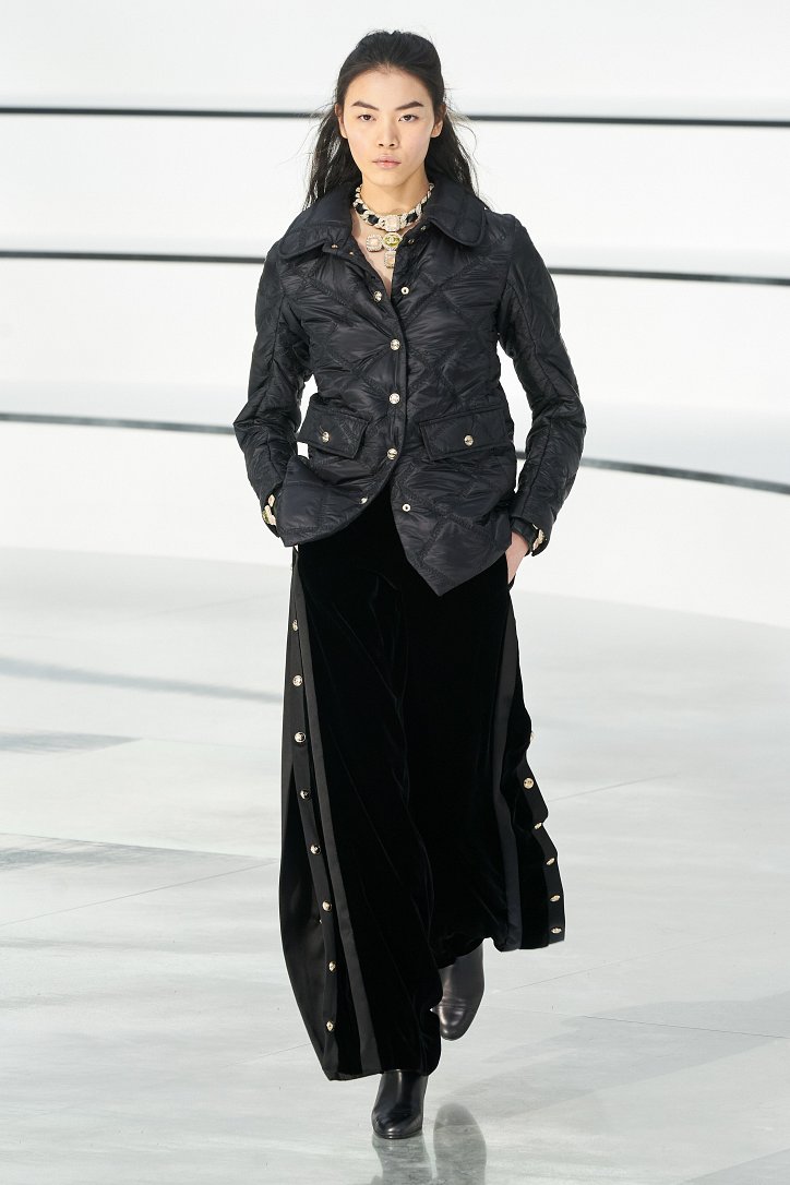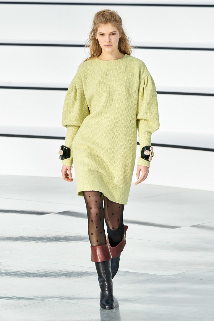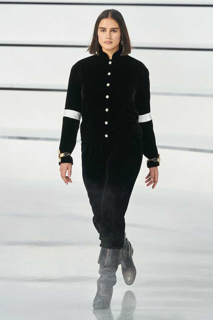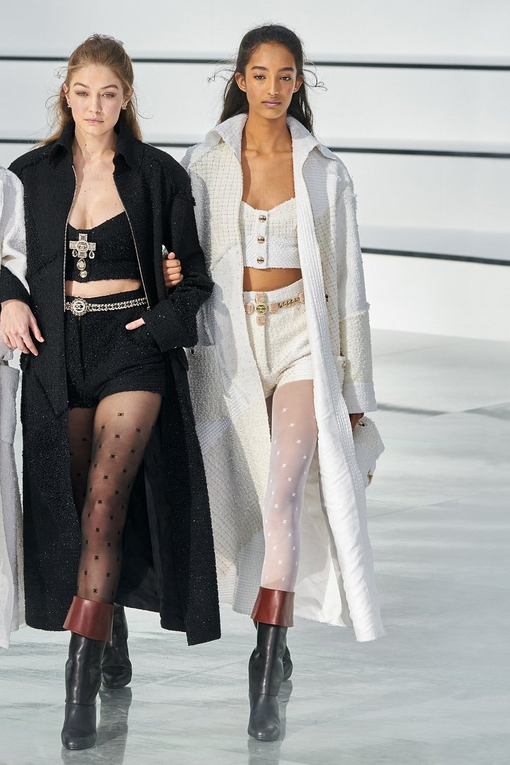Благодаря страсти мадемуазель Коко к скачкам и образу Карла Лагерфельда, который запечатлен в сапогах для верховой езды и «утреннем» пиджаке с жилетом, в коллекции появилась череда легких и непринужденных образов. Юбки с высокими разрезами чередовались с брюками, которые расстегивались по боковым швам, длинные пальто с пуговицами только до пояса соседствовали с белыми свободными блузками, а твидовые жакеты – с кружевными топами.