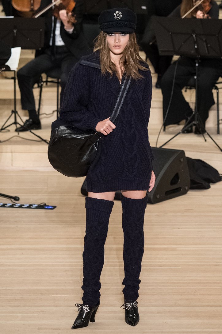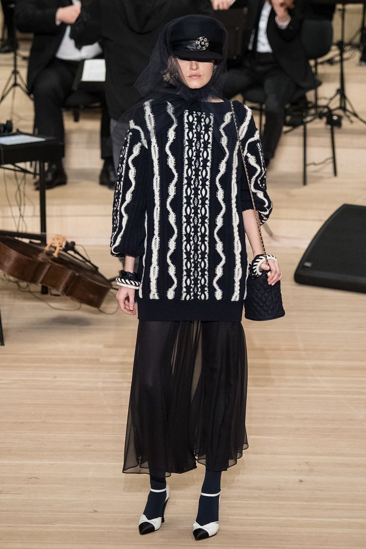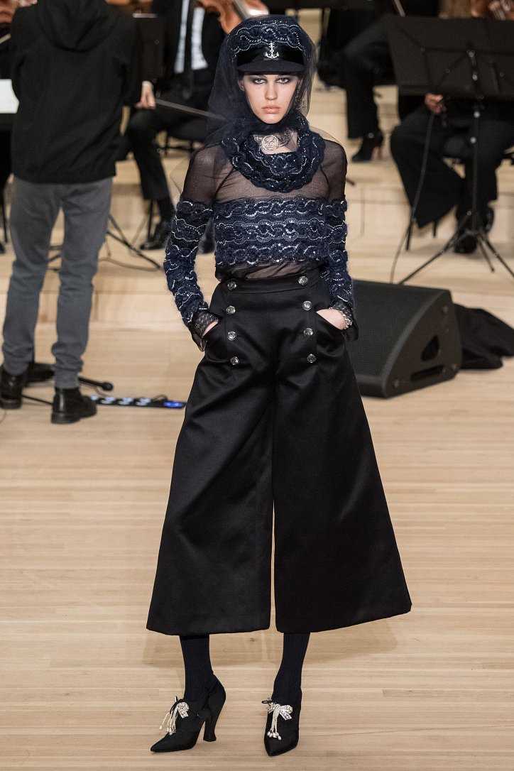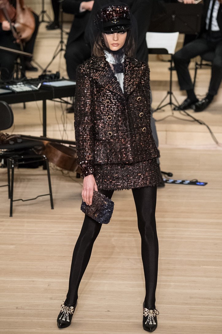 Кроме того, дизайнер решил продемонстрировать, на что способны и другие бренды, принадлежащие Chanel: головные уборы для коллекции были созданы Maison Michel, пуловеры и высокие гетры из шотландского кашемира - Barrie, украшения выполнили в Goossens, а вышивку – в Lesage.
