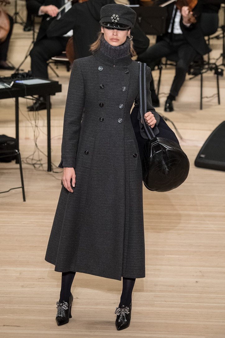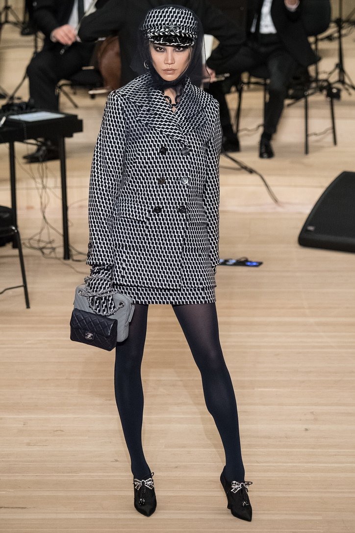 Коллекцию Chanel Карл Лагерфельд решил показать в родном Гамбурге. Наследие Коко Шанель дизайнер «согласовал» с модой 60-ых, причем выбрал для коллекции те тренды, которые относятся к морю и порту (ведь Гамбург – один из крупнейших портовых городов Европы): стиль моряков явно просматривался в широких брюках с клешем от бедра и головных уборах с кокардами, а о фирменном стиле дома Шанель не давали забыть твидовые костюмы.