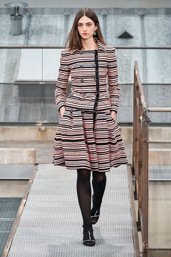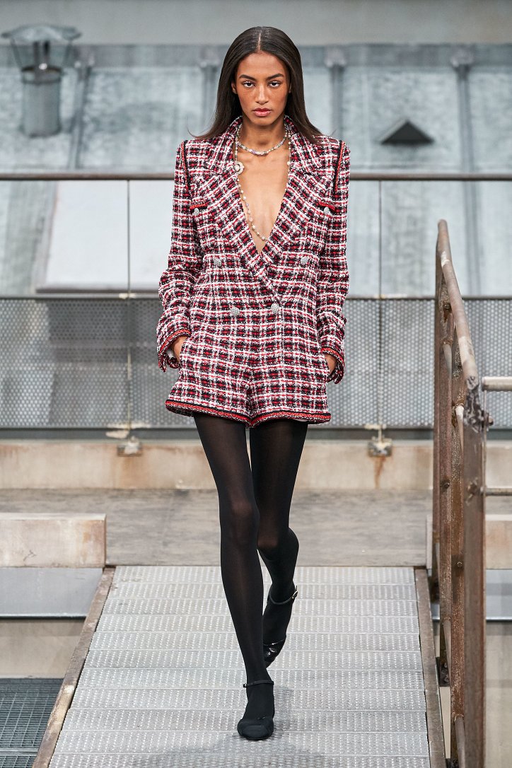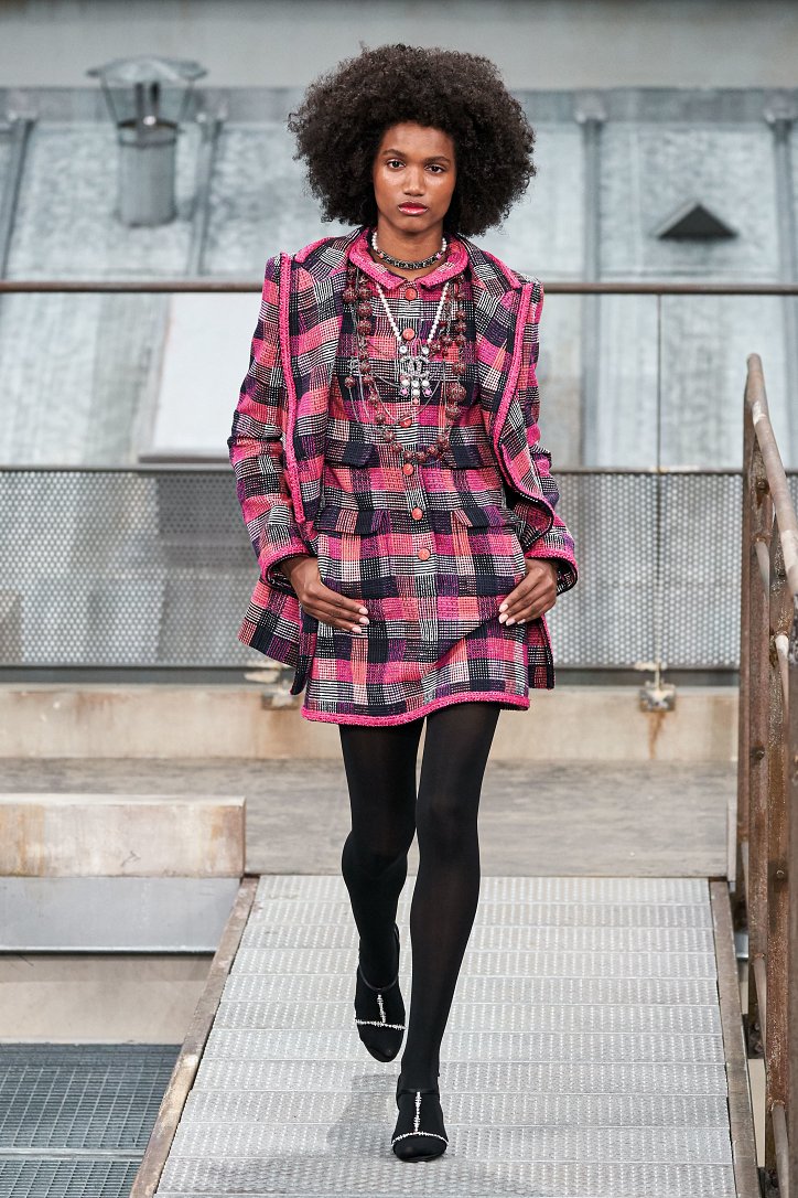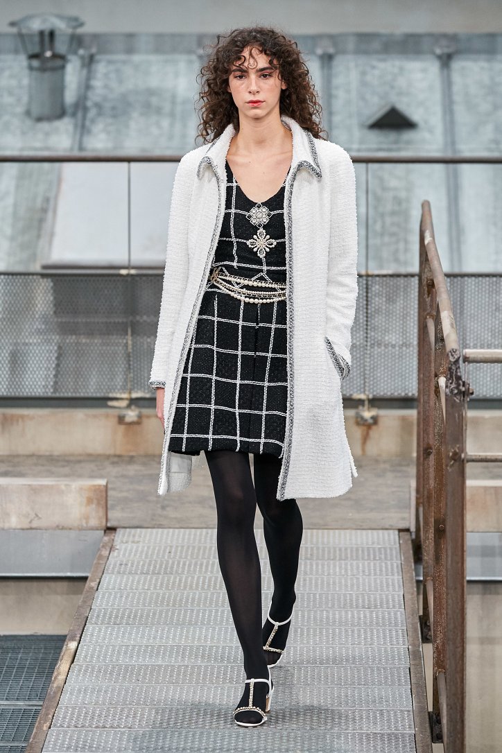 Конечно же, подниматься на верхотуру никому не пришлось – парижские крыши преспокойно разместились прямо в Grand Palais. Причем выглядели они очень реалистично: манекенщицы прогуливались по кровле, проходя между дымоходами и окнами мансард. А так как дамы бальзаковского возраста вряд ли будут гулять по крышам (как бы они не любили Париж!), то коллекция Chanel была явно ориентирована на молодежную аудиторию.