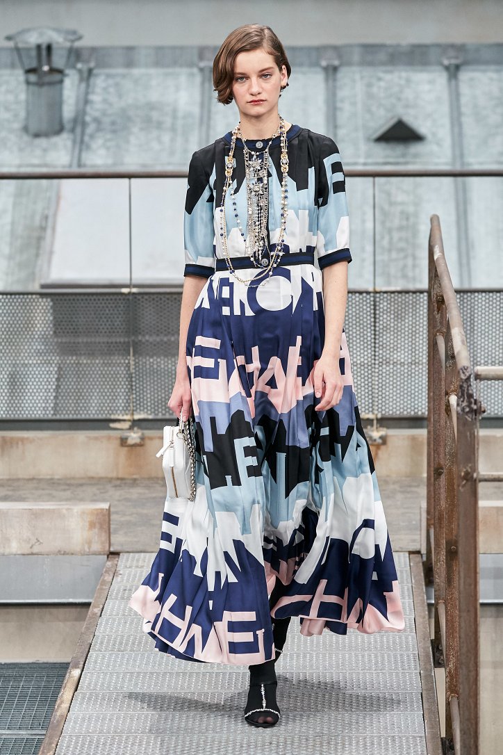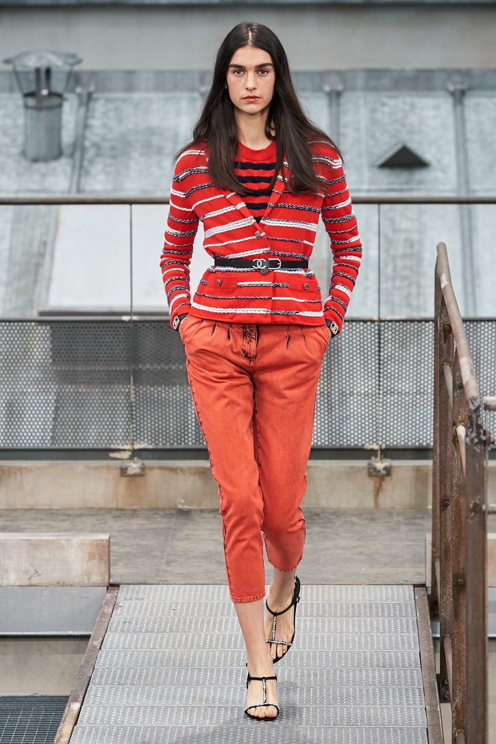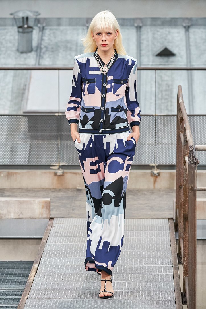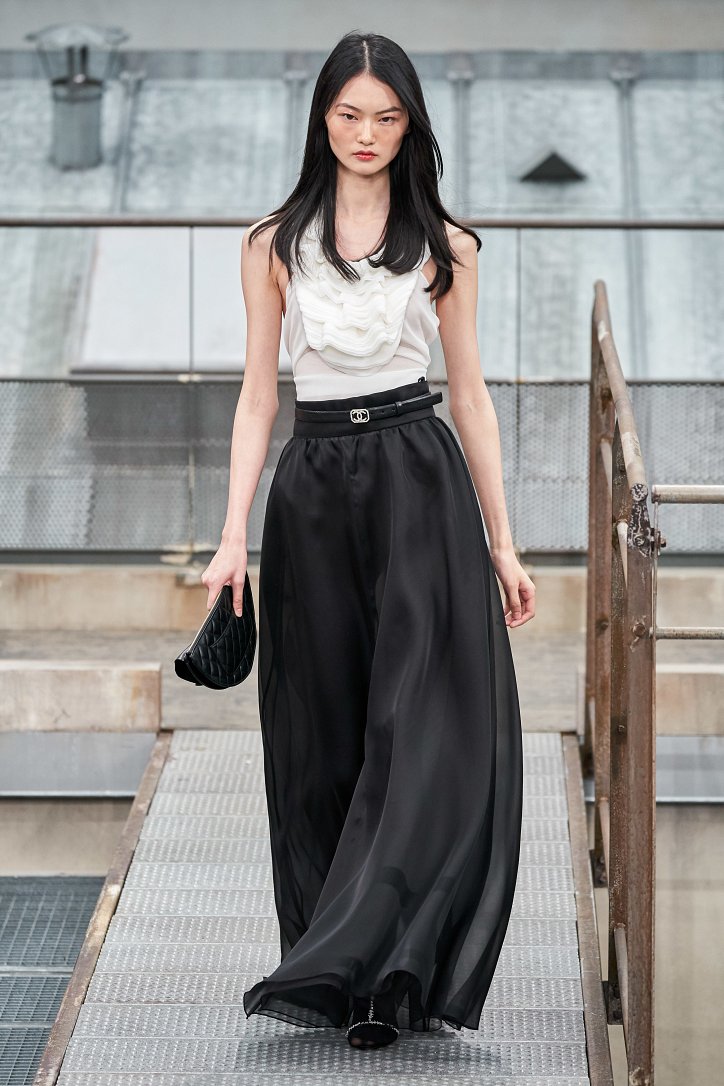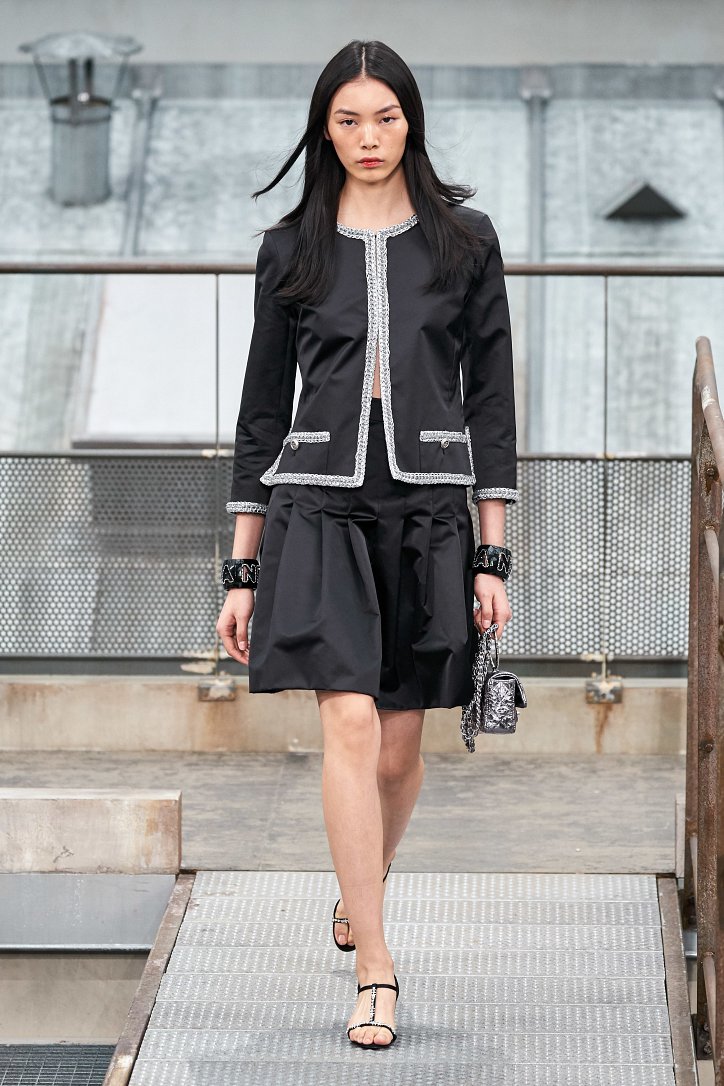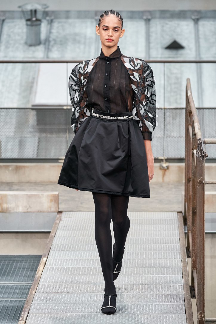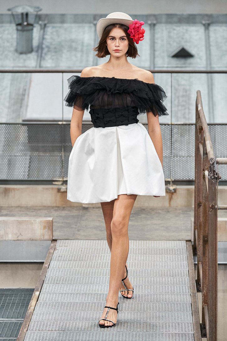 Во главе угла – мини: твидовые платья в стиле 60-ых, шорты, юбки и комбинезоны. Дополнили картину игривые оборки и деним, «рассыпавшийся» по крышам логотип Chanel, акцент на талию и пышные рукава потрясающих черных блуз из шифона.