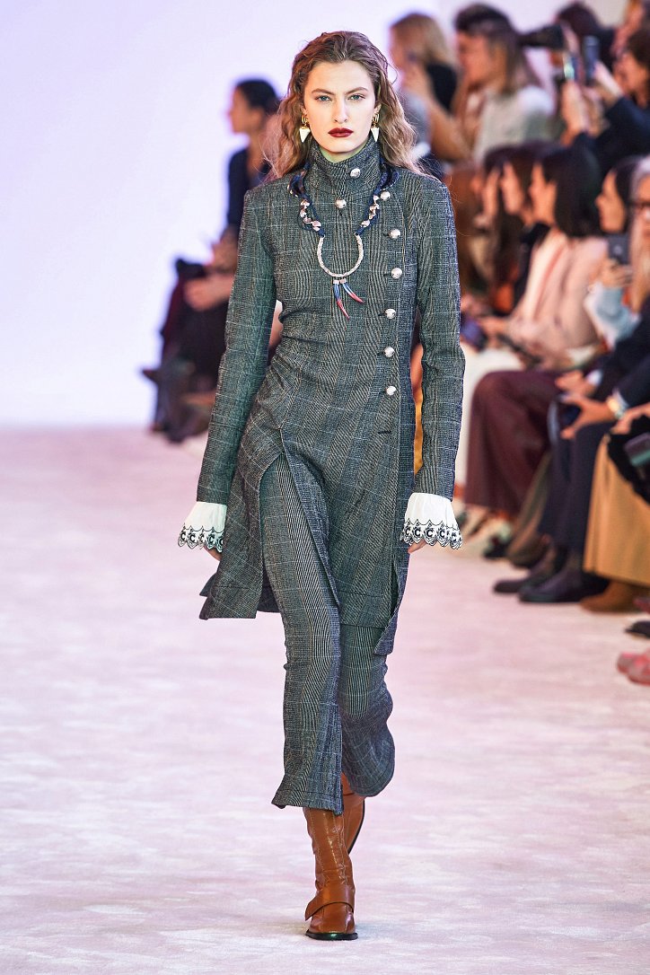 В коллекции было много трикотажа и теплых дубленок, летящих романтических платьев и женственных блуз, практичного денима и брючных костюмов, классической клетки и изящных цветочных принтов – все выглядело очень удобным, комфортным, функциональным и, в то же время, женственным, нежным и романтичным.