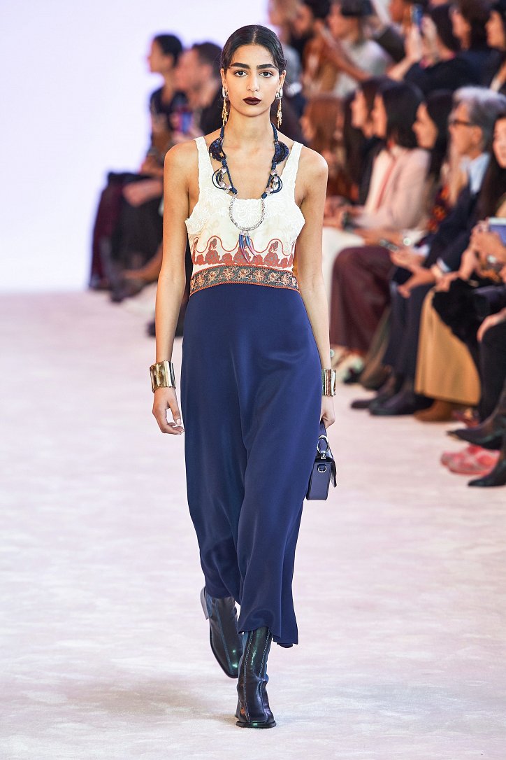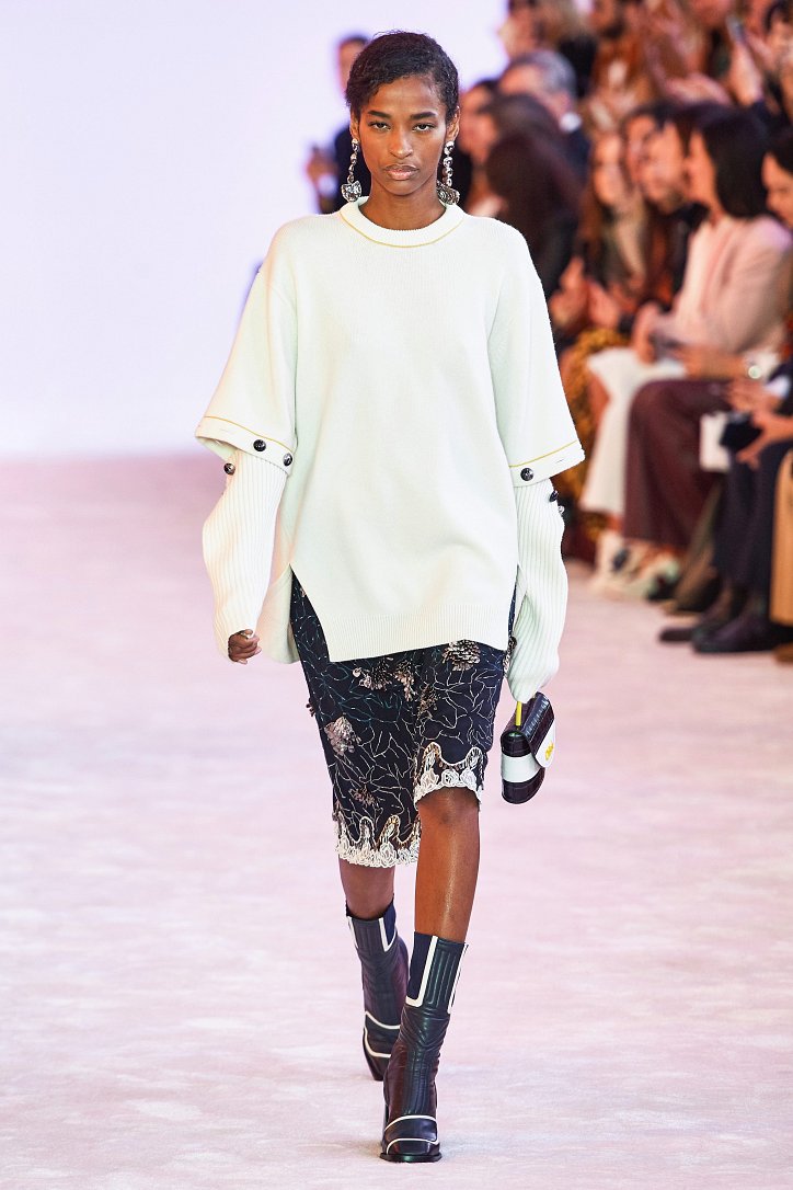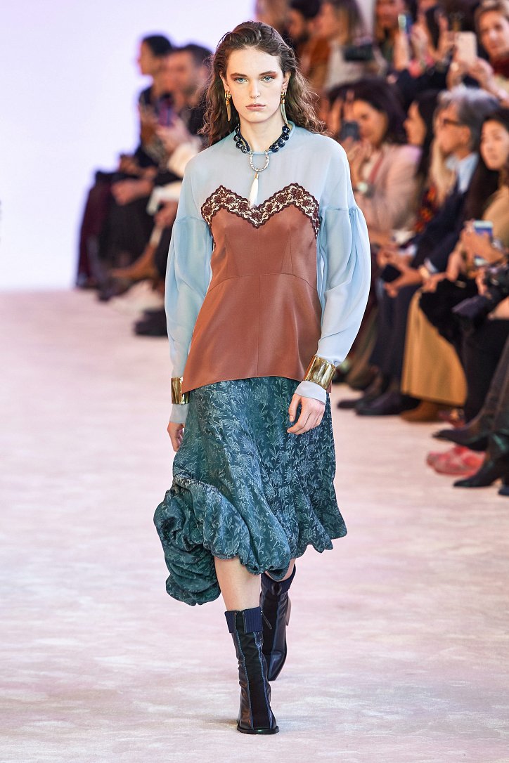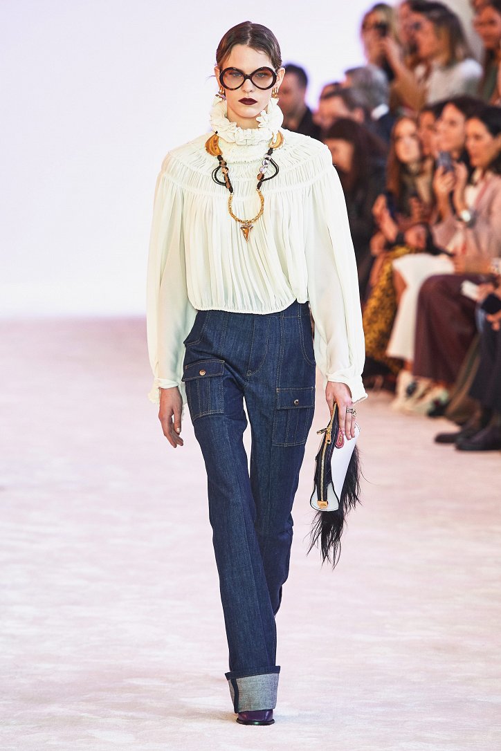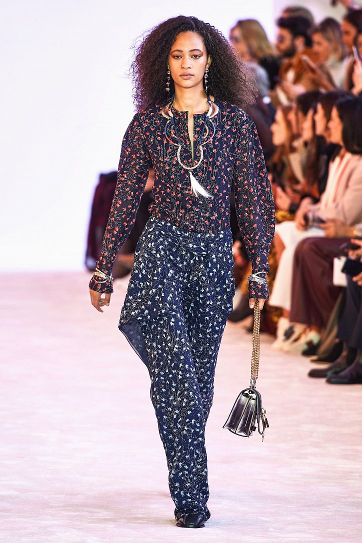 Гостей, которые пришли на показ коллекции Chloé, на креслах встречали открытки с изображениями ключевых элементов коллекций, которые на протяжении 25 лет создавал для дома моды скончавшийся на прошлой неделе Карл Лагерфельд. На обороте открыток были напечатаны комментарии дизайнера о его работах. И то, что он говорил о коллекции 1975 года, удивительным образом нашло отражение и в последней работе Наташи Рамсей-Леви: «Сущность современной одежды – неструктурированная, невесомая и абсолютно женственная».