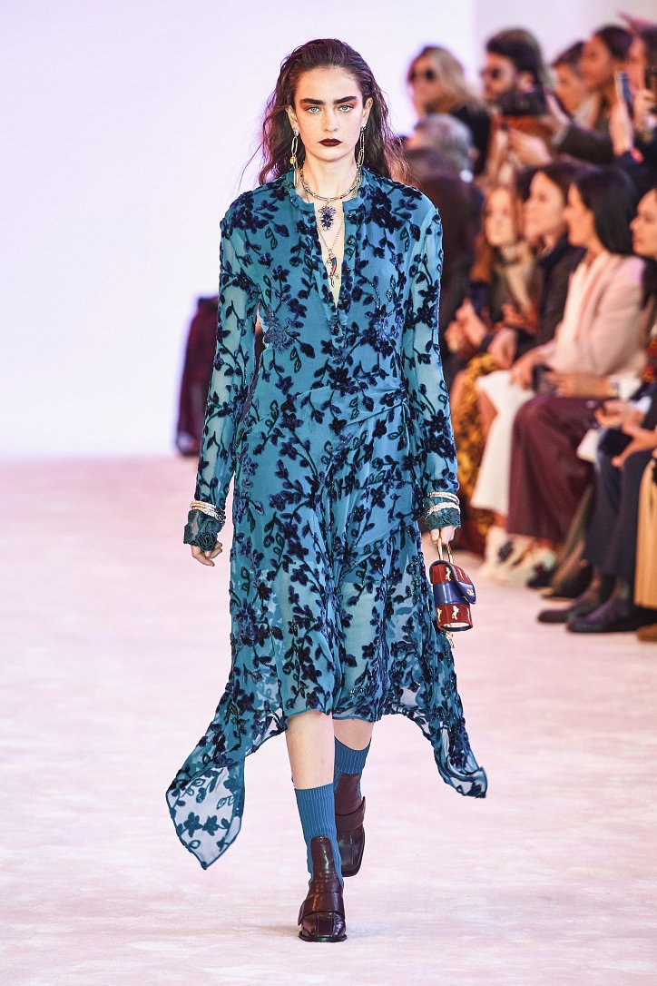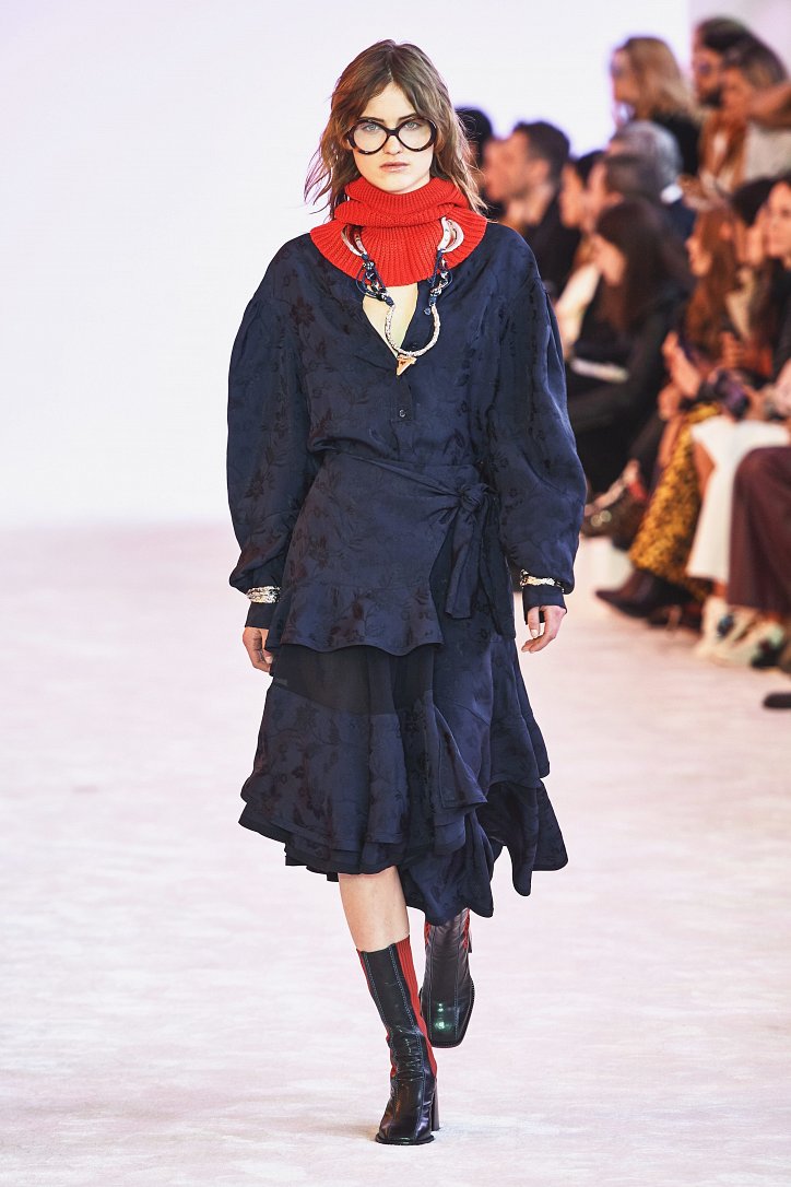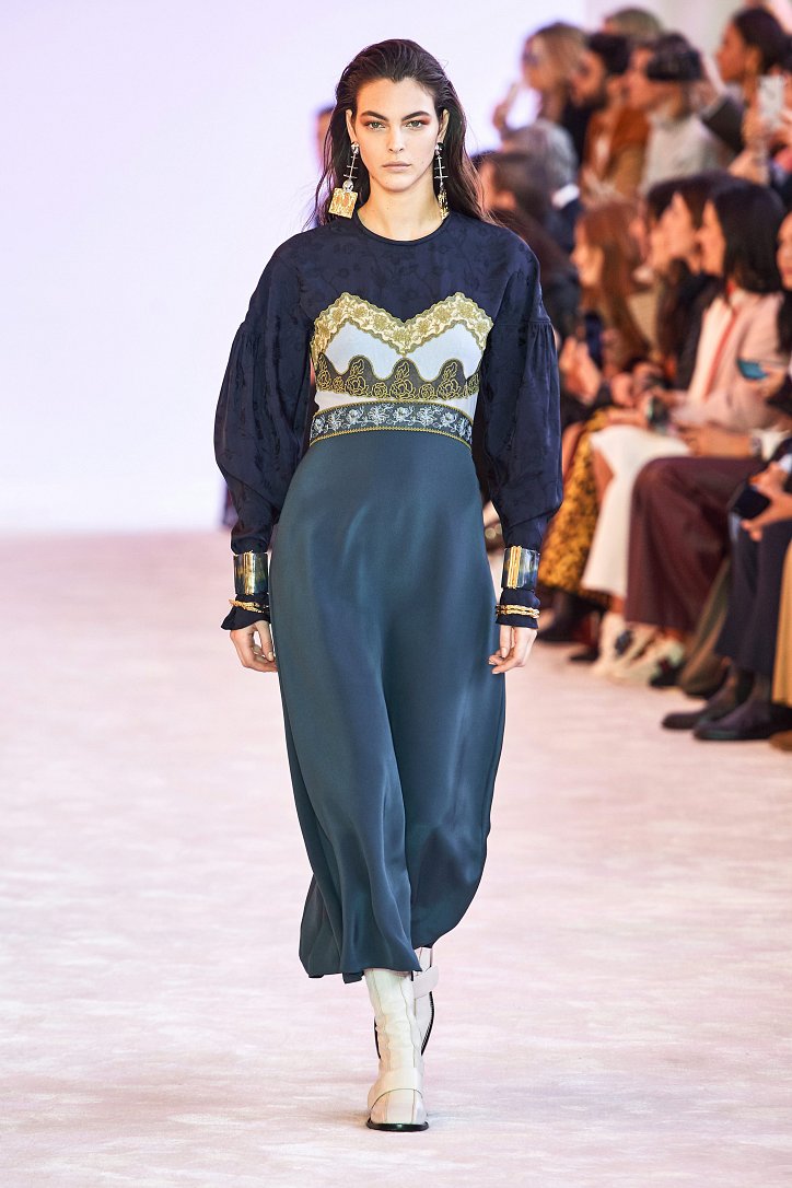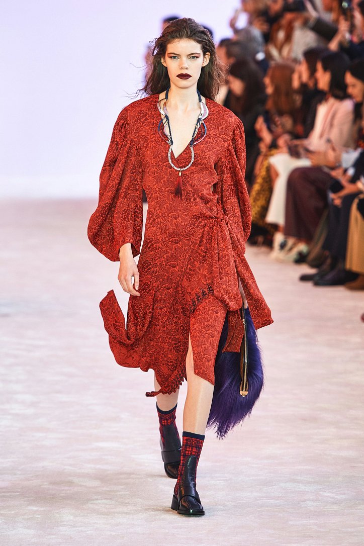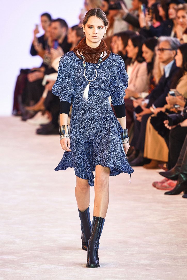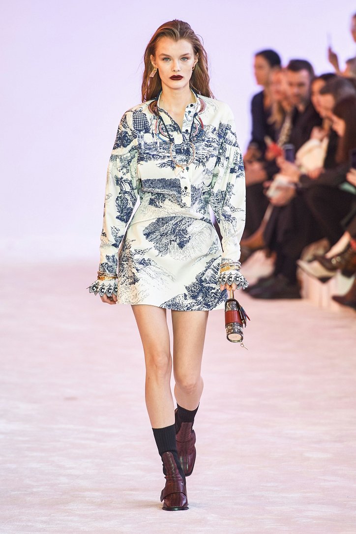Гостей, которые пришли на показ коллекции Chloé, на креслах встречали открытки с изображениями ключевых элементов коллекций, которые на протяжении 25 лет создавал для дома моды скончавшийся на прошлой неделе Карл Лагерфельд. На обороте открыток были напечатаны комментарии дизайнера о его работах. И то, что он говорил о коллекции 1975 года, удивительным образом нашло отражение и в последней работе Наташи Рамсей-Леви: «Сущность современной одежды – неструктурированная, невесомая и абсолютно женственная».