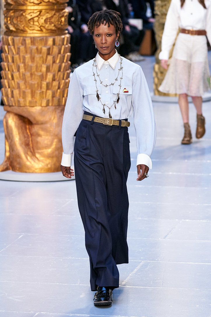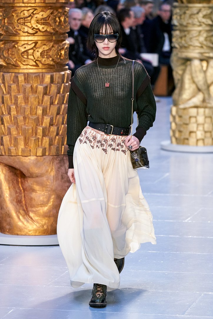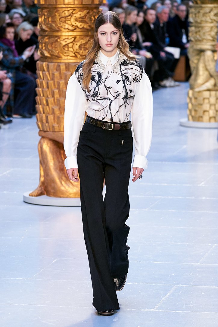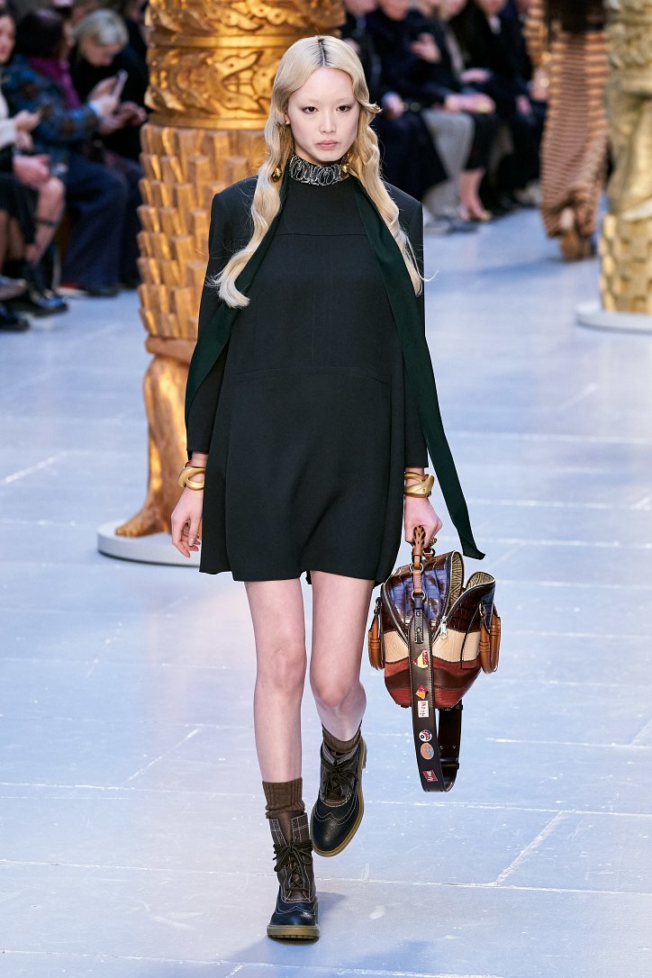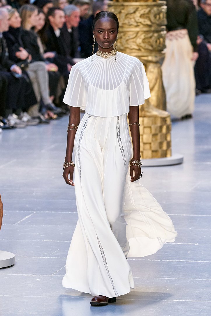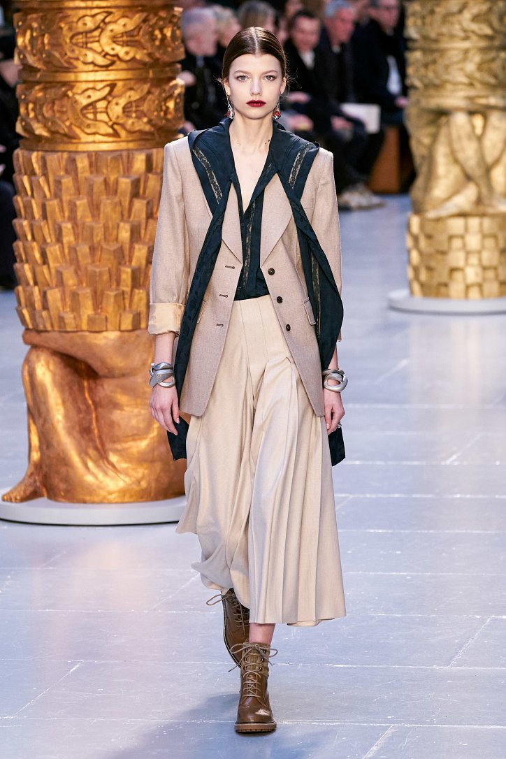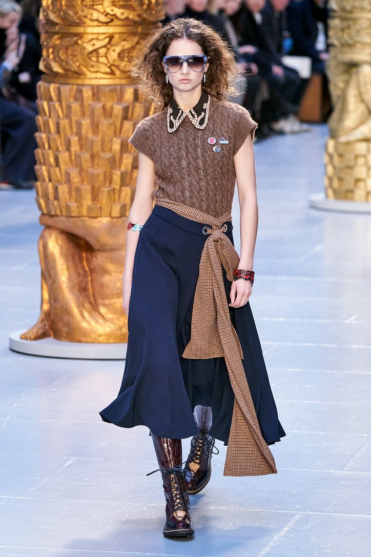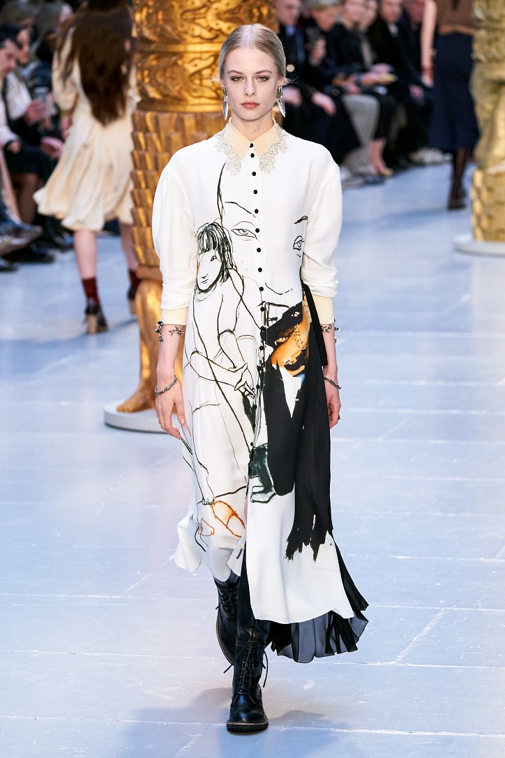Пропитанная духом 70-ых и атмосферой творчества, новая коллекция Chloé была удивительно теплой и практичной. К будущему сезону Наташа Рамсей-Леви предложила стеганые пальто и дубленки, легкие блузы и клетчатые платья-рубашки, джинсы клеш и юбки из денима, уютный трикотаж и платья свободного силуэта, кожаные брюки и брючные костюмы с легким клешем штанин и закатанными рукавами жакетов.