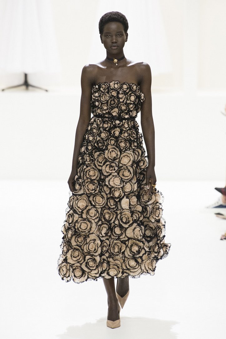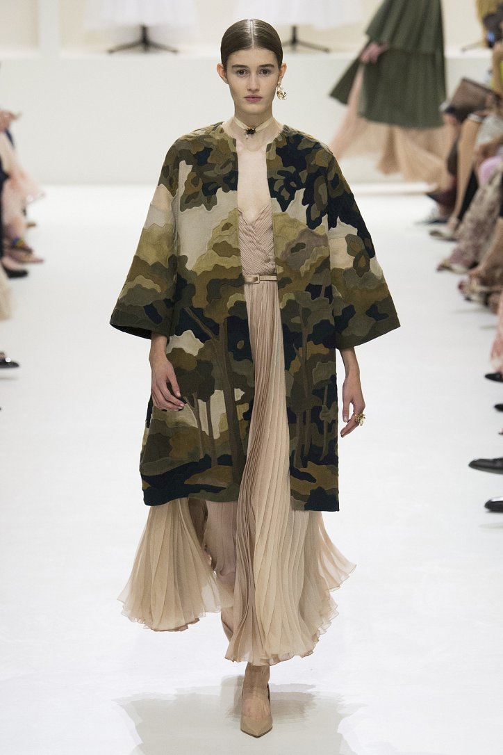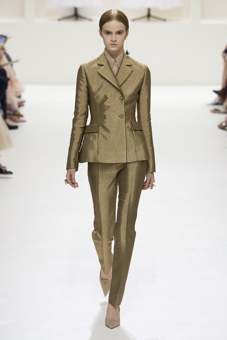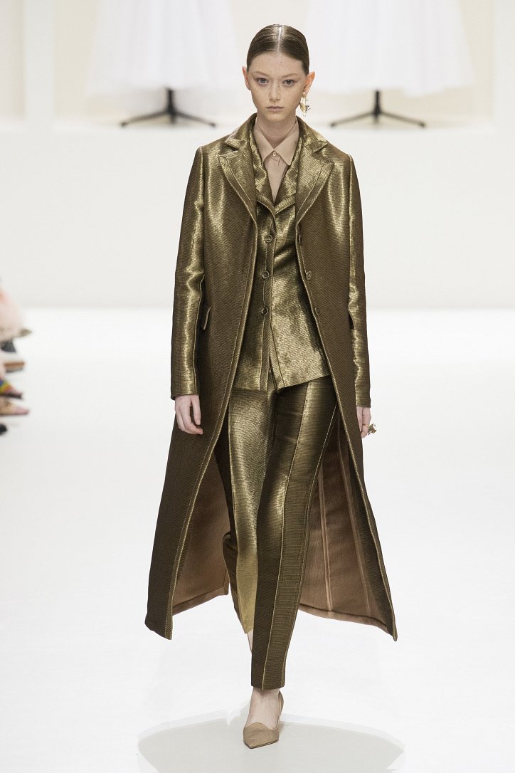 В коллекции не осталось ни грамма протестных настроений осенне-зимней коллекции – на этот раз дизайнер демонстрирует «высший пилотаж» мастериц дома моды: скульптурный крой и сложные фактуры сочетаются в моделях с искусной ручной вышивкой.