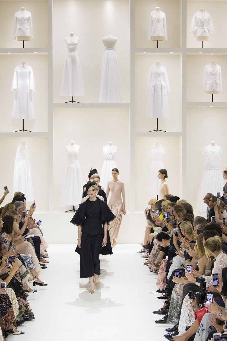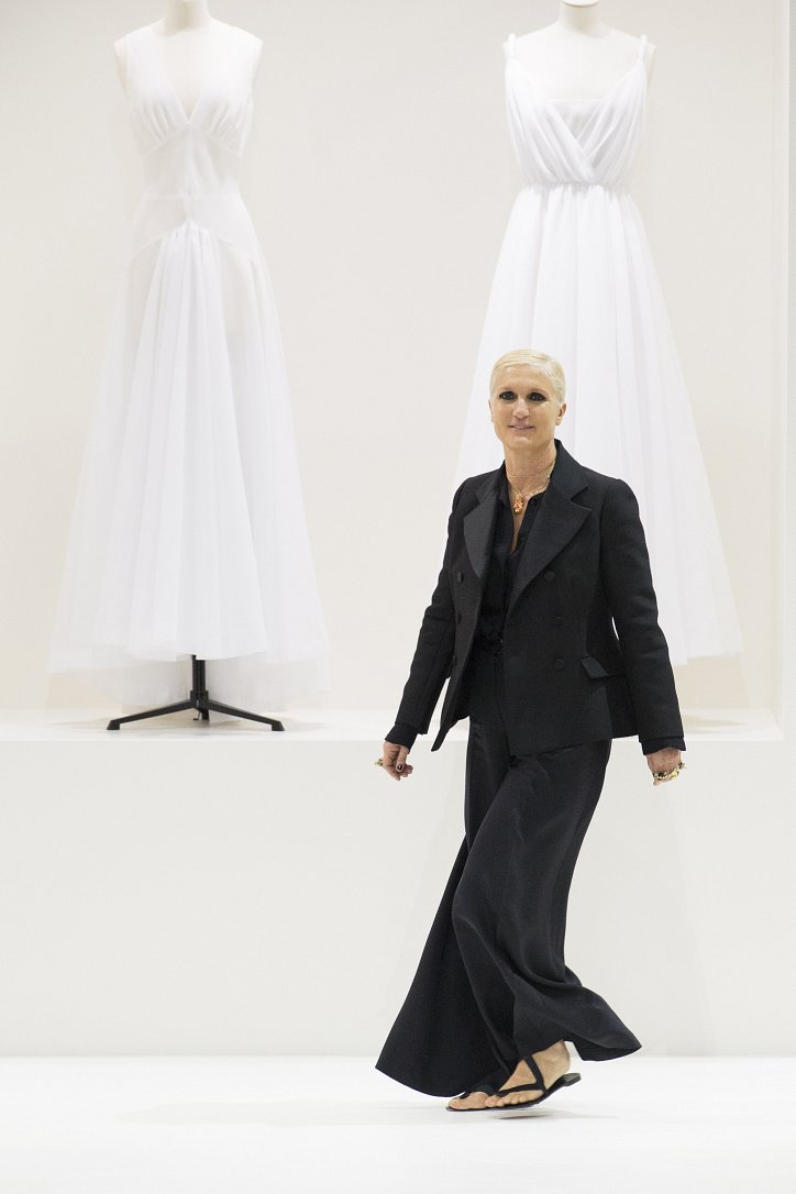 Белые «витрины» с одетыми во все белое манекенами – Мария Грация Кьюри решила пригласить гостей показа в импровизированное ателье – «святая святых», где рождается мода «от кутюр».
