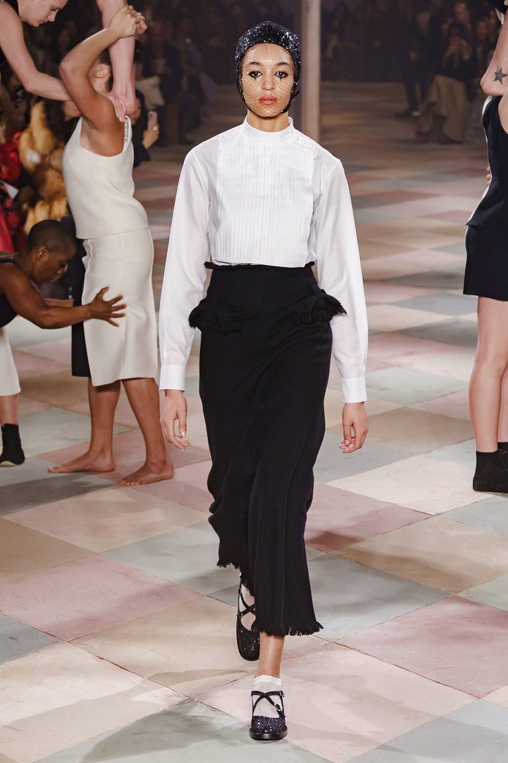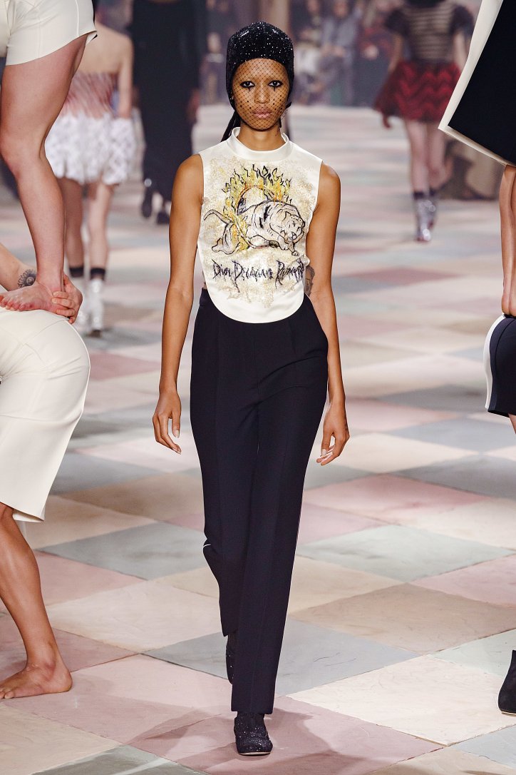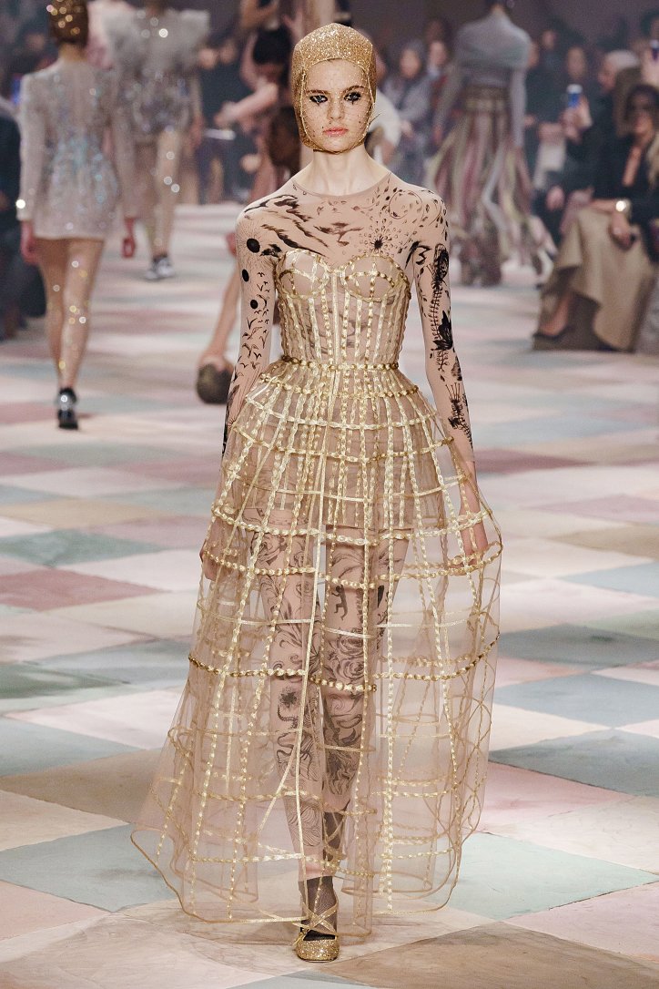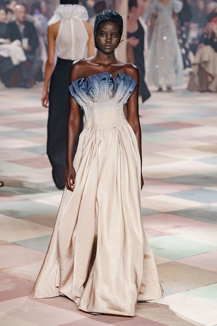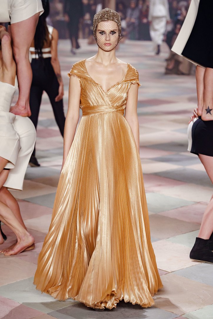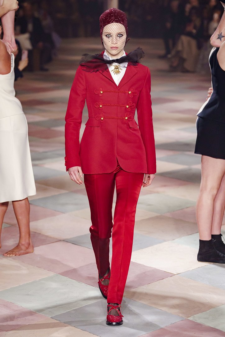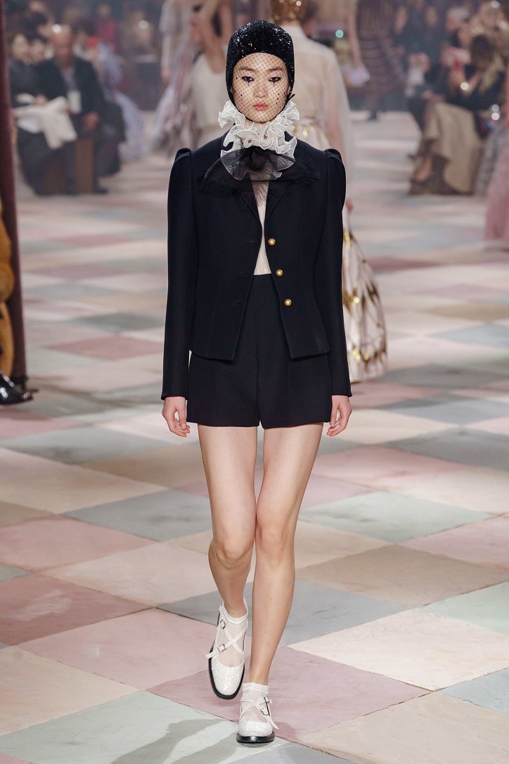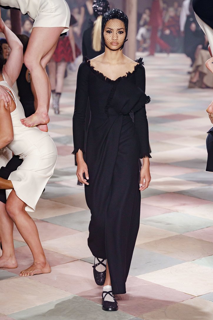 Кутюрная коллекция Christian Dior – словно продолжение весенне-летней коллекции 2019, только в других декорациях. Вместо балета Мария Грация Кьюри решила перенестись на арену цирка, так что вместо балетной труппы «фоном» для показа в этот раз были акробаты и гимнасты. Да и в самой коллекции отчетливо был заметен «цирковой след»: блестки и яркие цвета играли в ней ведущую роль, а в поисках идей дизайнер погрузилась в исследование работ Пабло Пикассо, Синди Шерман, Ричард Аведона и фильмов Жана Кокто.