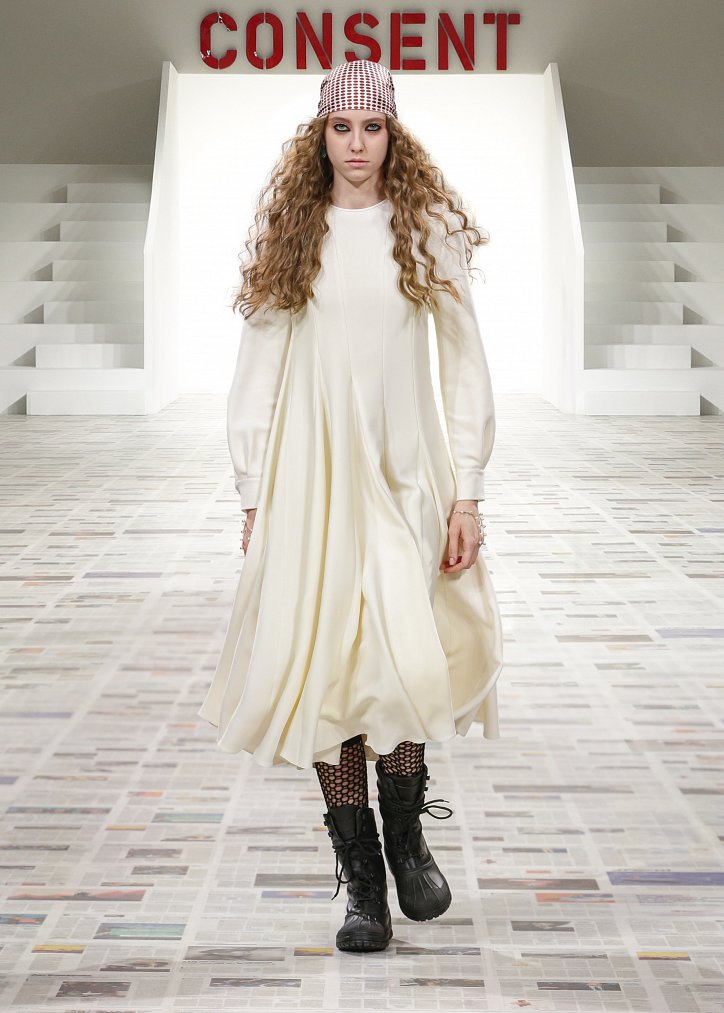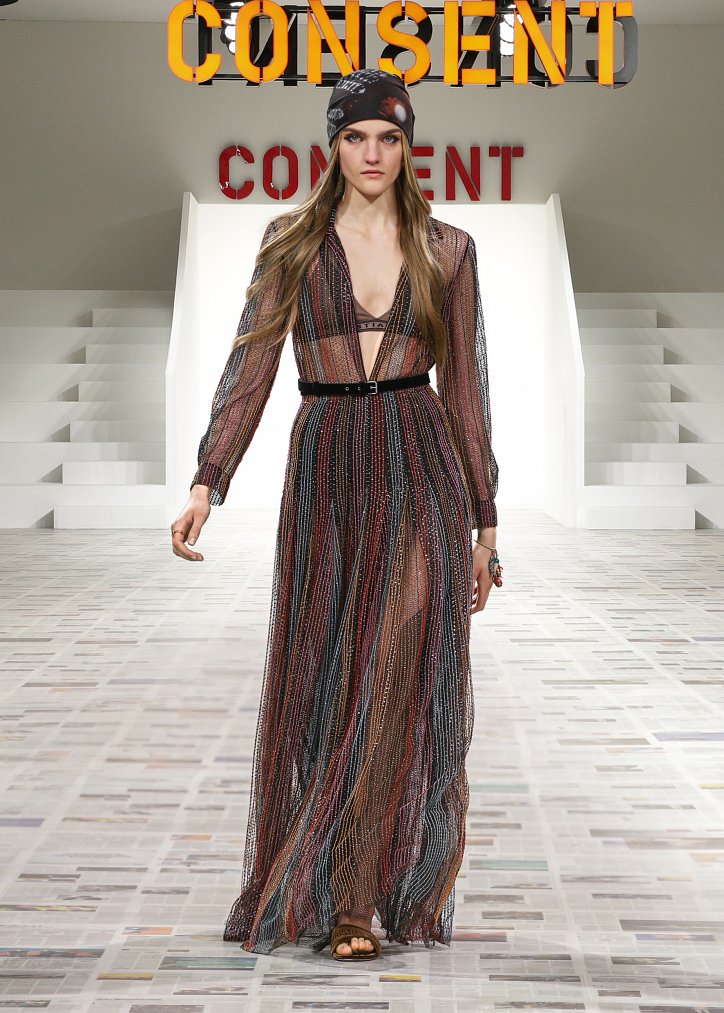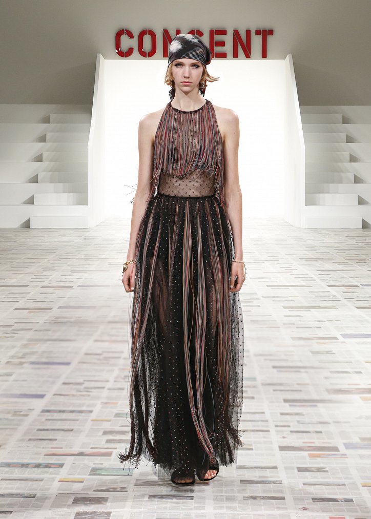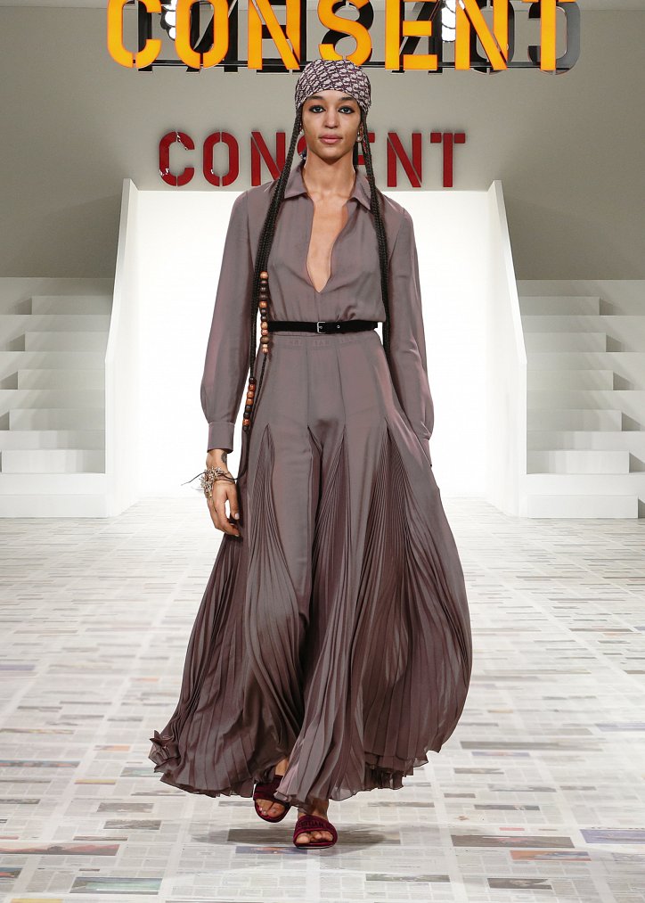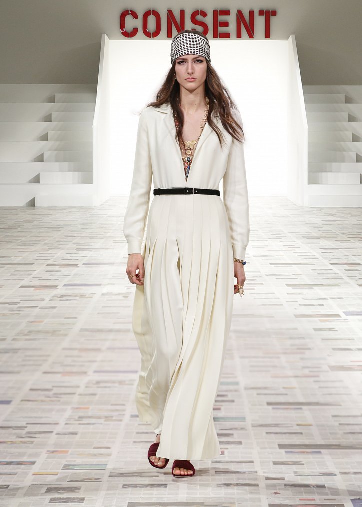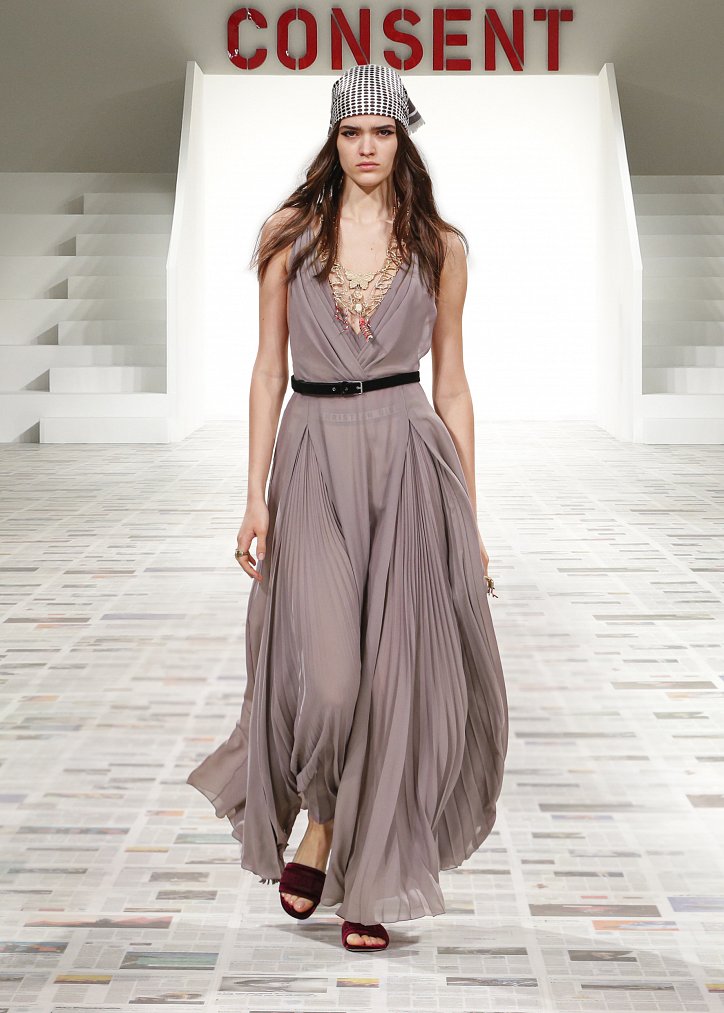 Креативный директор бренда Мария Грация Кьюри продолжает тему, выбранную ею несколько сезонов назад, и на этот раз вспоминает свою молодость, которая пришлась на 70-ые годы – время так называемой «второй волны феминизма».