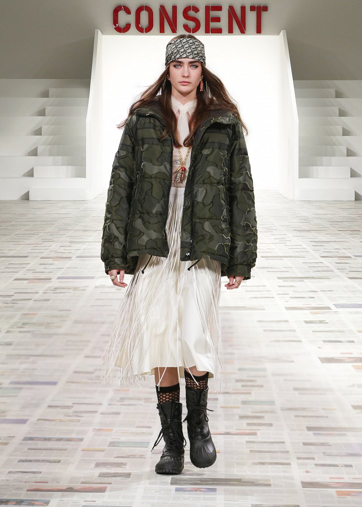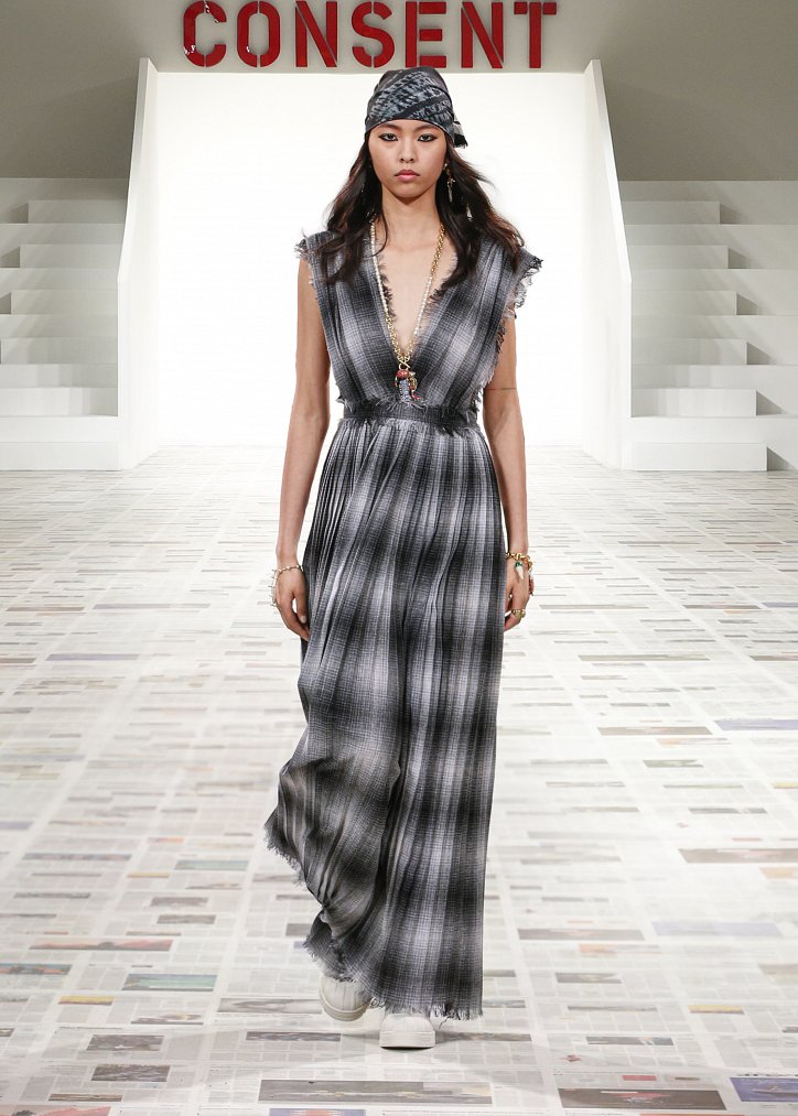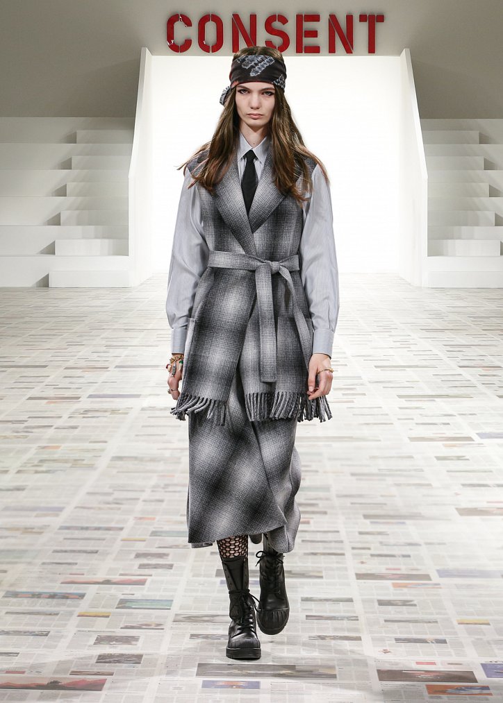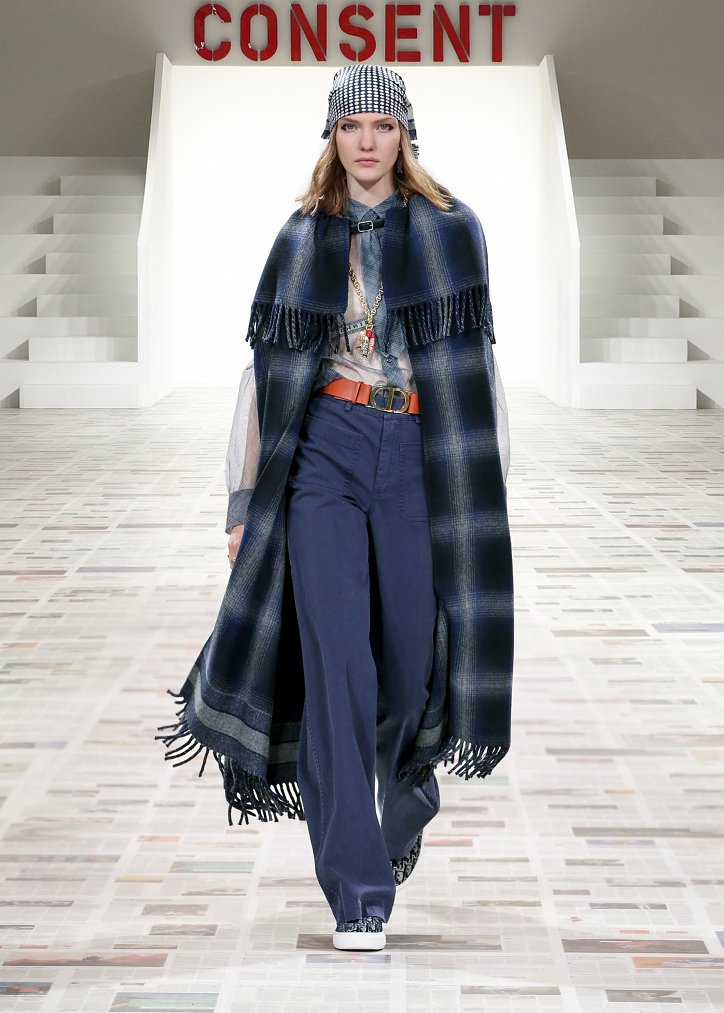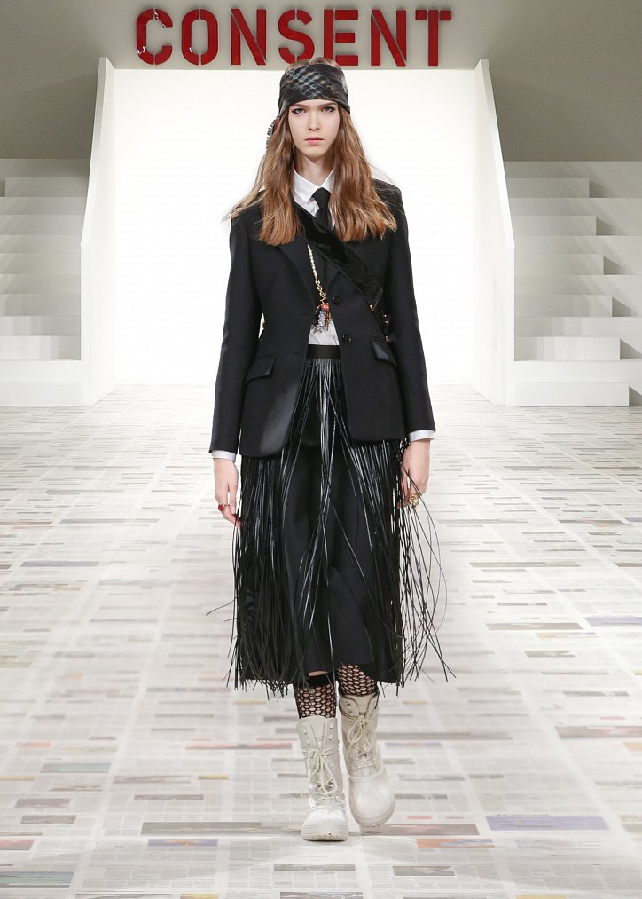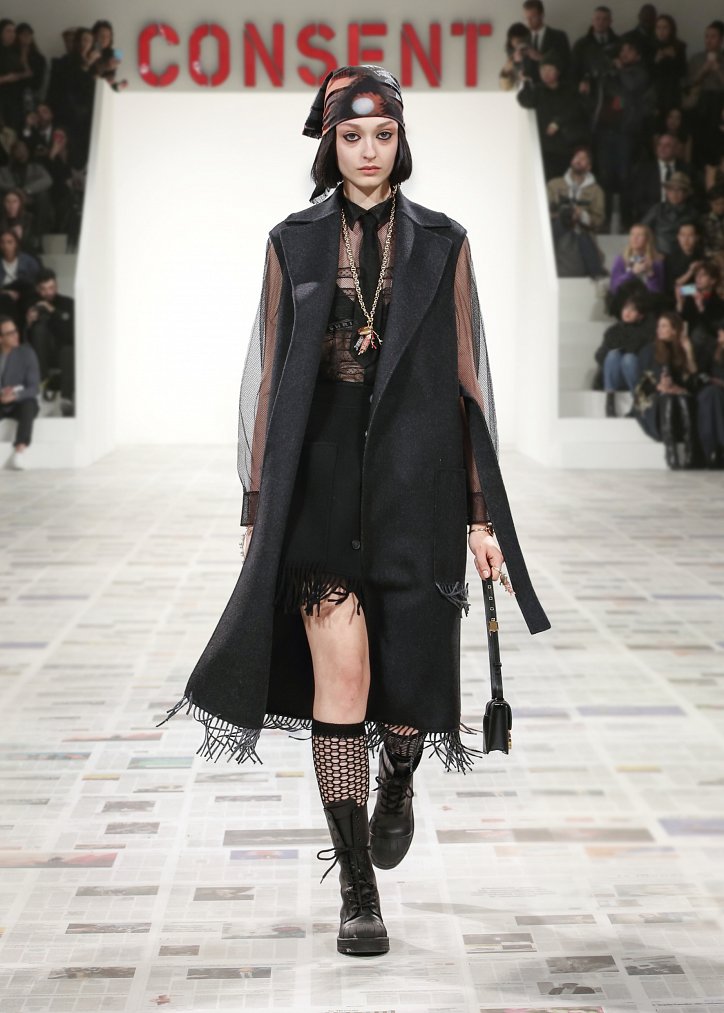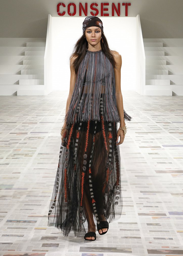 Креативный директор бренда Мария Грация Кьюри продолжает тему, выбранную ею несколько сезонов назад, и на этот раз вспоминает свою молодость, которая пришлась на 70-ые годы – время так называемой «второй волны феминизма».