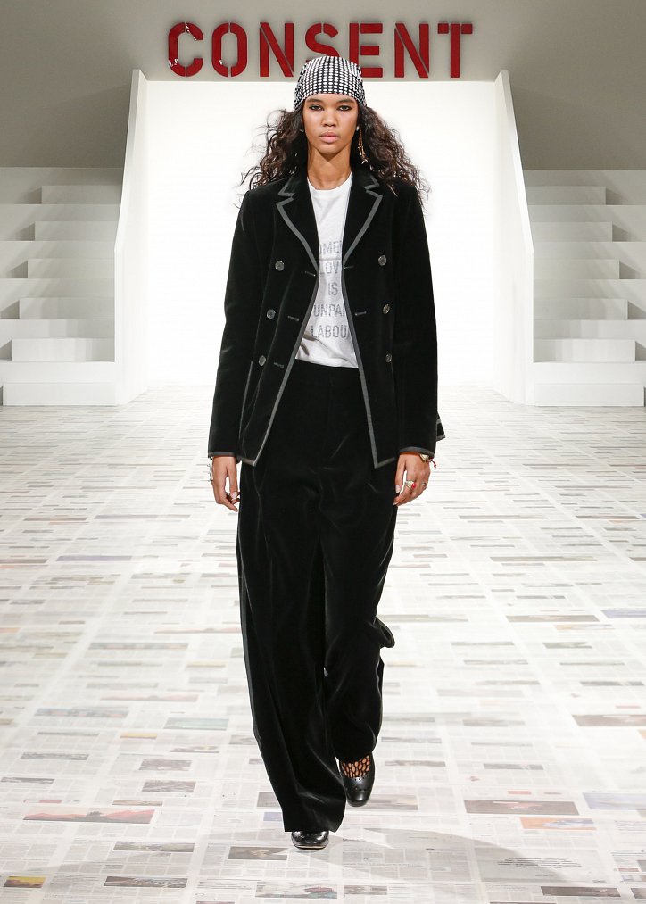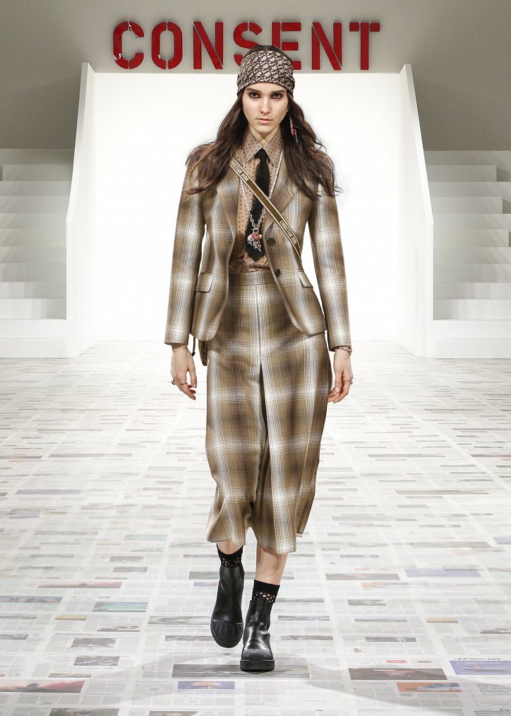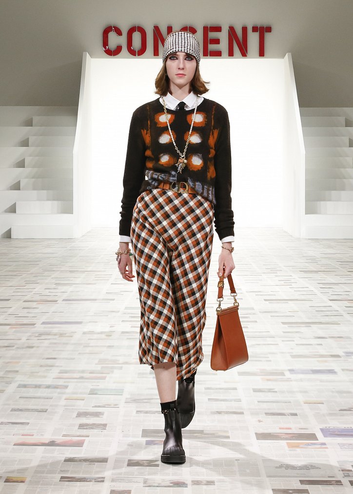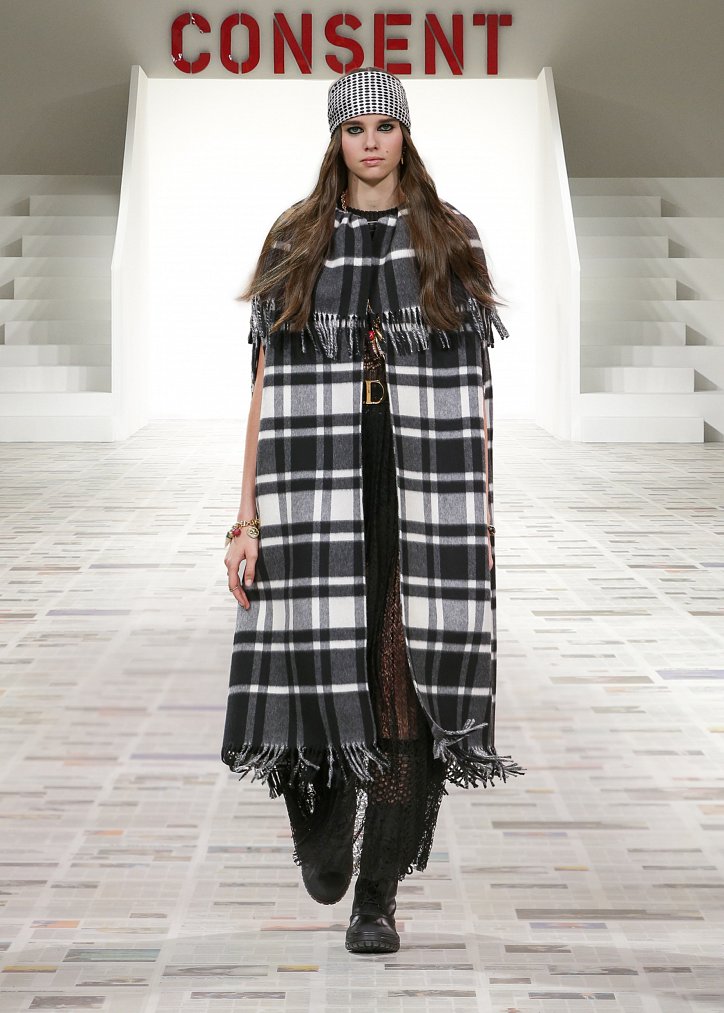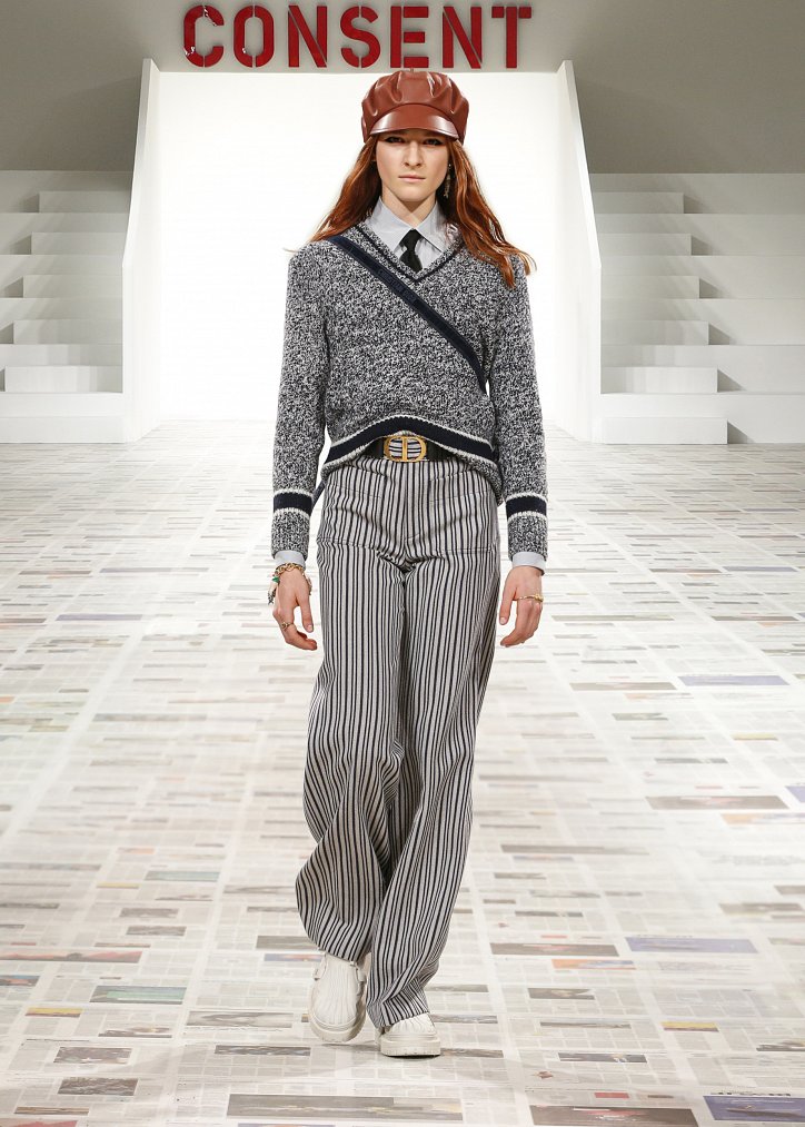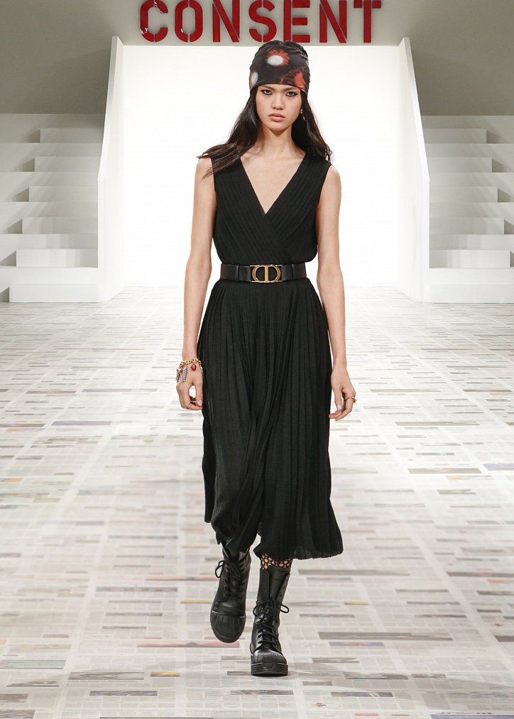 Креативный директор бренда Мария Грация Кьюри продолжает тему, выбранную ею несколько сезонов назад, и на этот раз вспоминает свою молодость, которая пришлась на 70-ые годы – время так называемой «второй волны феминизма».