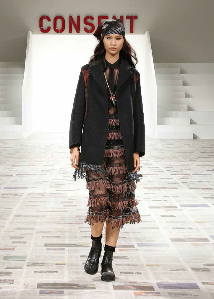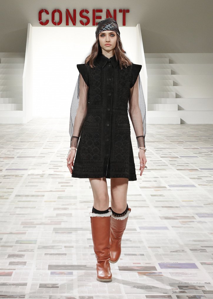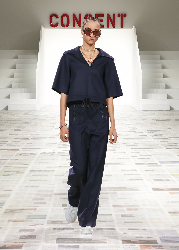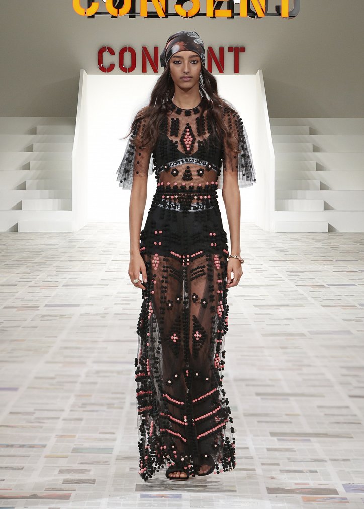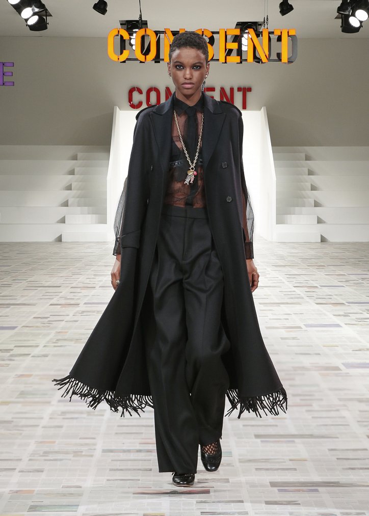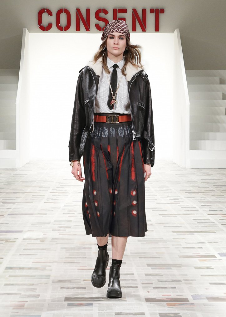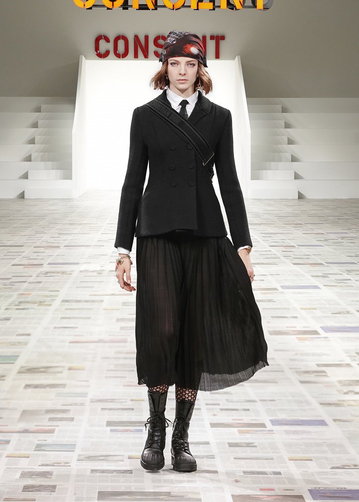 Креативный директор бренда Мария Грация Кьюри продолжает тему, выбранную ею несколько сезонов назад, и на этот раз вспоминает свою молодость, которая пришлась на 70-ые годы – время так называемой «второй волны феминизма».