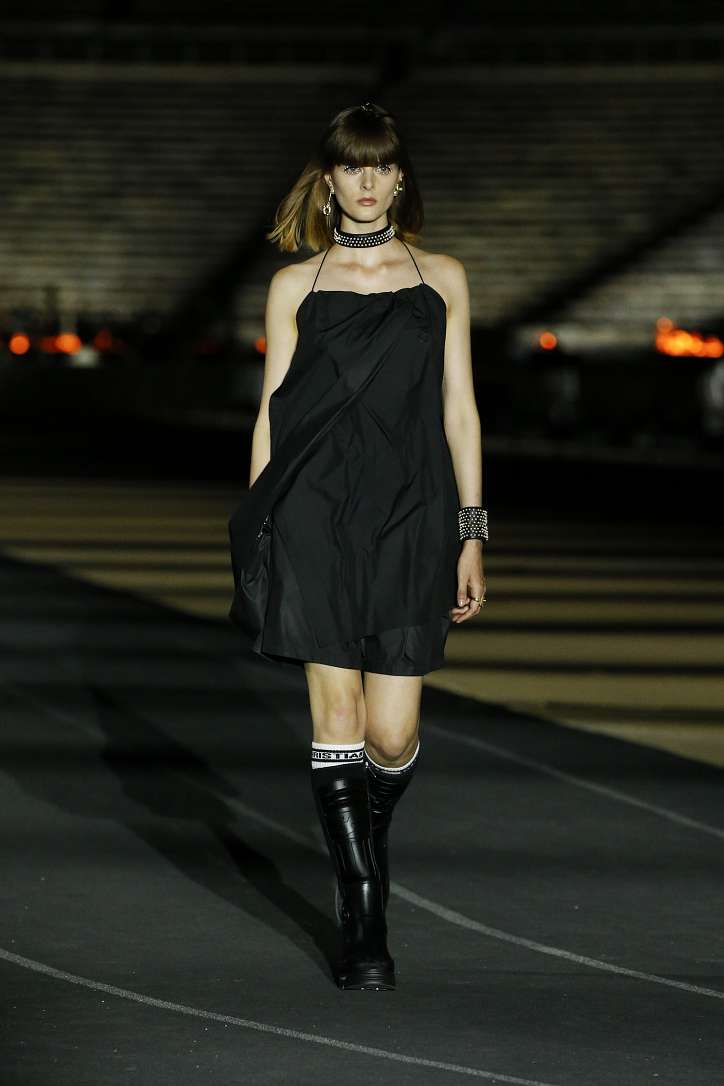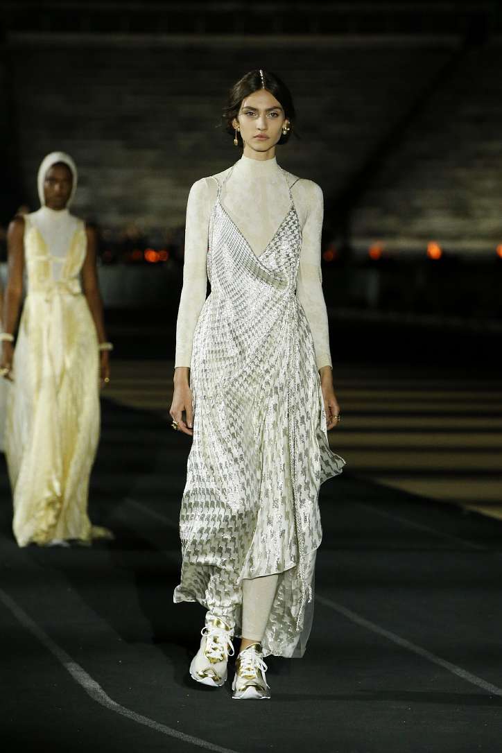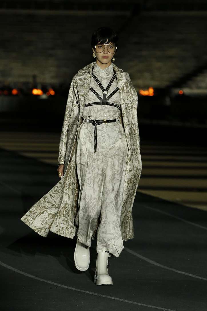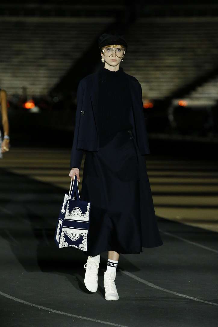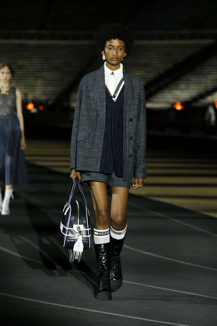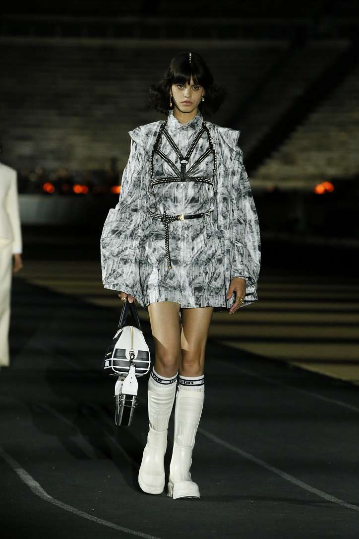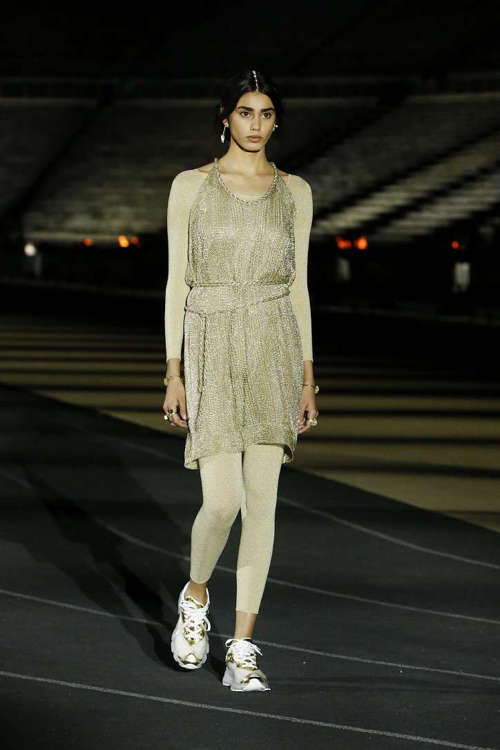 На фоне беломраморных трибун дизайнер продемонстрировала, как спорт может сочетаться и с модными трендами, и с кодами французского дома моды. Светлые кремовые тона изредка прерывались яркими абстрактными принтами, классический Bar Jacket приобрёл атлетический вид, белый костюм Марлен Дитрих соседствовал с анораками, а платья а ля пеплос – с кроссовками.