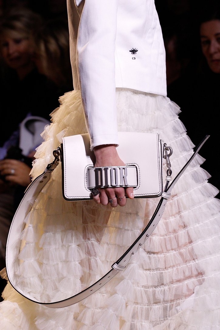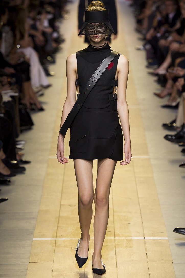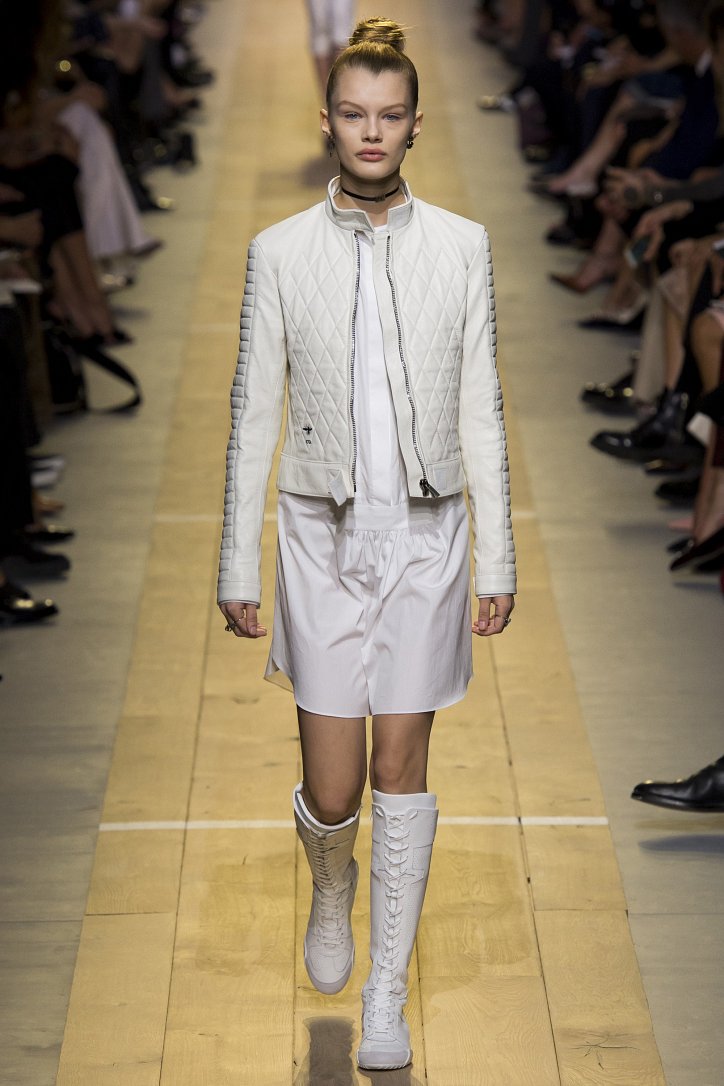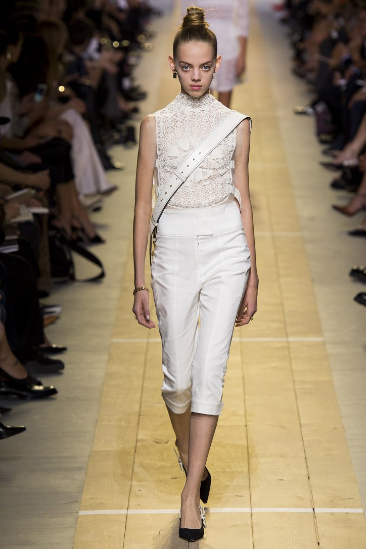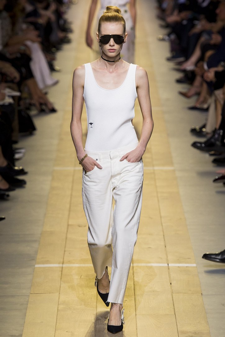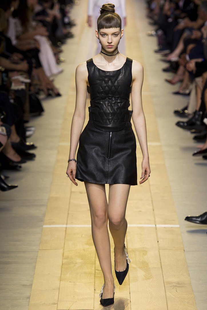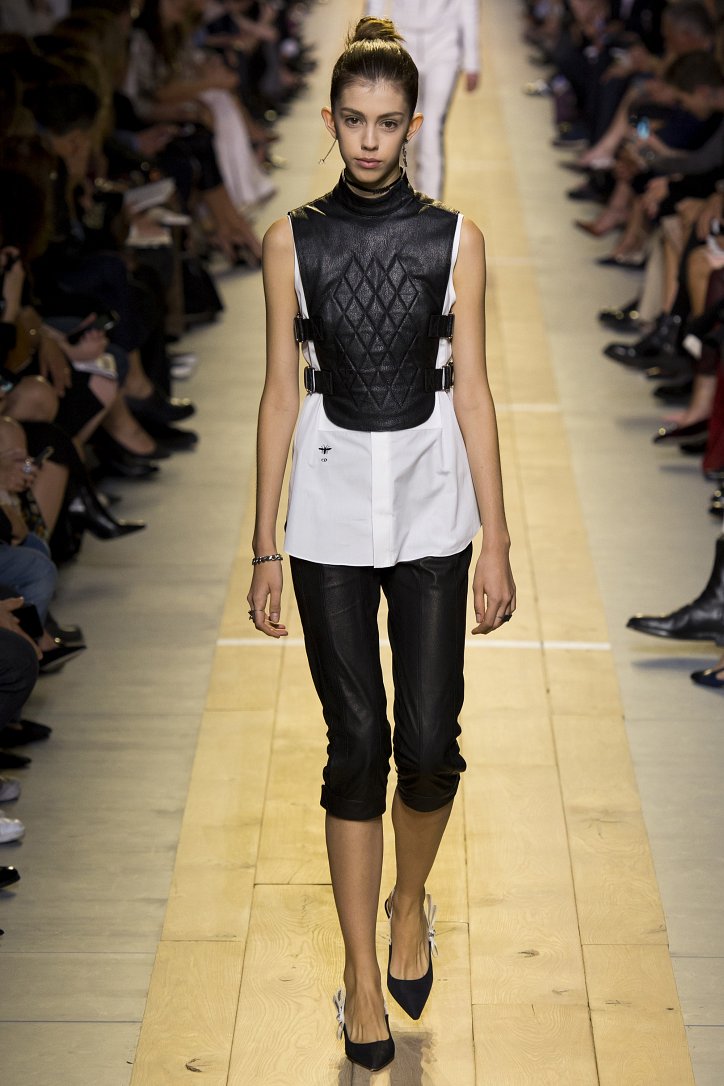 Легендарный «диоровский» силуэт New Look и жакет bar, превратившийся в белую фехтовальную курточку, красные «косухи», пуловеры, строгие жакеты и белые футболки в сочетании с шифоновыми юбками-миди, стилизованные «детские» принты на откровенно-прозрачных платьях, классический тренч и роскошное кружево – в новой коллекции женственность и хрупкость переплелись с практичностью и спортивным стилем.
