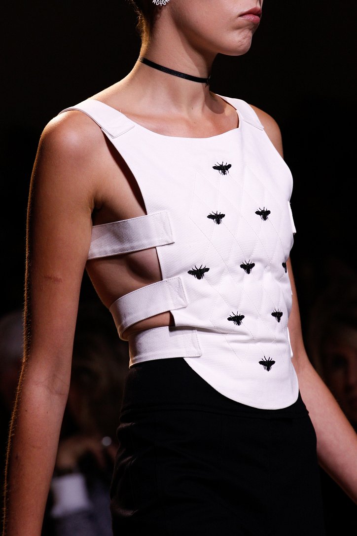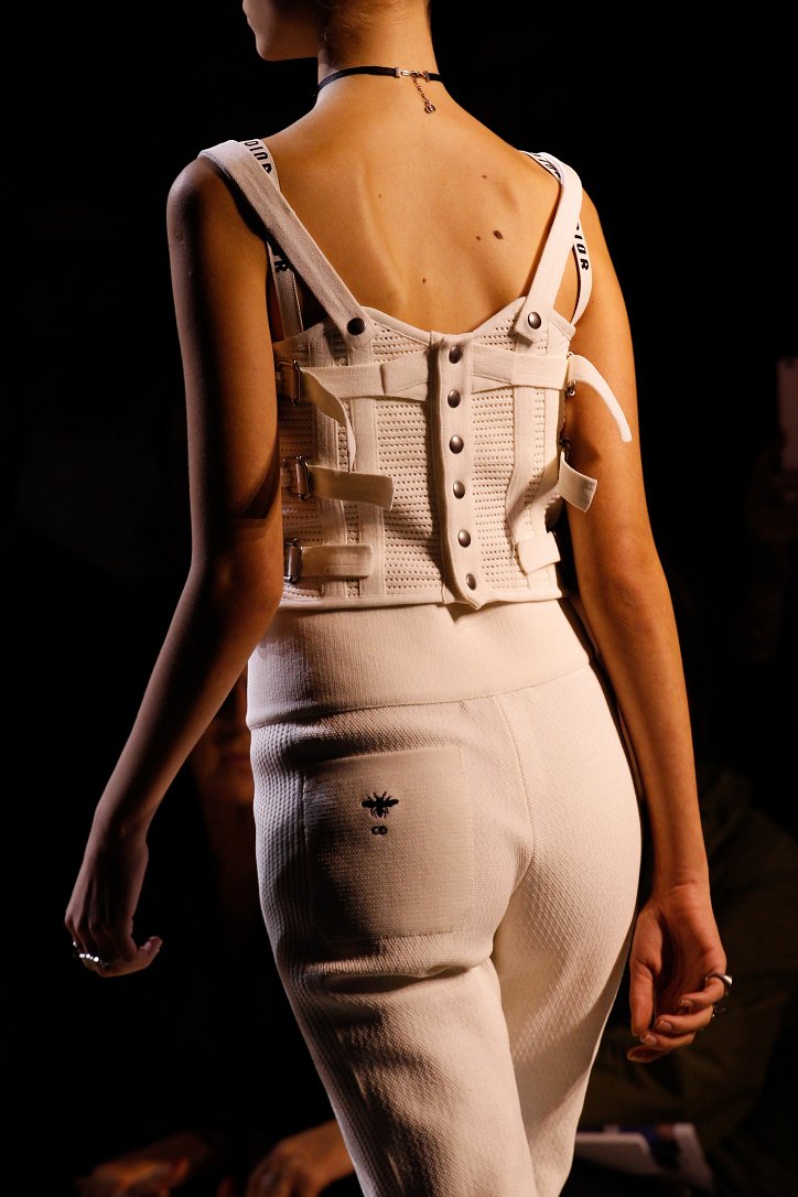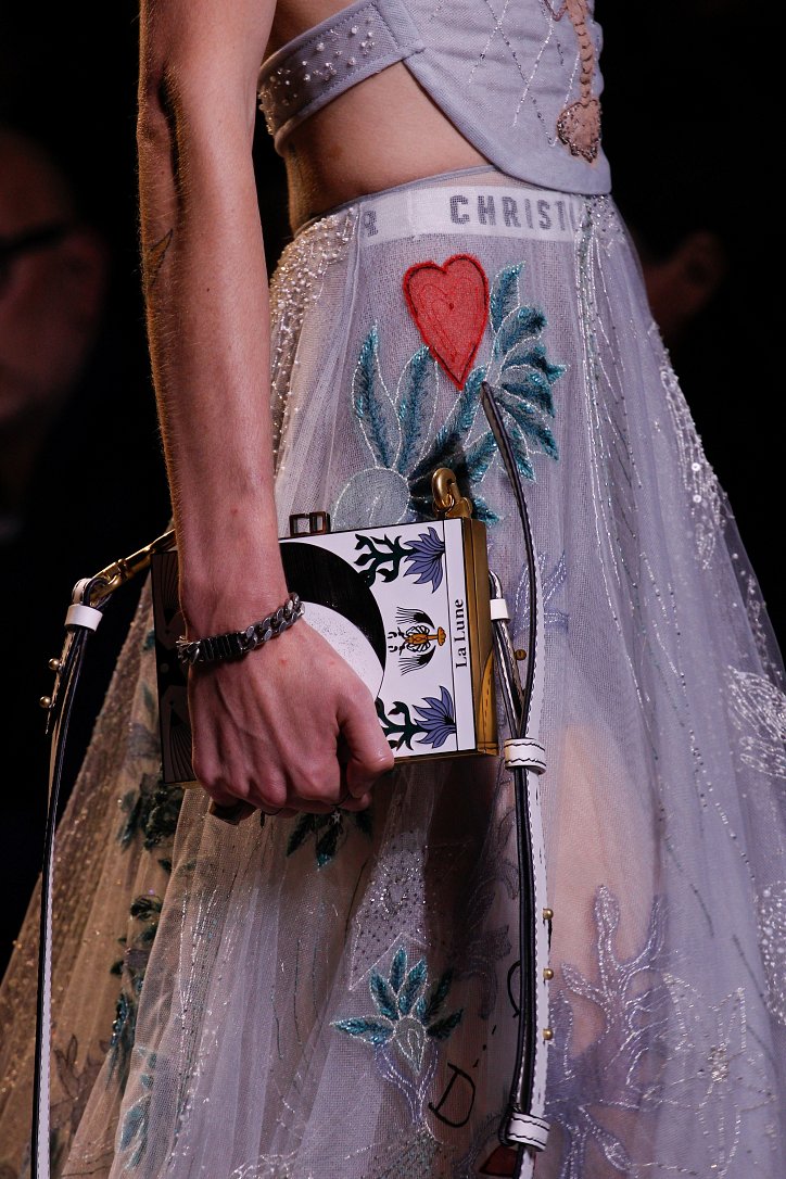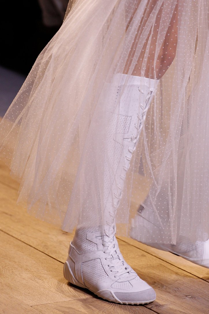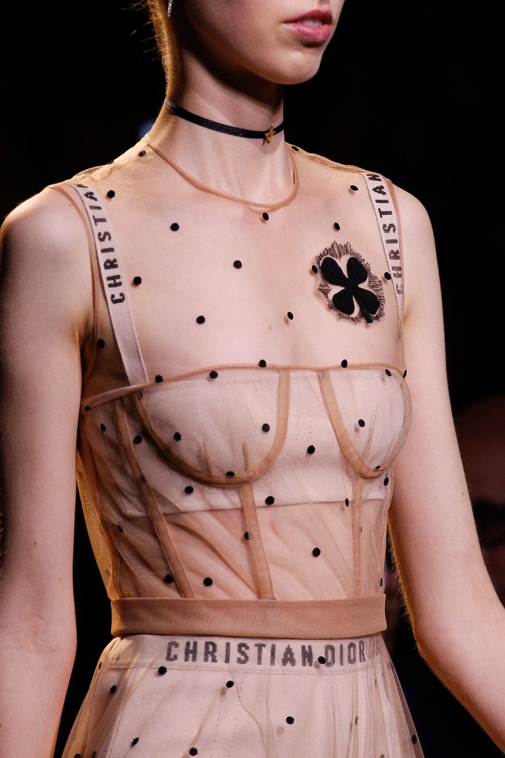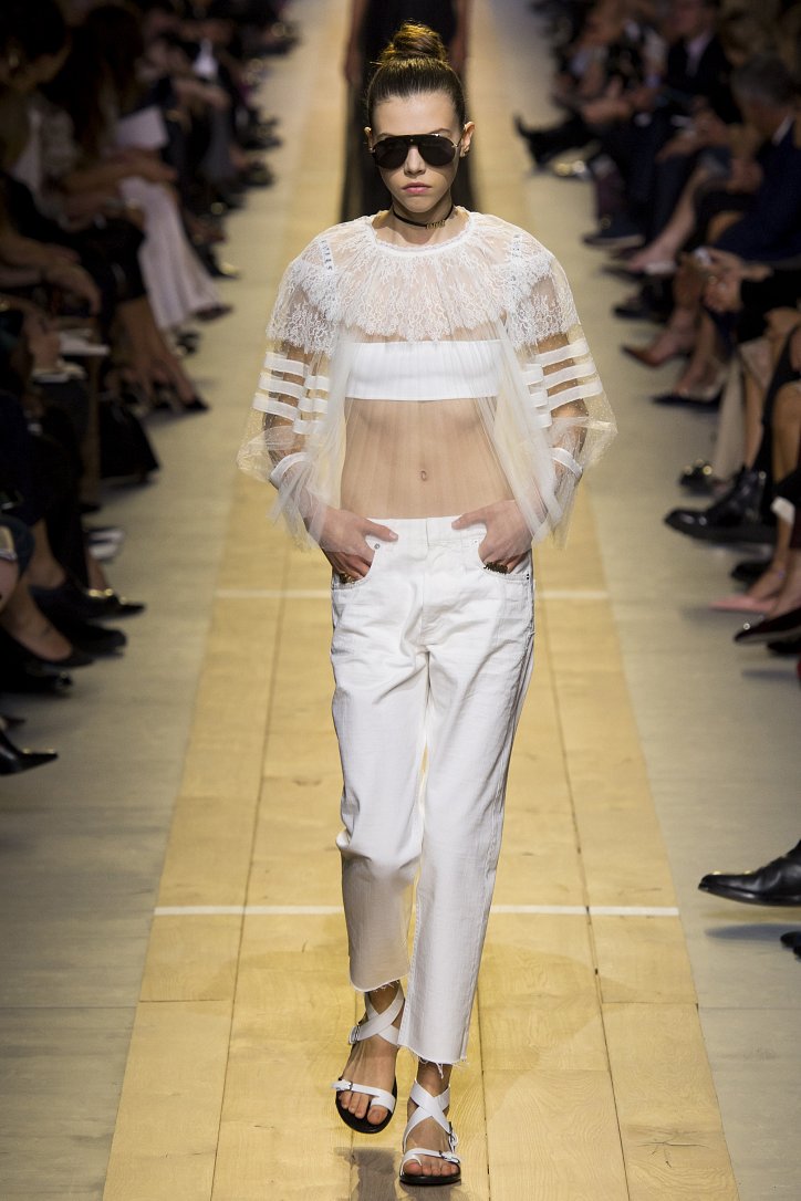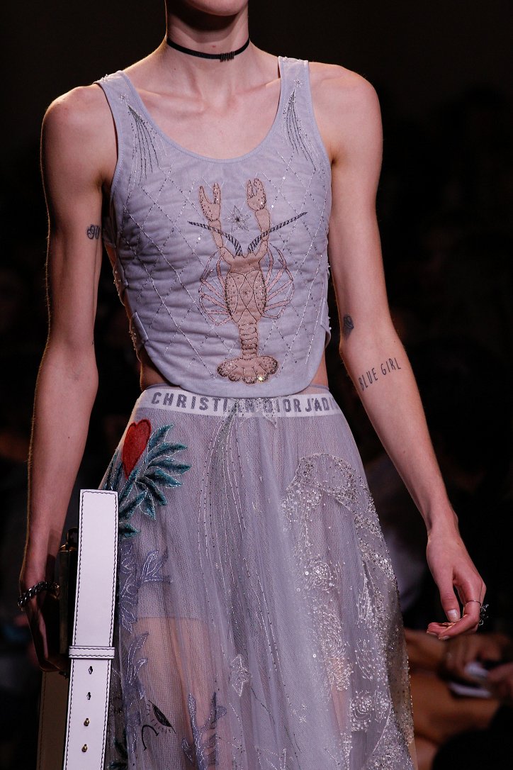 Легендарный «диоровский» силуэт New Look и жакет bar, превратившийся в белую фехтовальную курточку, красные «косухи», пуловеры, строгие жакеты и белые футболки в сочетании с шифоновыми юбками-миди, стилизованные «детские» принты на откровенно-прозрачных платьях, классический тренч и роскошное кружево – в новой коллекции женственность и хрупкость переплелись с практичностью и спортивным стилем.