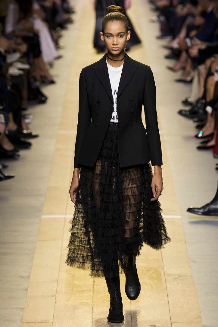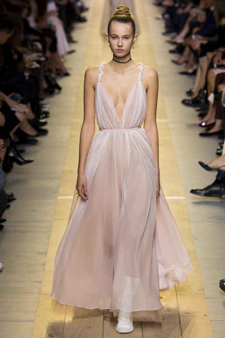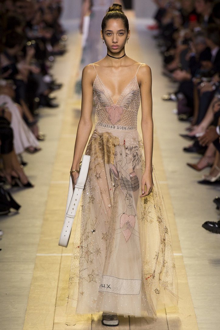 Очередной громкий дебют в Париже – свою первую коллекцию для дома моды Диор представила Мария Грация Кьюри. Как отмечают эксперты, коллекция Christian Dior весна-лето 2017 – это и обращение к архивам Dior, и «следы» периода Гальяно, но, в то же время, очевидны в ней и узнаваемые черты Valentino.