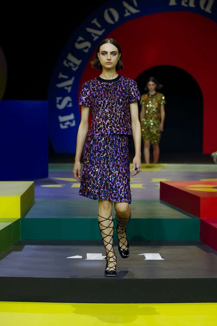 Эпоха шестидесятых, неимоверная атмосфера, царящая в римском клубе Piper – средоточии артистической жизни той поры, отсылки к творчеству креативного директора дома Диор Марка Боана и яркие декорации на подиуме в стиле pop art – дань уважения творчеству Анны Папаратти, красивой и харизматичной женщине, талантливой художнице и одной из «звёзд» художественной «тусовки» 60-70-ых – новая коллекция Christian Dior стала настоящим экскурсом в мир грёз и экспериментальной геометрии.