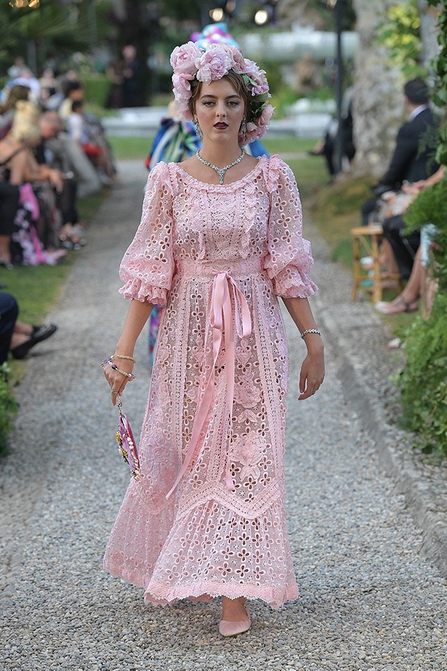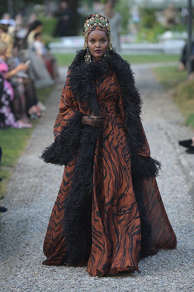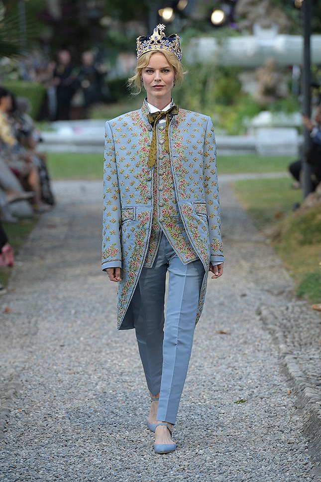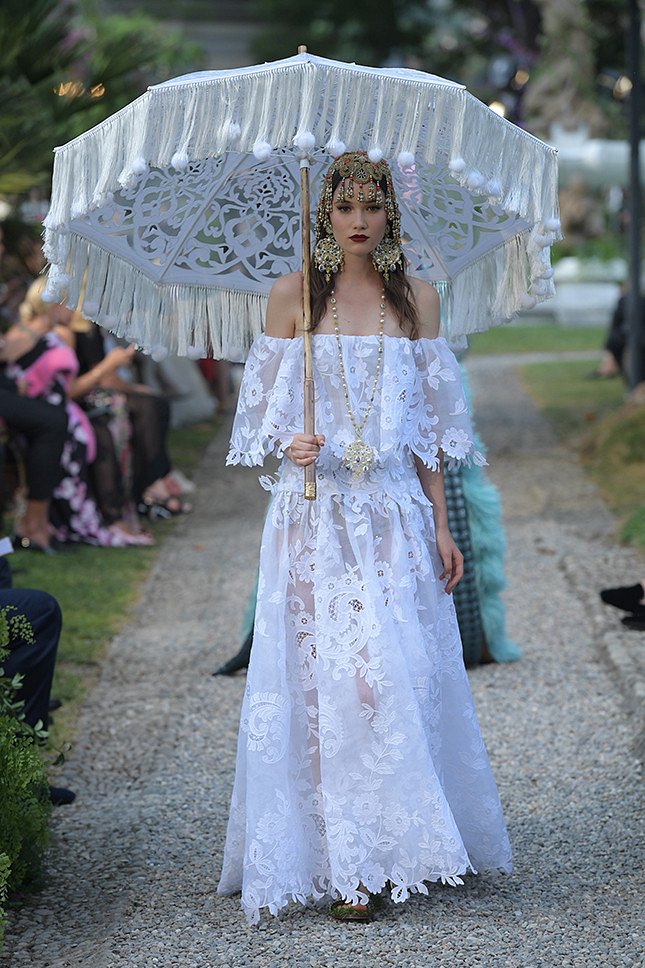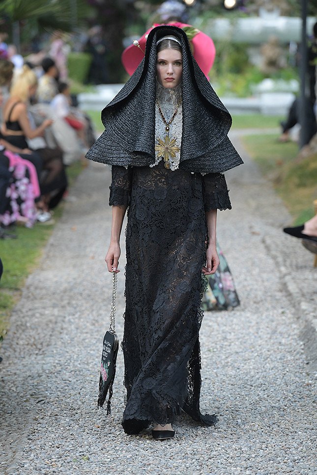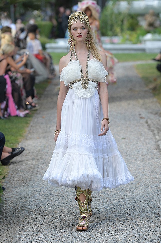Италия. Небольшой городок Тремеццо. Парк Teresio Olivelli на озере Комо. Именно в этом удивительном месте состоялся показ кутюрной коллекции Dolce & Gabbana Alta Moda. Потрясающе красивые панорамы стали достойными «декорациями» для не менее потрясающей коллекции. Итальянский дуэт по традиции «не скромничал»: платья были похожи на произведения искусства. Принты в стиле Ренессанса и цветы, блестки и перья, золото и черные кружева – и не нужно искать в этом какую-то одну идею - по словам Доменико Дольче, в одном аутфите может быть 7 разных референсов.