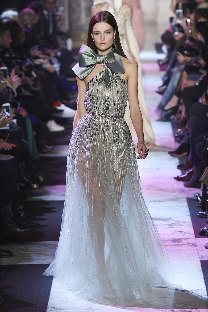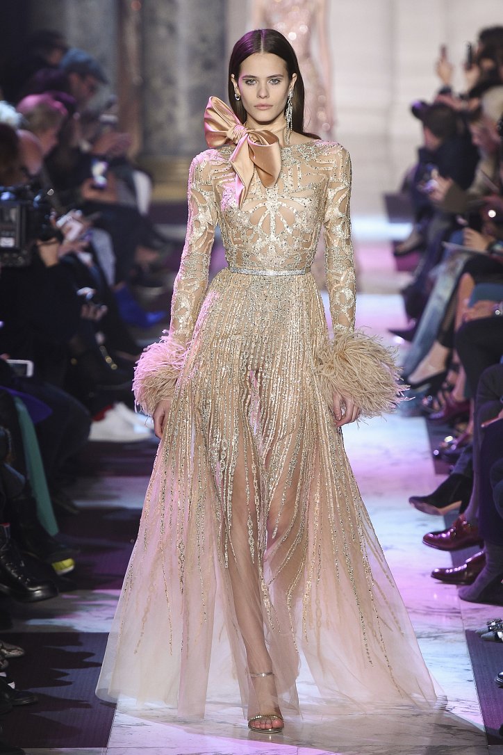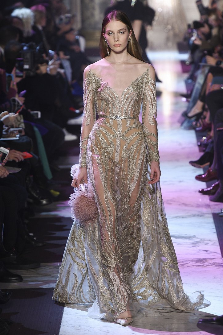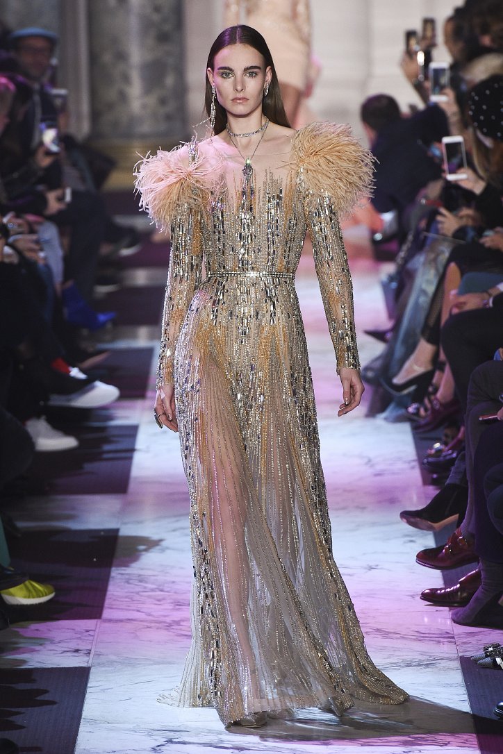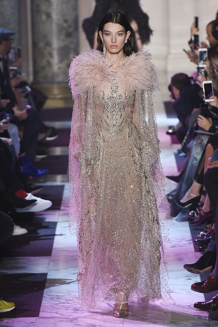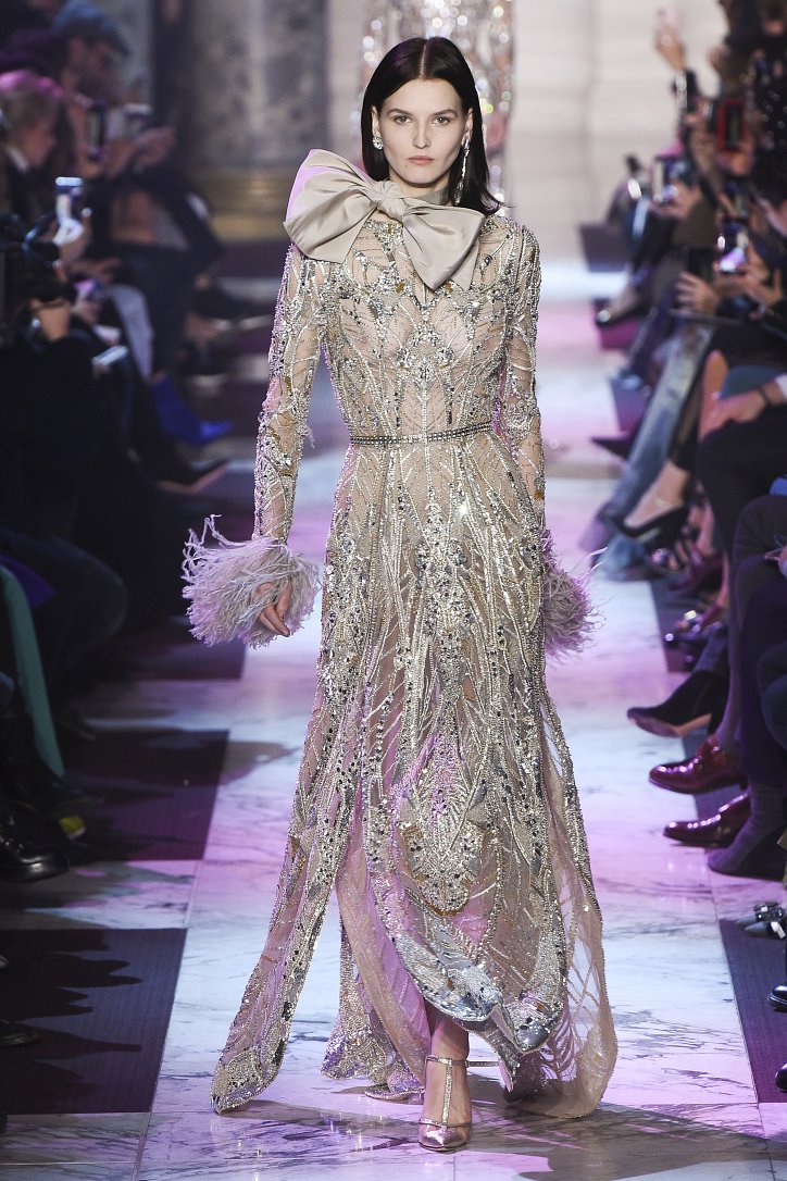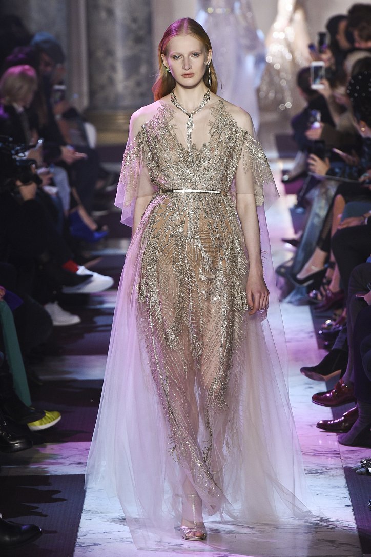 Paris est une Fête. «Праздник, который всегда с тобой» - так назвал свою «кутюрную» коллекцию Эли Сааб. И пригласил гостей на вечеринку в стиле 20-ых. А чтобы выглядеть «соответственно случаю», ливанский дизайнер предложил сказочные платья в нежных оттенках пыльной розы, шампанского, бледного золота и серебристо-голубого с вкраплениями черного и приглушенно-красного. Щедрой рукой дизайнер украсил свои творения стразами и бисером, пайетками и перьями. Словом, все, как обычно – роскошно, непередаваемо женственно и прекрасно.