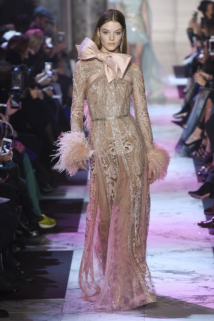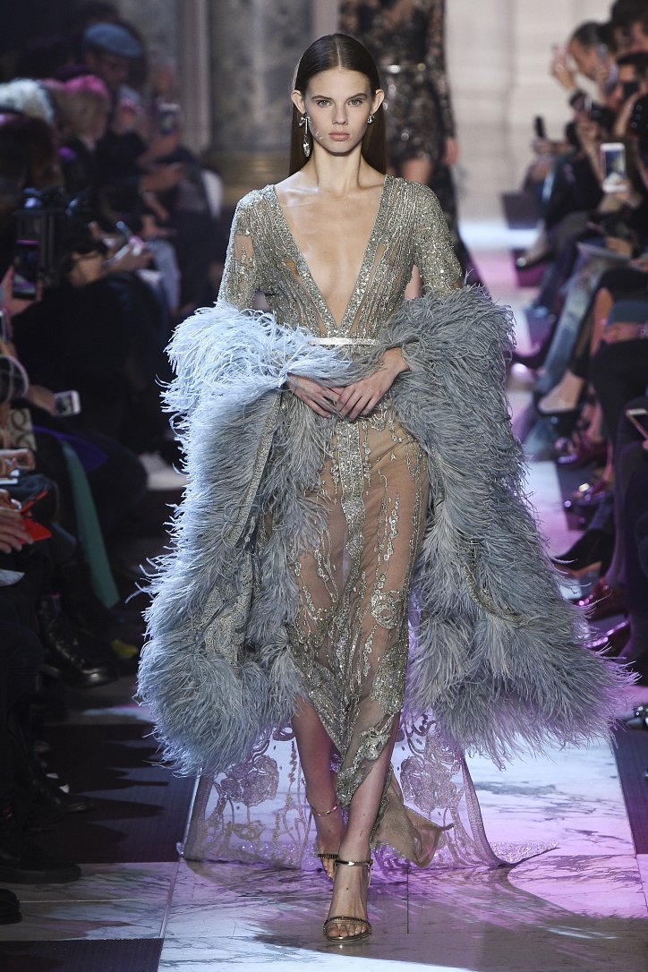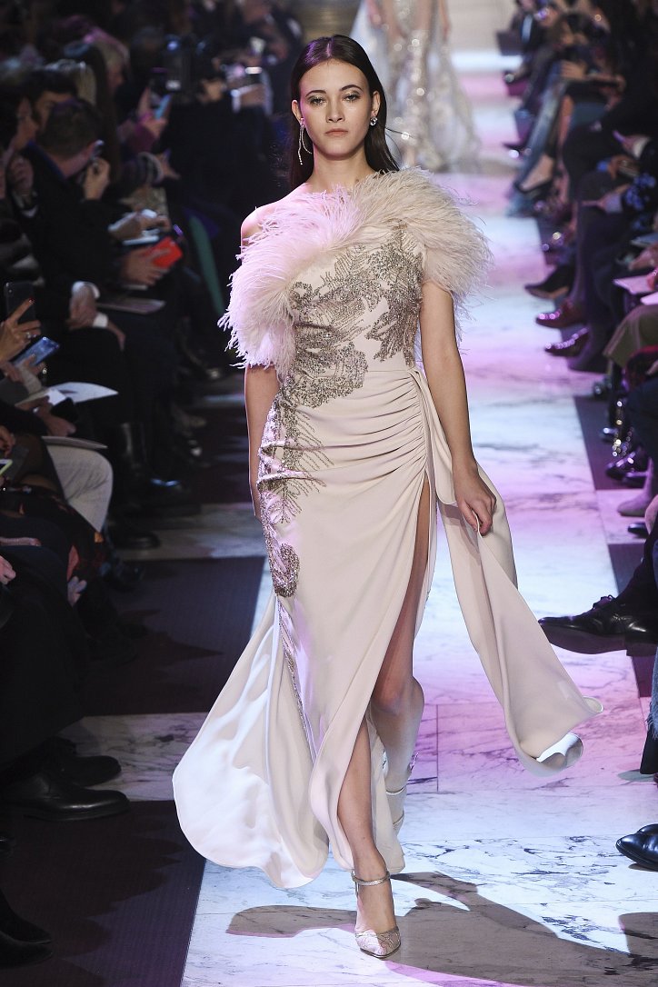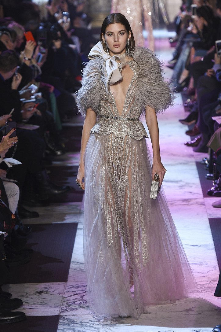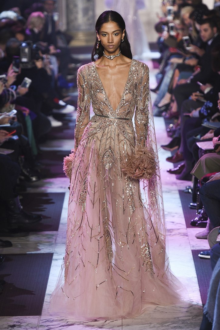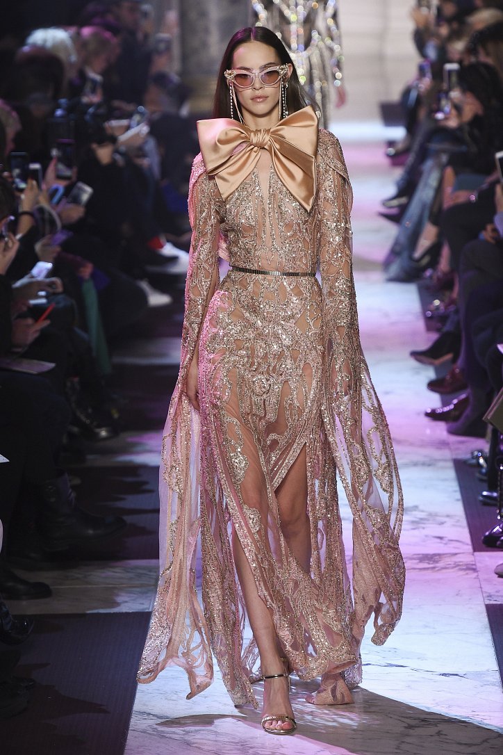 Paris est une Fête. «Праздник, который всегда с тобой» - так назвал свою «кутюрную» коллекцию Эли Сааб. И пригласил гостей на вечеринку в стиле 20-ых. А чтобы выглядеть «соответственно случаю», ливанский дизайнер предложил сказочные платья в нежных оттенках пыльной розы, шампанского, бледного золота и серебристо-голубого с вкраплениями черного и приглушенно-красного. Щедрой рукой дизайнер украсил свои творения стразами и бисером, пайетками и перьями. Словом, все, как обычно – роскошно, непередаваемо женственно и прекрасно.