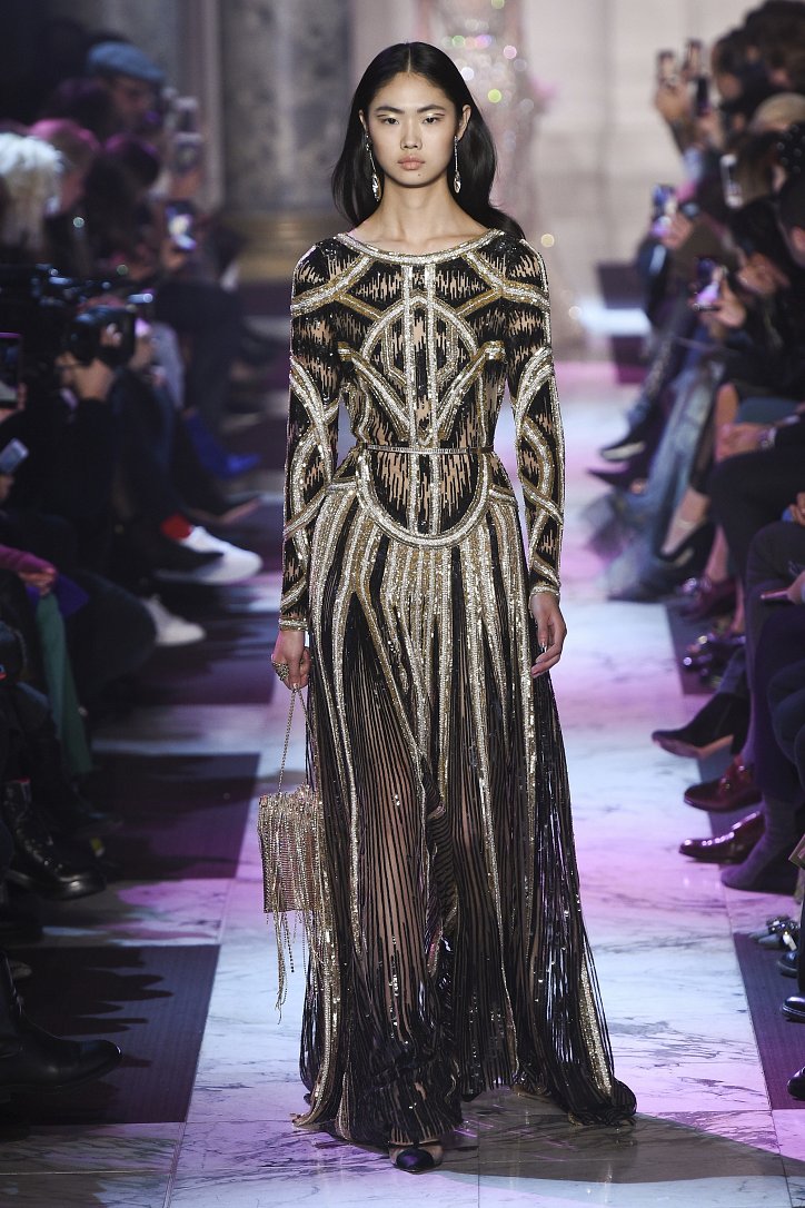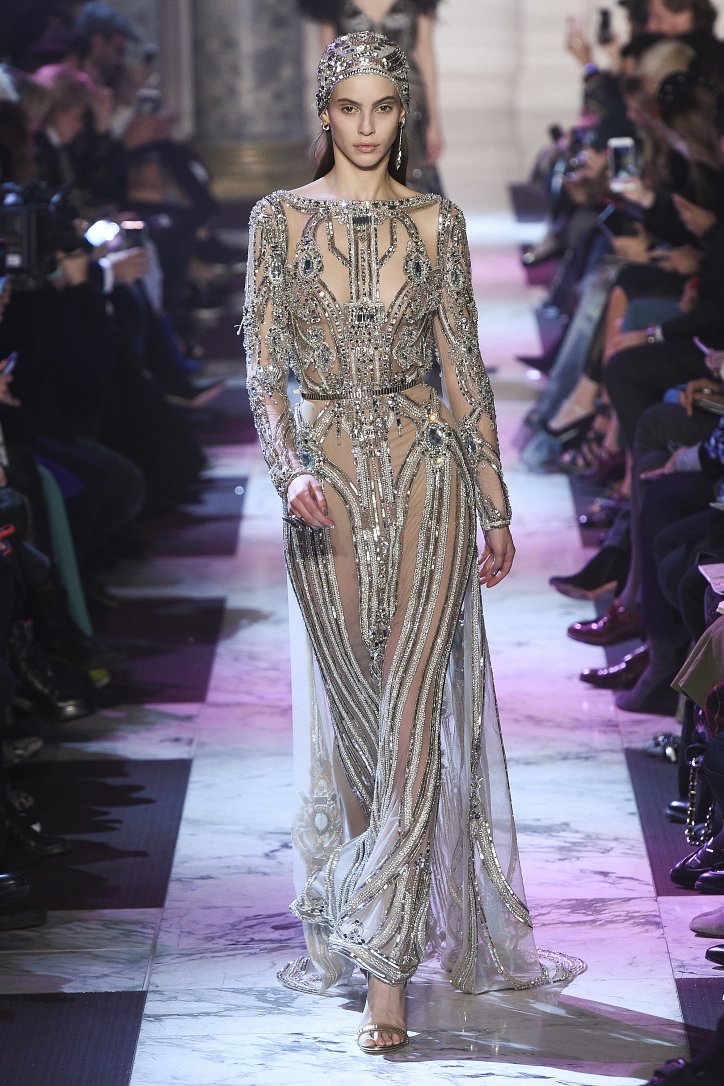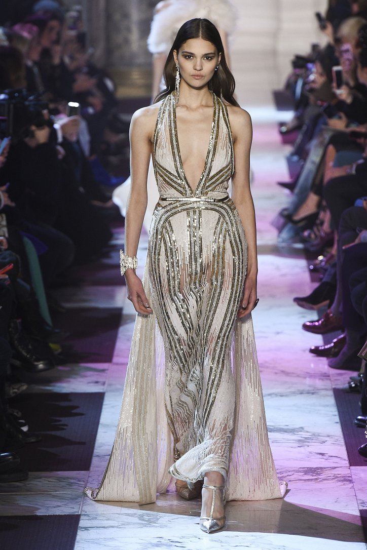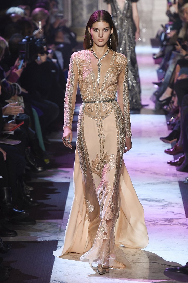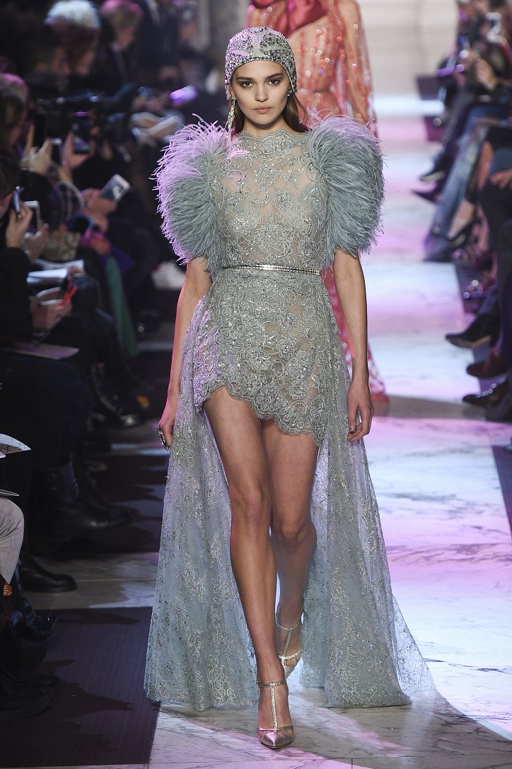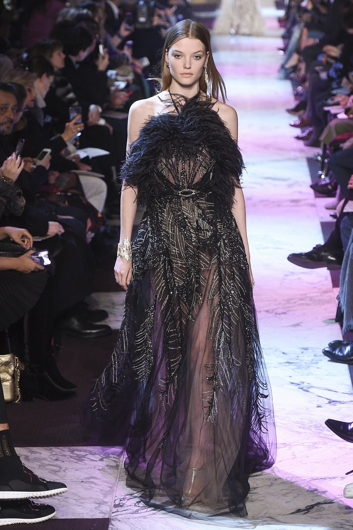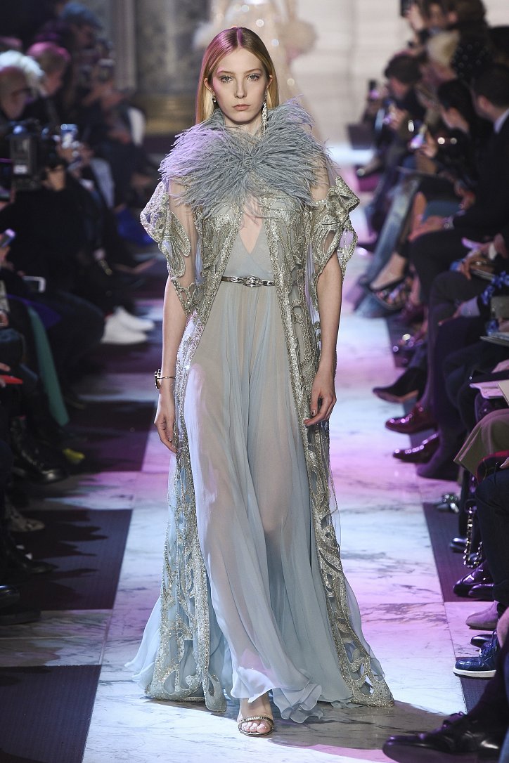 Paris est une Fête. «Праздник, который всегда с тобой» - так назвал свою «кутюрную» коллекцию Эли Сааб. И пригласил гостей на вечеринку в стиле 20-ых. А чтобы выглядеть «соответственно случаю», ливанский дизайнер предложил сказочные платья в нежных оттенках пыльной розы, шампанского, бледного золота и серебристо-голубого с вкраплениями черного и приглушенно-красного. Щедрой рукой дизайнер украсил свои творения стразами и бисером, пайетками и перьями. Словом, все, как обычно – роскошно, непередаваемо женственно и прекрасно.