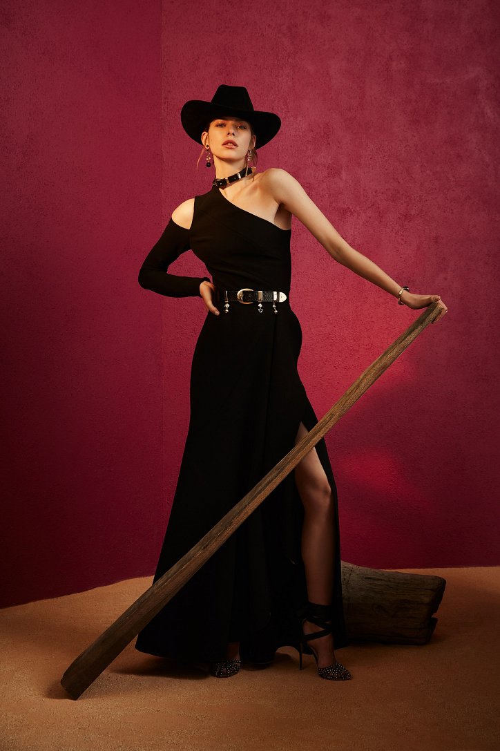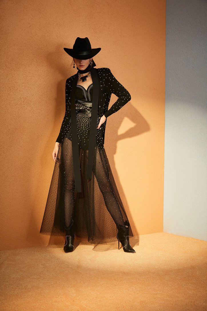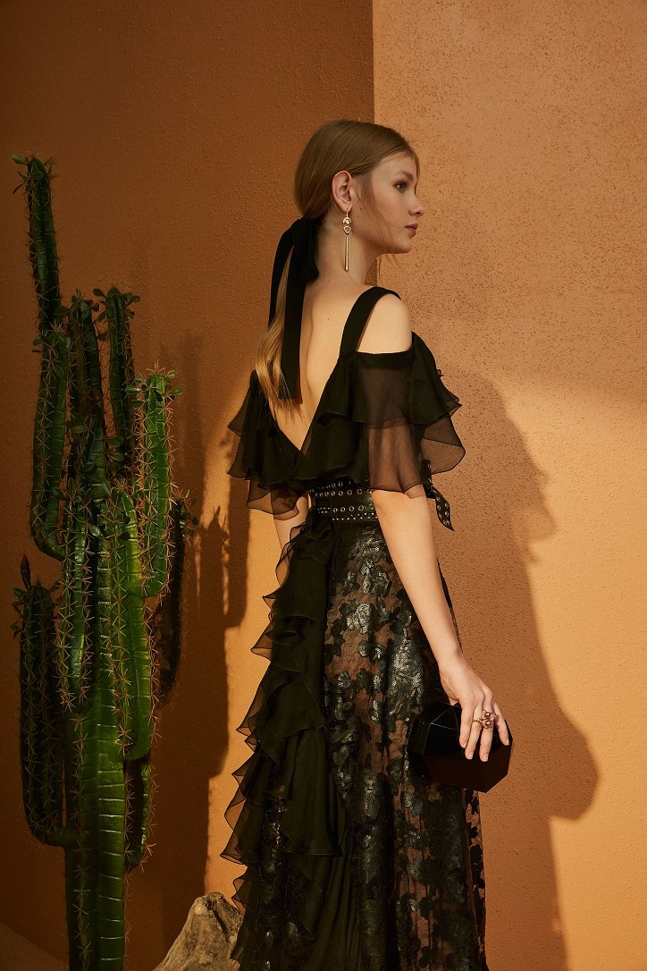Кожа и бахрома, стетсоны и кейпы - Elie Saab вышел из «зоны комфорта» и отправился покорять новые горизонты. На сей раз его путь лежал на границу Америки и Мексики - в засушливую пустыню Сонора. Но стиль western, как оказалось, может быть весьма соблазнительным, чувственным и женственным – в лучших традициях бренда.