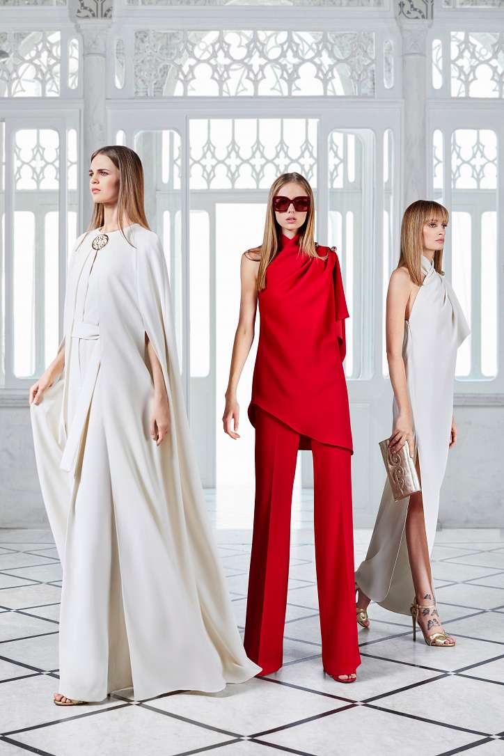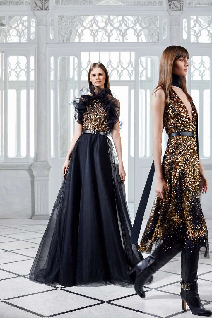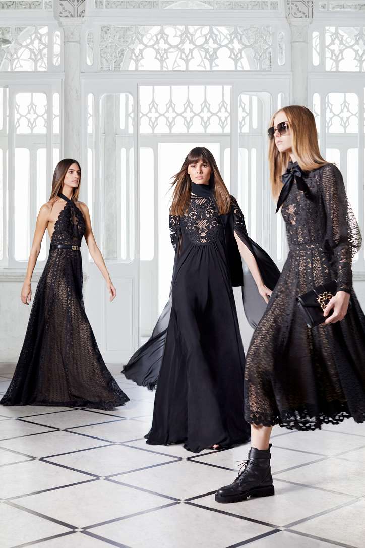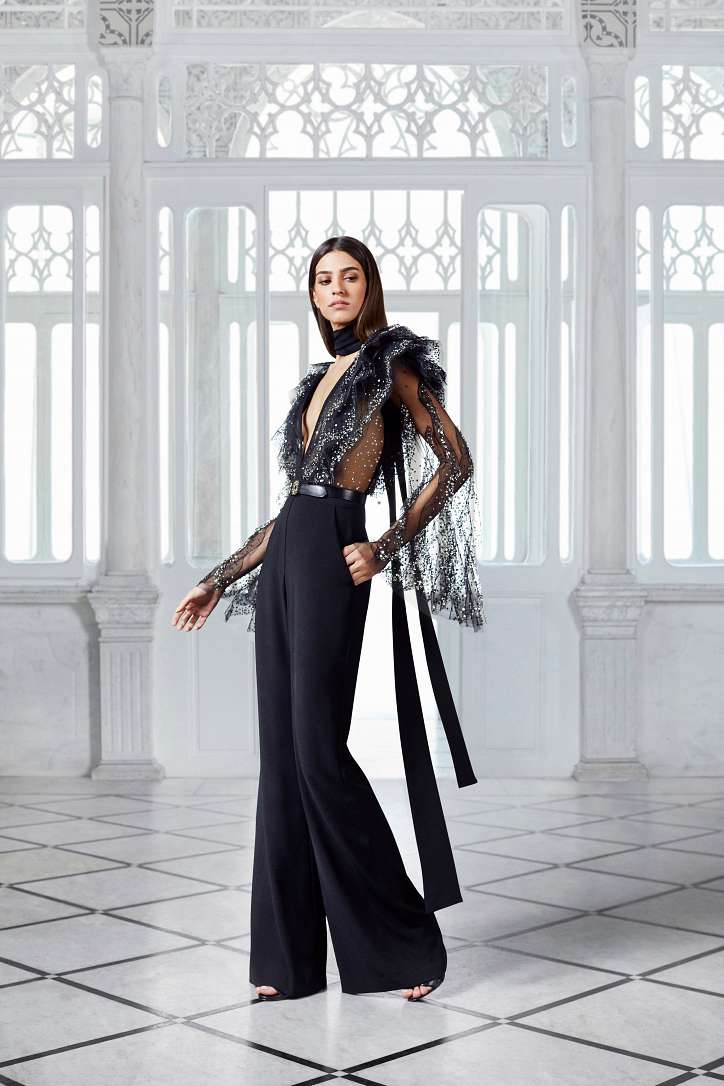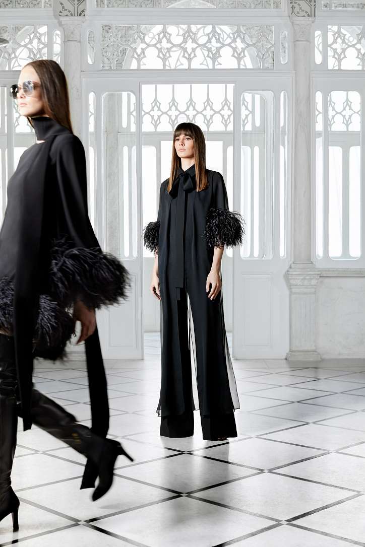 Взяв за основу стиль семидесятых, Эли Сааб создал безупречную коллекцию, в которой были и стильные удлинённые брюки клёш, и ярко-красные мини-платье и комбинезон, выполненные в технике макраме, и блузки с воротниками-бантами. Для дневного времени предназначены были и двубортное пальто с пышными рукавами, и кейпы, и клетчатые костюмы, и высокие сапоги. Но большая часть коллекции, конечно же, была создана для «особых» случаев. Здесь царили золотые пайетки и перья, шифон и тюль, плиссировка и летящие силуэты, оборки и леопардовые принты – словом, гламур и ещё раз гламур!