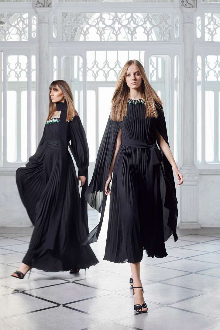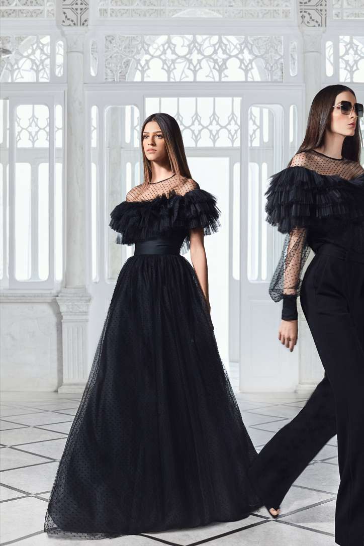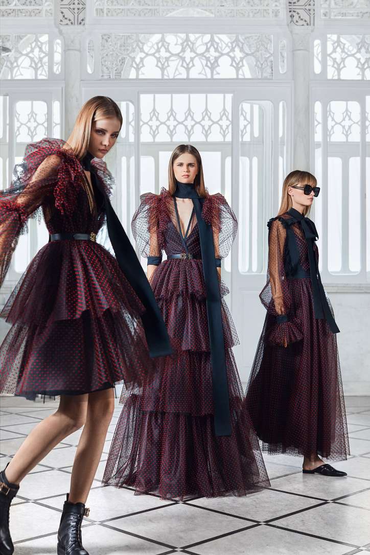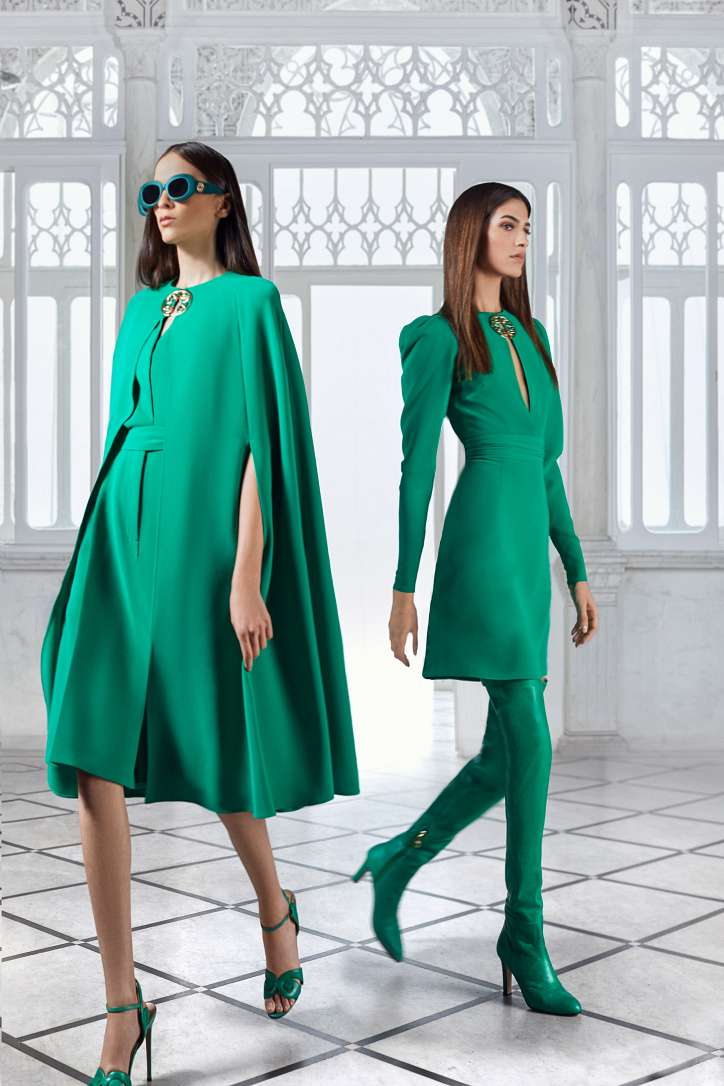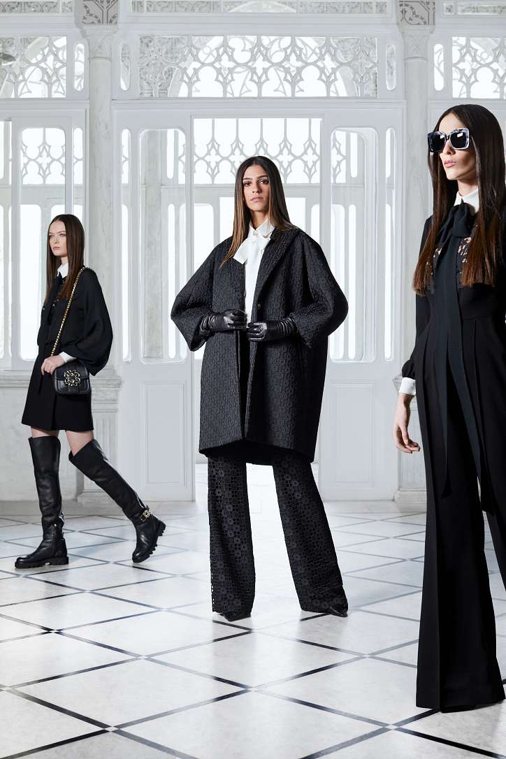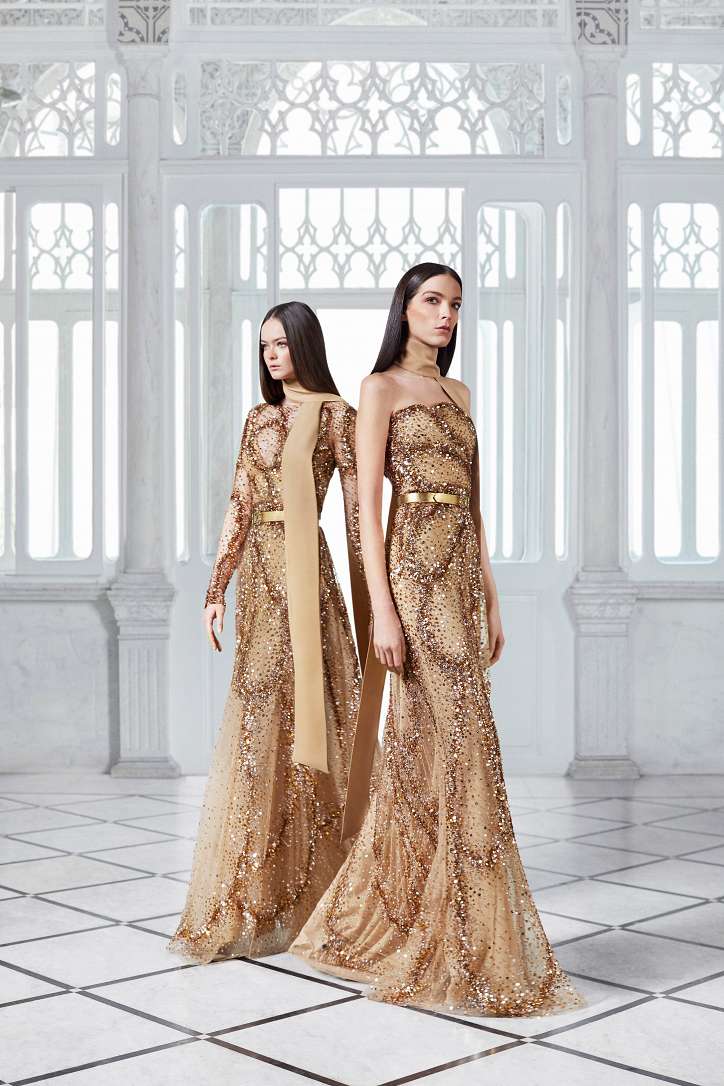 Взяв за основу стиль семидесятых, Эли Сааб создал безупречную коллекцию, в которой были и стильные удлинённые брюки клёш, и ярко-красные мини-платье и комбинезон, выполненные в технике макраме, и блузки с воротниками-бантами. Для дневного времени предназначены были и двубортное пальто с пышными рукавами, и кейпы, и клетчатые костюмы, и высокие сапоги. Но большая часть коллекции, конечно же, была создана для «особых» случаев. Здесь царили золотые пайетки и перья, шифон и тюль, плиссировка и летящие силуэты, оборки и леопардовые принты – словом, гламур и ещё раз гламур!