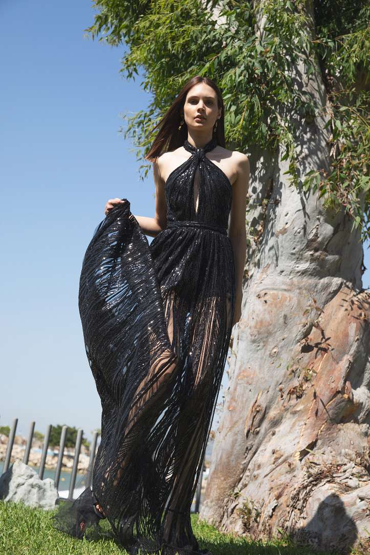 Для выходов в свет - монохромные платья в греческом стиле и модели, расшитые микро-пайетками, которые создают эффект второй кожи, вышивка и плиссе, бахрома и драпировки.