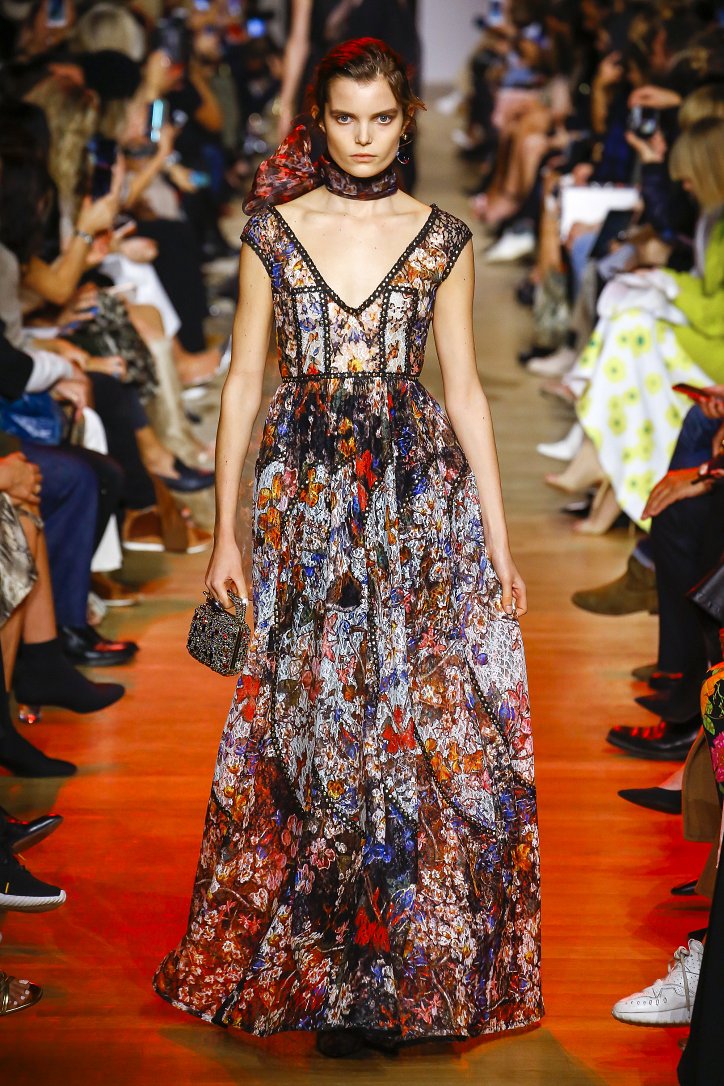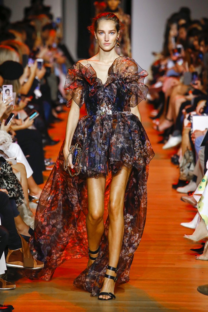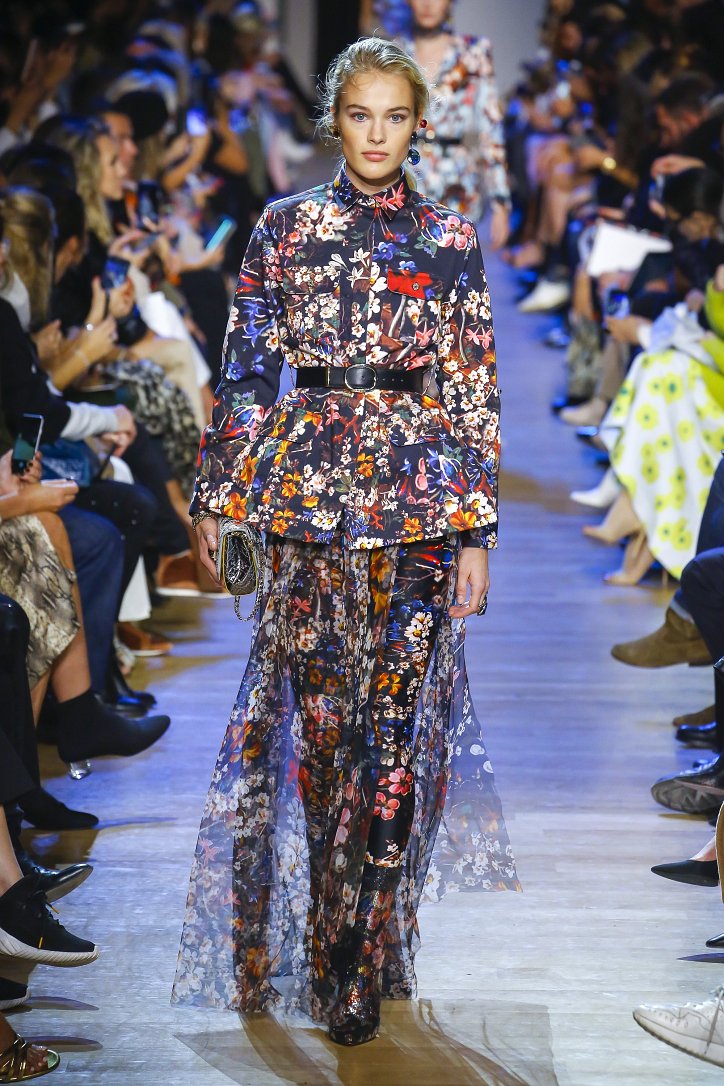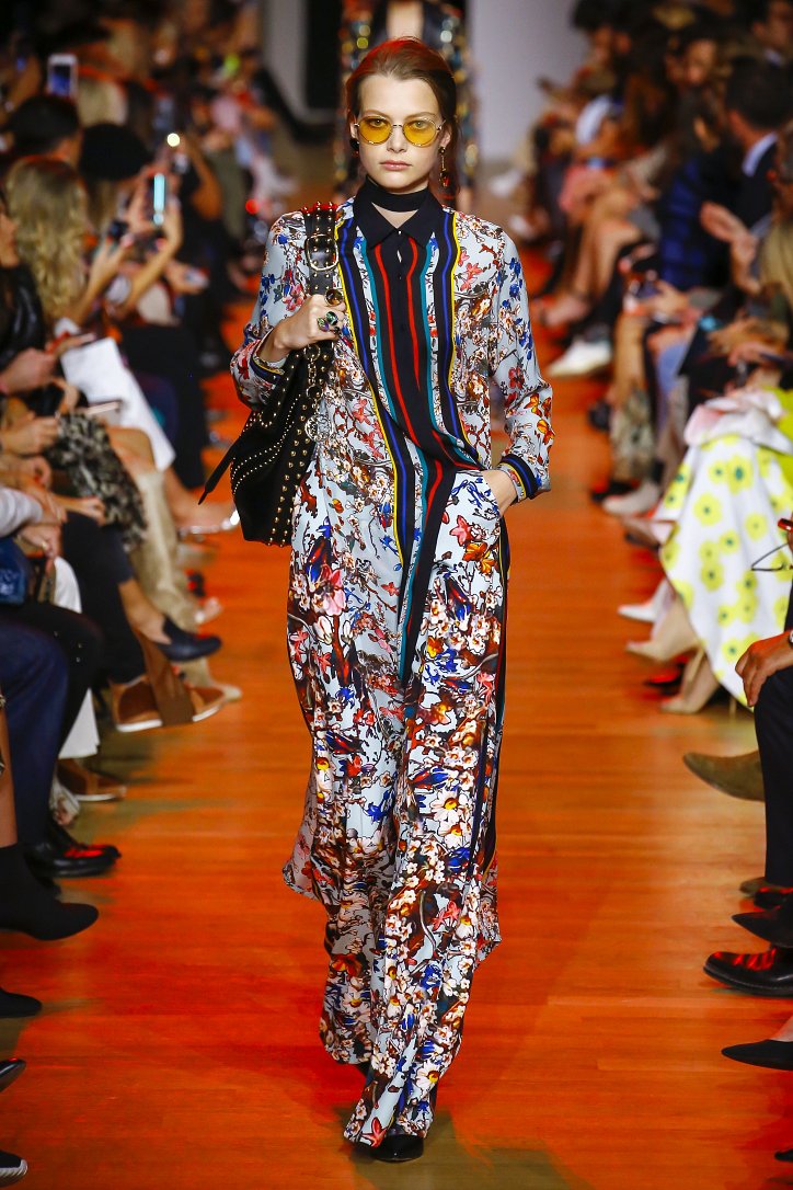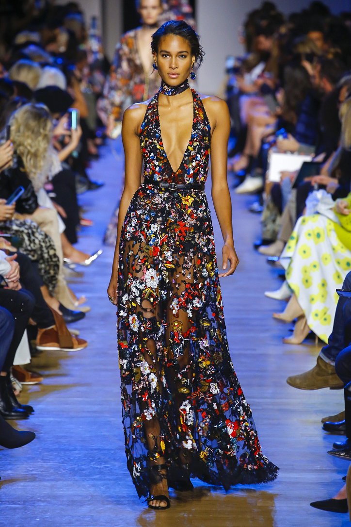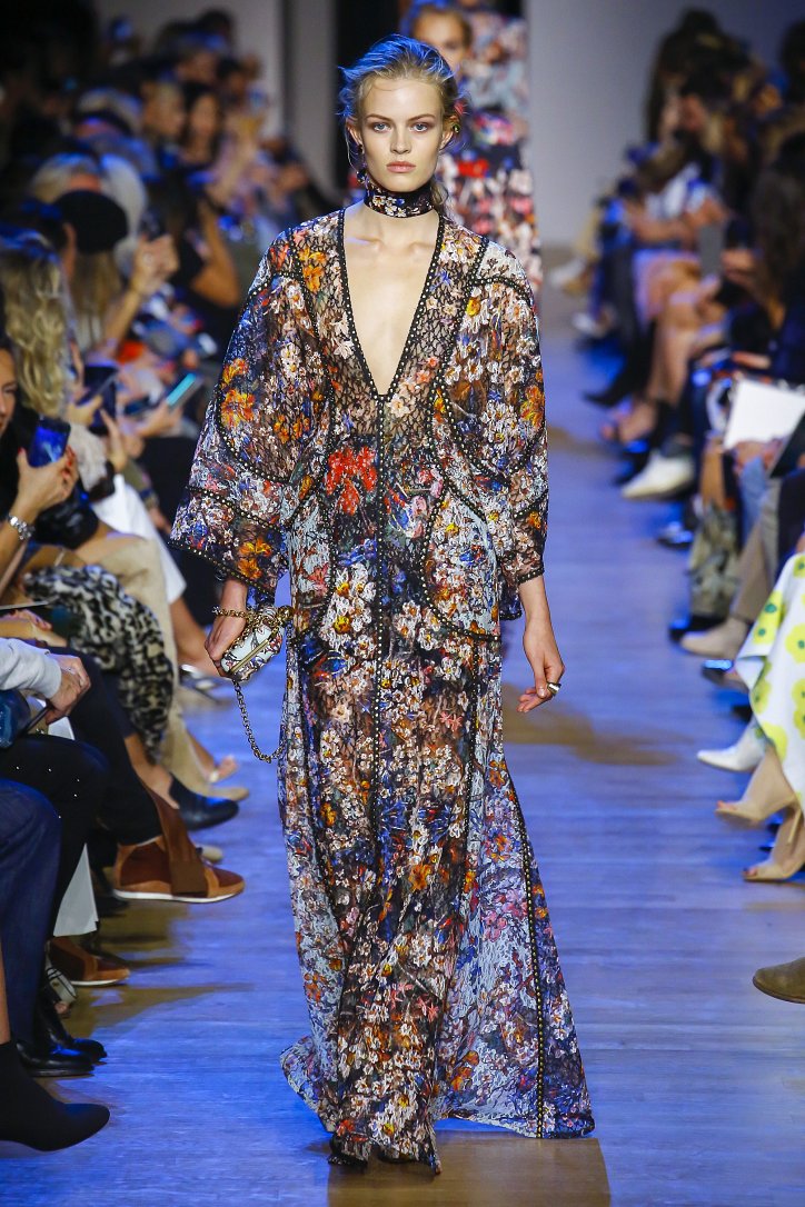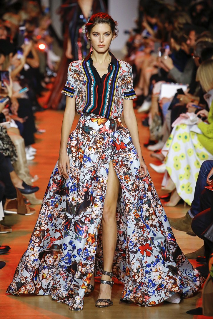 Долгое время имя Elie Saab прочно ассоциировалось с роскошными вечерними туалетами и красной ковровой дорожкой. Но ливанский дизайнер решил выйти за привычные рамки, и вот уже несколько сезонов подряд мы наблюдаем крен в сторону повседневного гардероба. Вот и новая коллекция Elie Saab стала продолжением этого эксперимента. Белая рубашка и черные брюки клеш, кожа с лазерной обработкой, размытые цветочные принты на черном фоне, много «леопарда», мини-платья и комплекты с шортами, футболка, надетая поверх блузы, довольно откровенные кружевные платья с металлическими заклепками и цветная полоска – все это выглядело несколько непривычно. А для преданных поклонниц бренда Эли Сааб предложил несколько потрясающе красивых моделей, расшитых блестками, с кружевными вставками и бисерной вышивкой на шифоне.