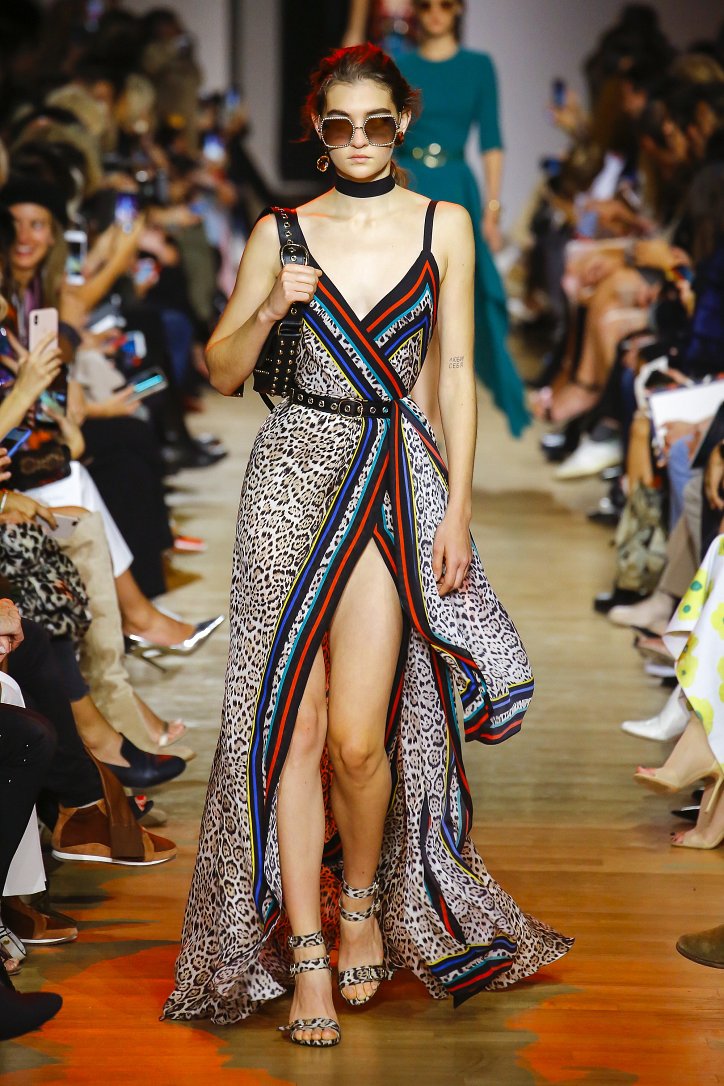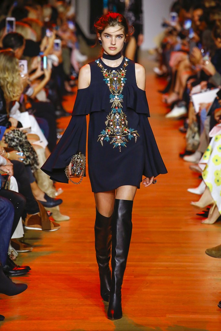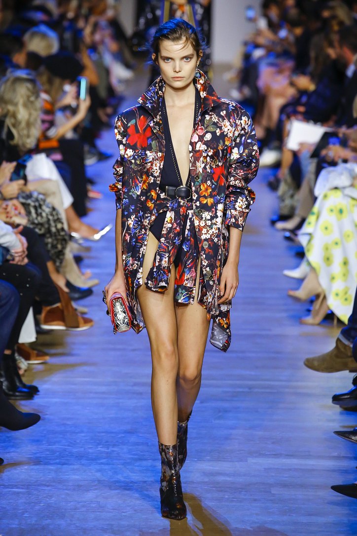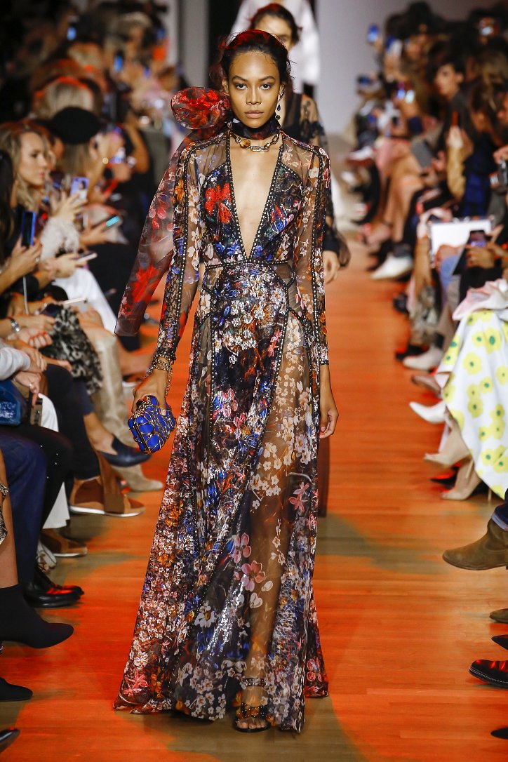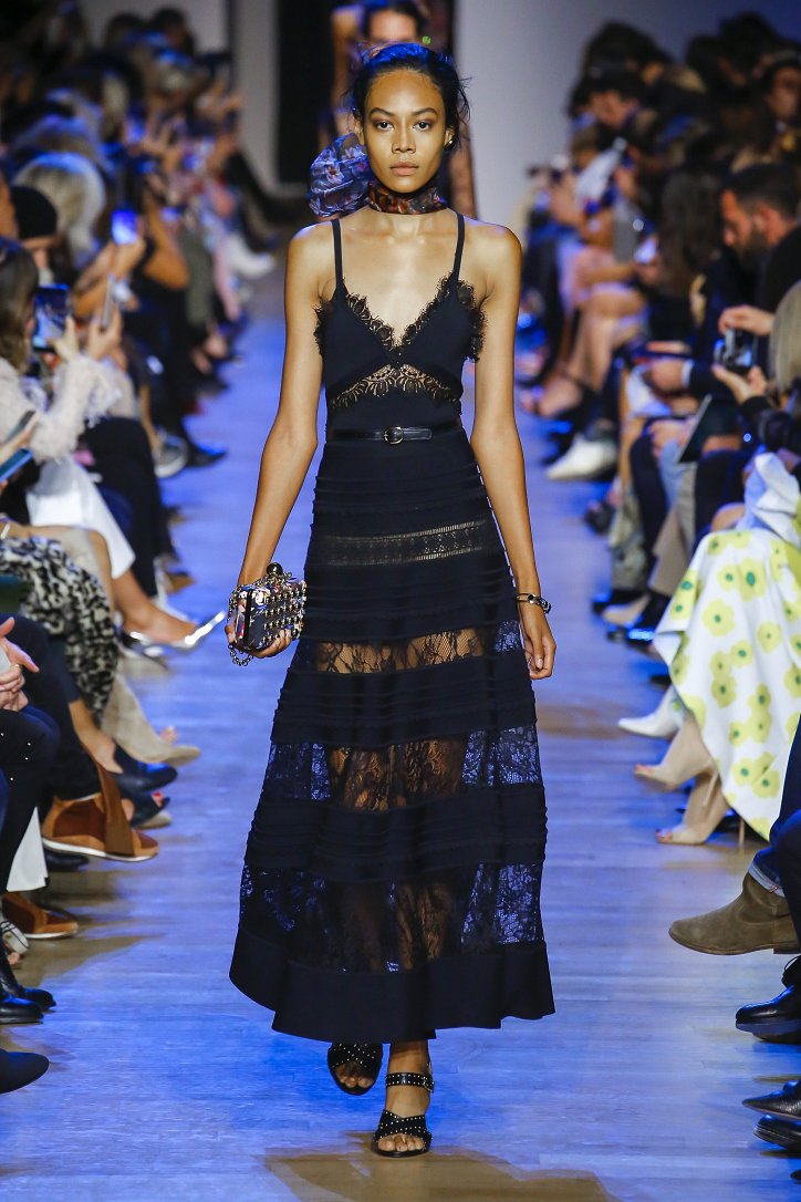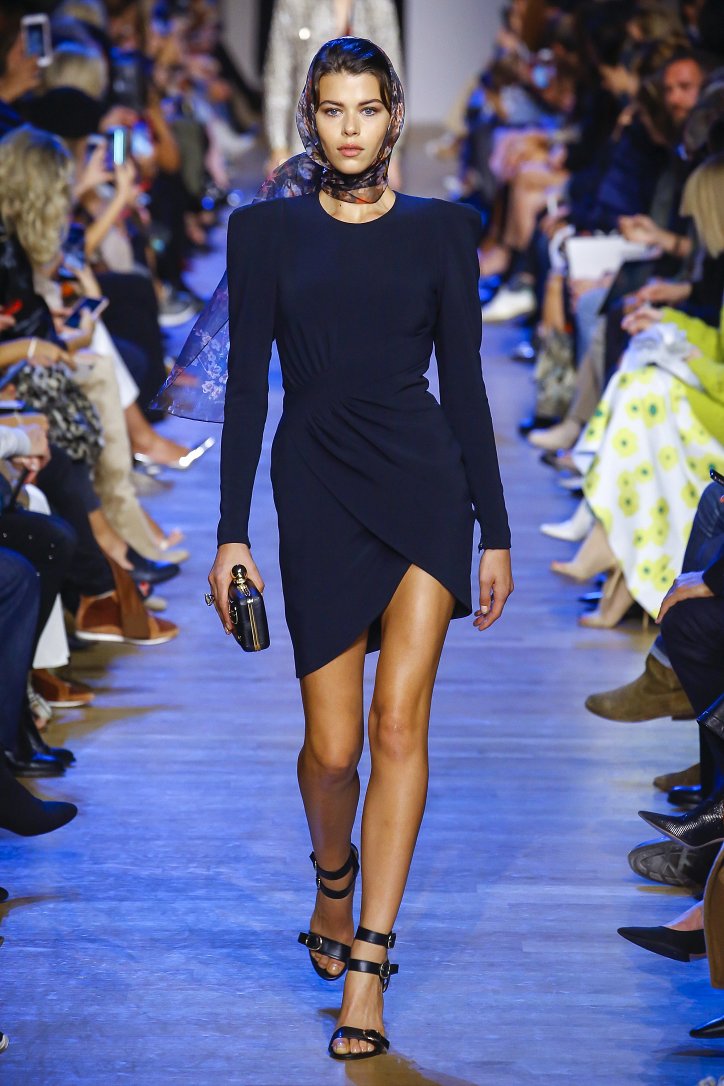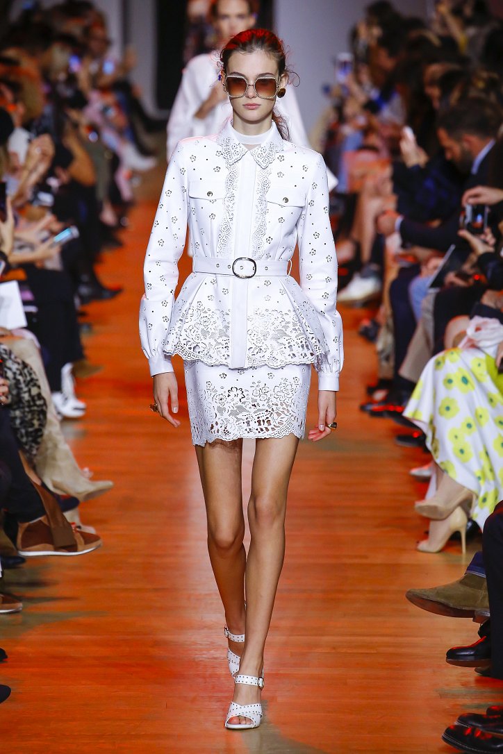 Долгое время имя Elie Saab прочно ассоциировалось с роскошными вечерними туалетами и красной ковровой дорожкой. Но ливанский дизайнер решил выйти за привычные рамки, и вот уже несколько сезонов подряд мы наблюдаем крен в сторону повседневного гардероба. Вот и новая коллекция Elie Saab стала продолжением этого эксперимента. Белая рубашка и черные брюки клеш, кожа с лазерной обработкой, размытые цветочные принты на черном фоне, много «леопарда», мини-платья и комплекты с шортами, футболка, надетая поверх блузы, довольно откровенные кружевные платья с металлическими заклепками и цветная полоска – все это выглядело несколько непривычно. А для преданных поклонниц бренда Эли Сааб предложил несколько потрясающе красивых моделей, расшитых блестками, с кружевными вставками и бисерной вышивкой на шифоне.