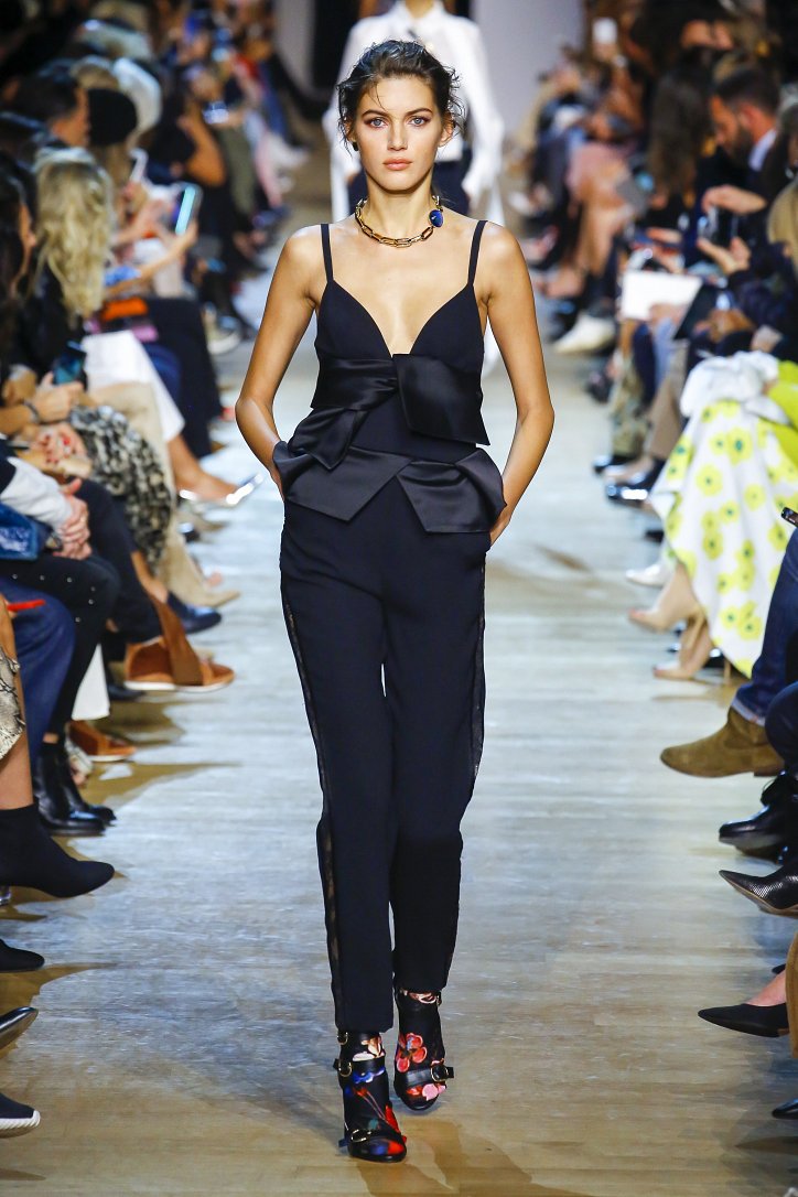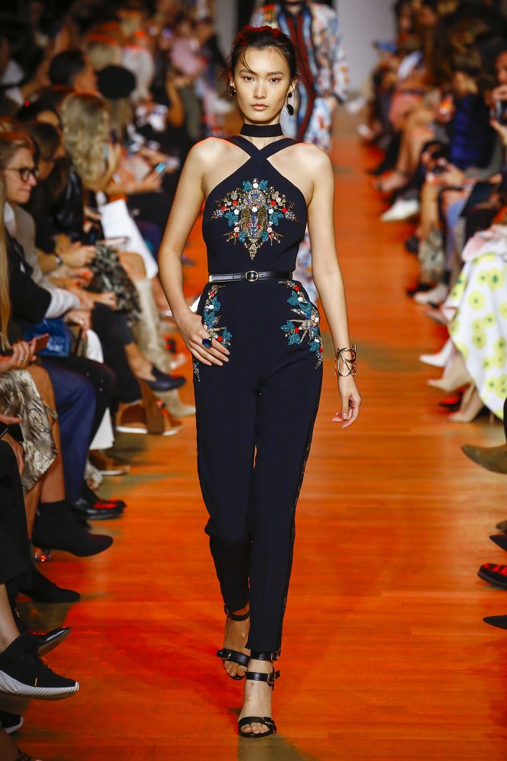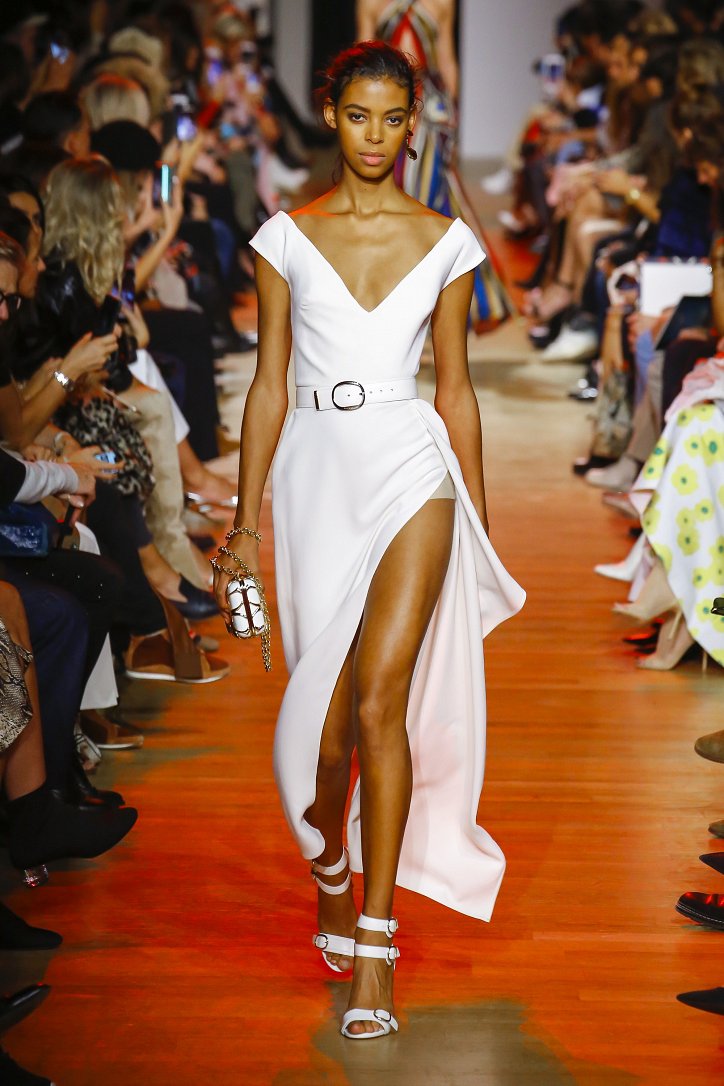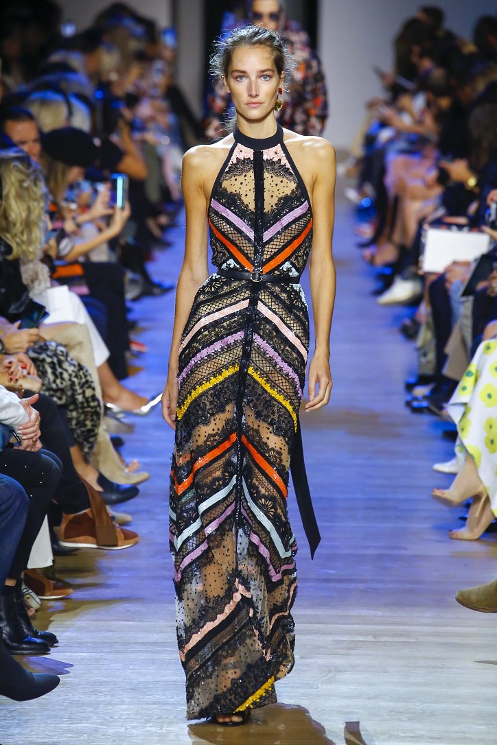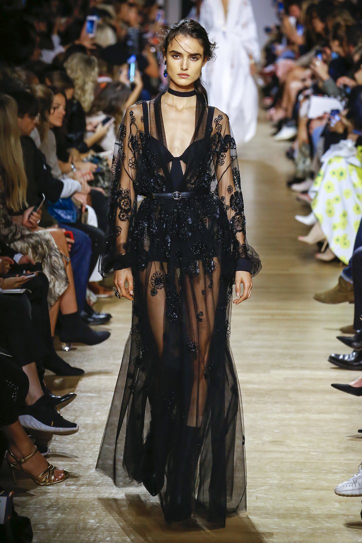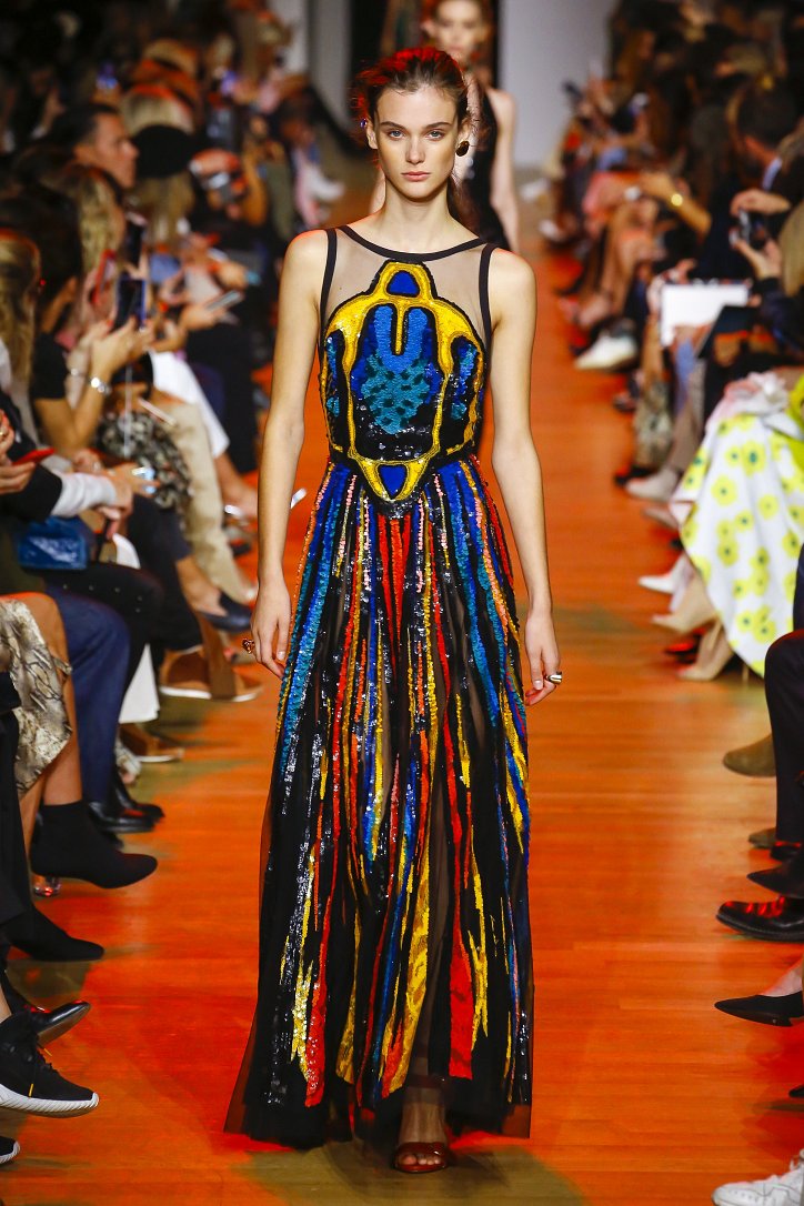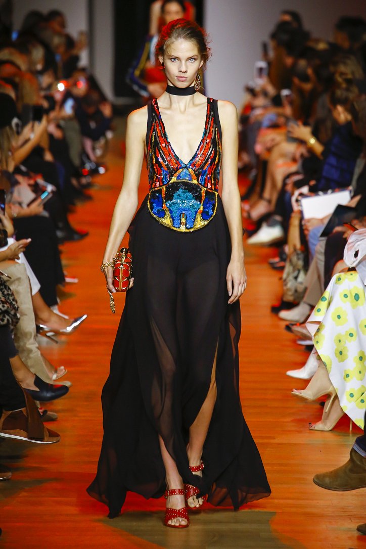 Долгое время имя Elie Saab прочно ассоциировалось с роскошными вечерними туалетами и красной ковровой дорожкой. Но ливанский дизайнер решил выйти за привычные рамки, и вот уже несколько сезонов подряд мы наблюдаем крен в сторону повседневного гардероба. Вот и новая коллекция Elie Saab стала продолжением этого эксперимента. Белая рубашка и черные брюки клеш, кожа с лазерной обработкой, размытые цветочные принты на черном фоне, много «леопарда», мини-платья и комплекты с шортами, футболка, надетая поверх блузы, довольно откровенные кружевные платья с металлическими заклепками и цветная полоска – все это выглядело несколько непривычно. А для преданных поклонниц бренда Эли Сааб предложил несколько потрясающе красивых моделей, расшитых блестками, с кружевными вставками и бисерной вышивкой на шифоне.