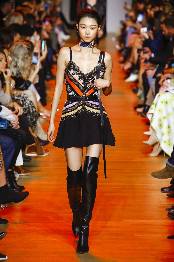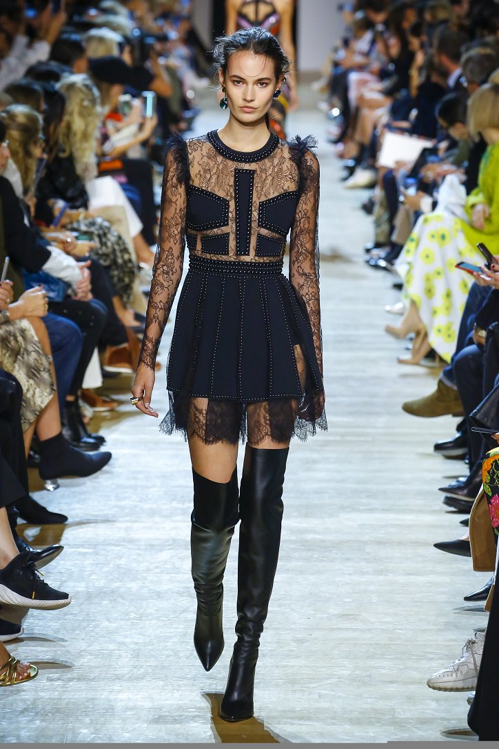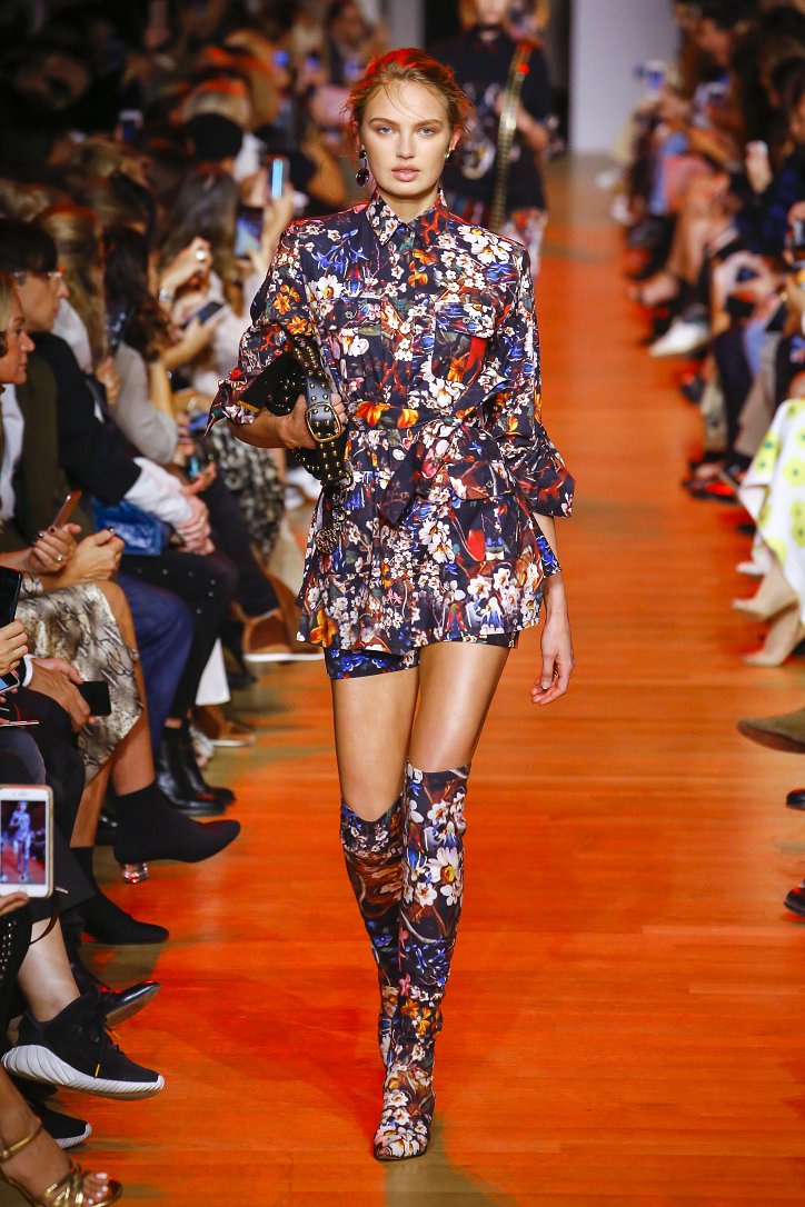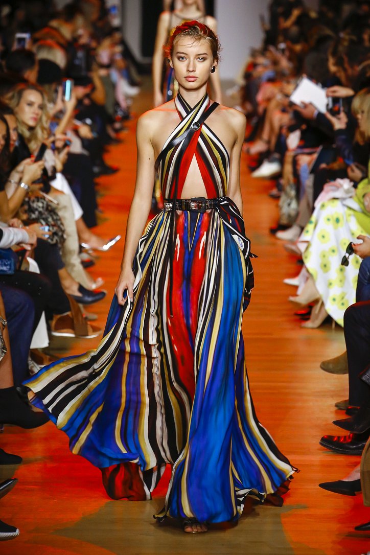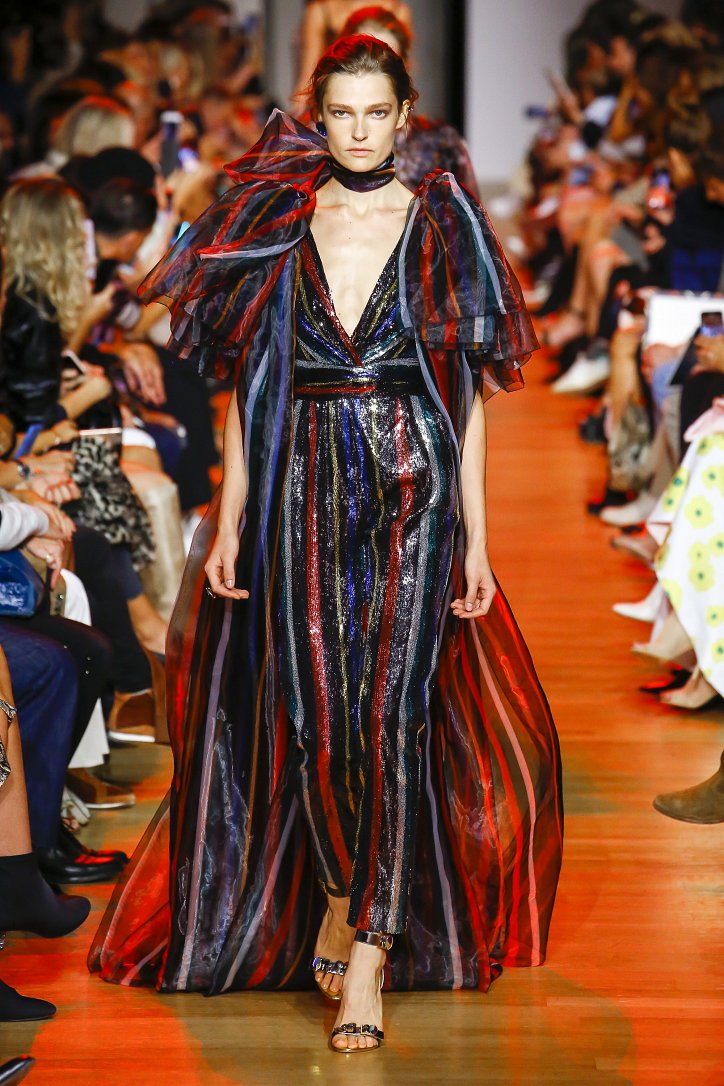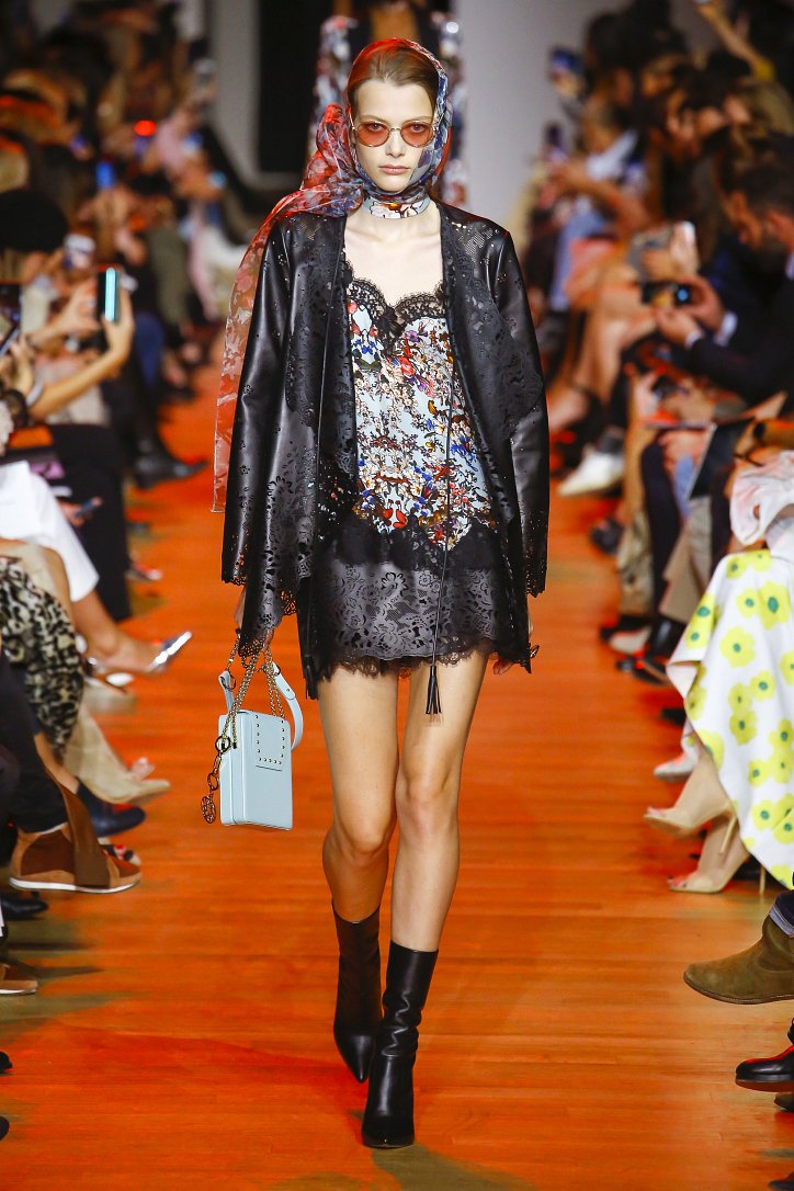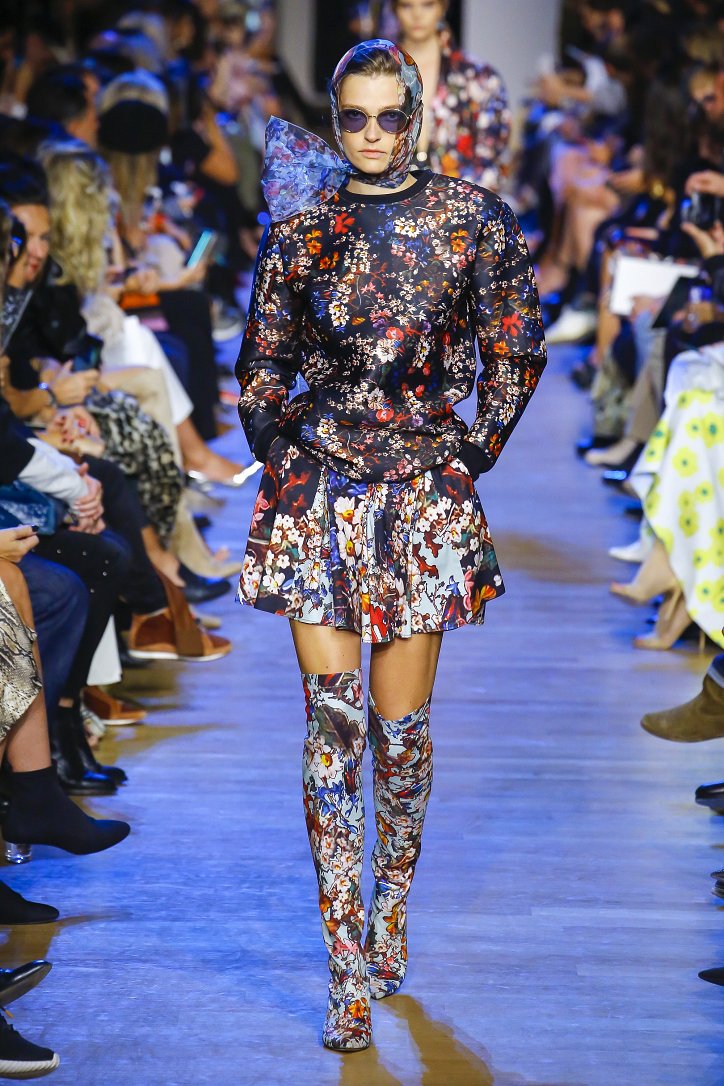 Долгое время имя Elie Saab прочно ассоциировалось с роскошными вечерними туалетами и красной ковровой дорожкой. Но ливанский дизайнер решил выйти за привычные рамки, и вот уже несколько сезонов подряд мы наблюдаем крен в сторону повседневного гардероба. Вот и новая коллекция Elie Saab стала продолжением этого эксперимента. Белая рубашка и черные брюки клеш, кожа с лазерной обработкой, размытые цветочные принты на черном фоне, много «леопарда», мини-платья и комплекты с шортами, футболка, надетая поверх блузы, довольно откровенные кружевные платья с металлическими заклепками и цветная полоска – все это выглядело несколько непривычно. А для преданных поклонниц бренда Эли Сааб предложил несколько потрясающе красивых моделей, расшитых блестками, с кружевными вставками и бисерной вышивкой на шифоне.