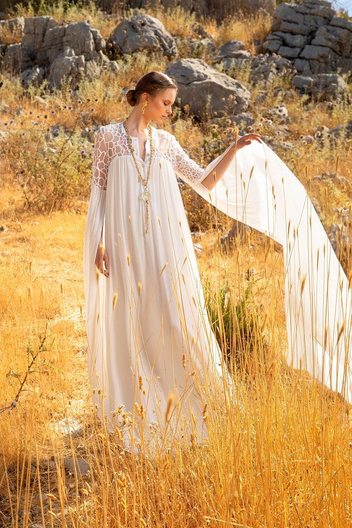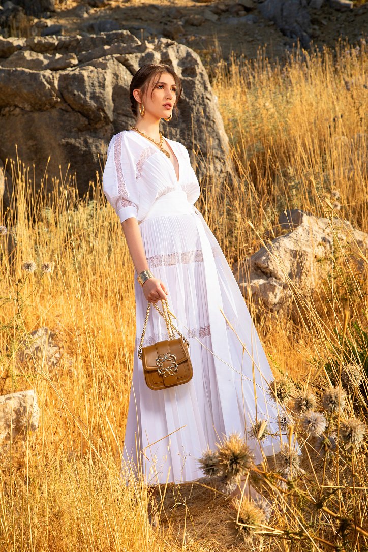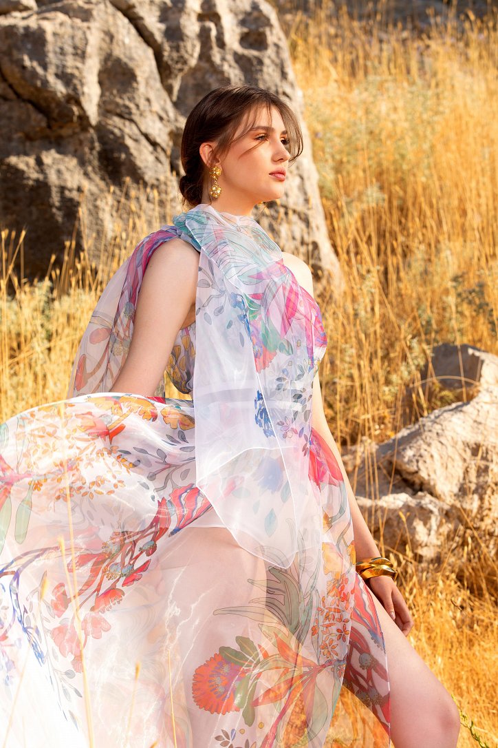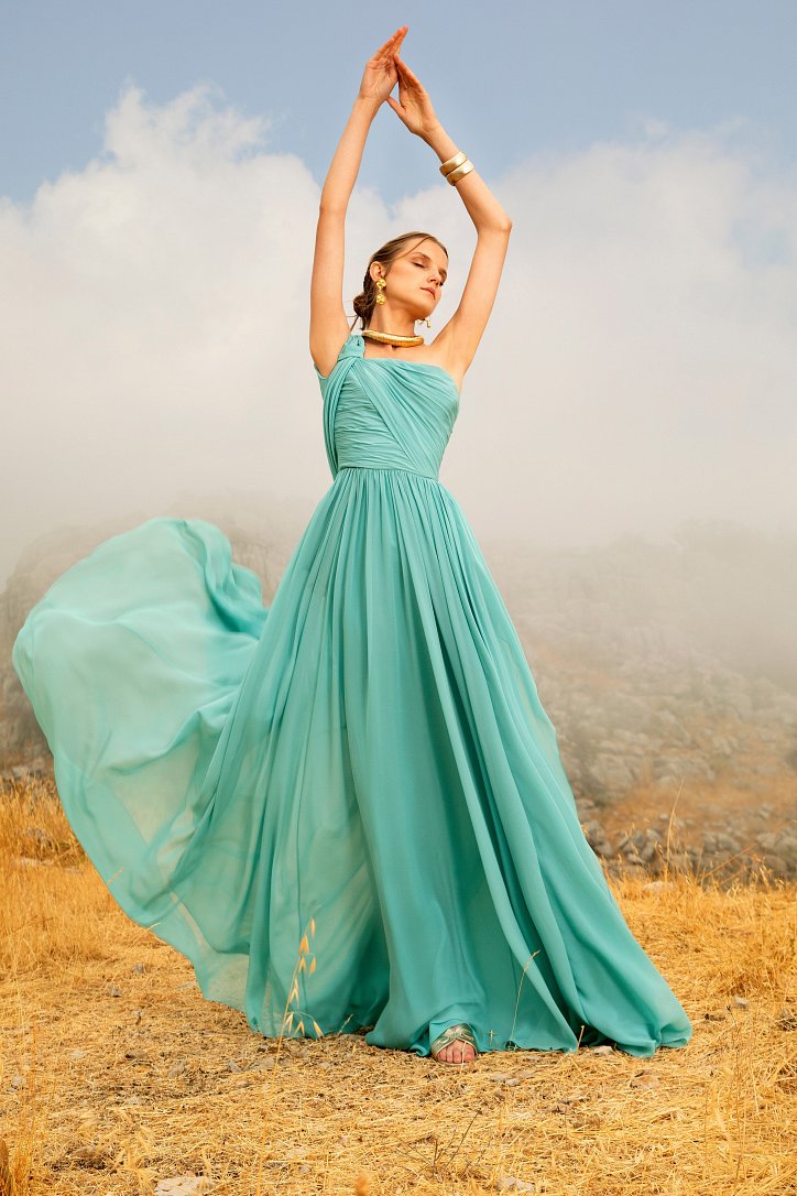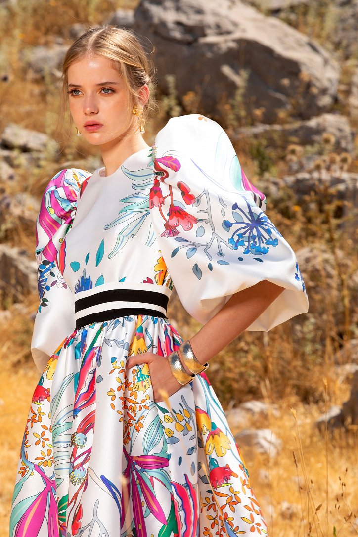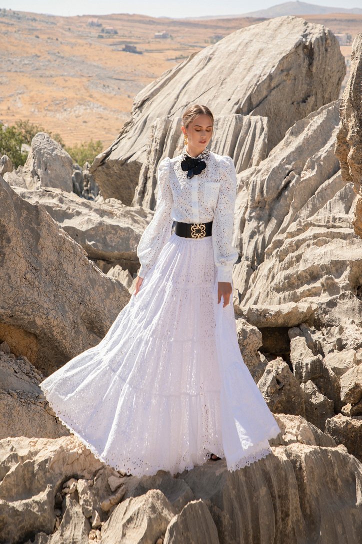 Место действия – горы Факра (Ливан). Музыкальное сопровождение - Dakha Brakha (Украина). Коллекция – Elie Saab. Такими могли бы быть титры к 5-минутному фильму, в котором ливанский дизайнер представил свою новую коллекцию, создававшуюся в очень непростых условиях: кроме пандемии, которая изрядно «подкосила» мир моды, взрыв в Бейруте уничтожил и дом Эли Сааба, и его ателье. Однако дизайнер не унывает – его новая коллекция называется «Новый рассвет» и символизирует торжество жизни. Героини микрофильма демонстрируют роскошные цветные капсулы: пудрово-розовый оттенок напоминает цветы бугенвиллей, зеленый олицетворяет цвет листвы, красный – цвет потери, а белый – надежды на мир и безмятежное будущее. Сам же дизайнер признается в любви к бирюзовой линейке, в которую вошло и греческое платье в стиле Грейс Келли.