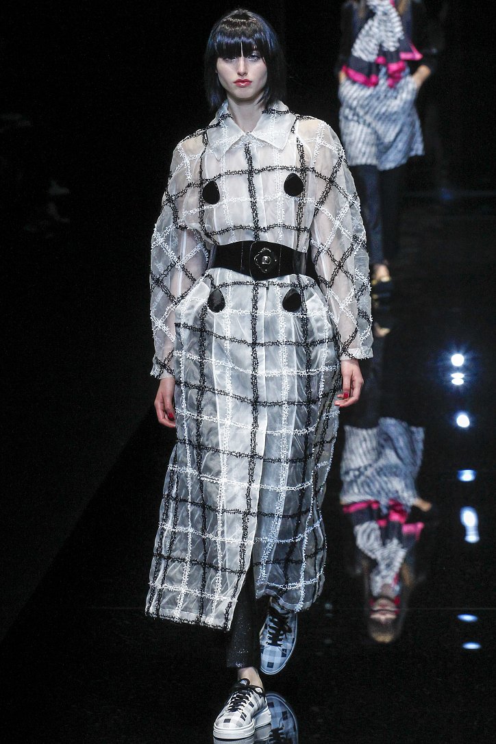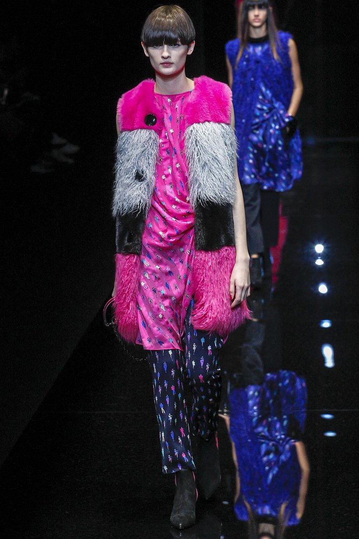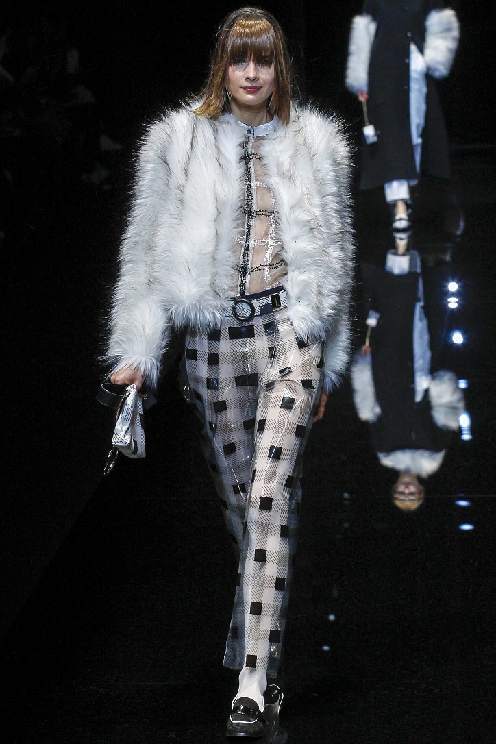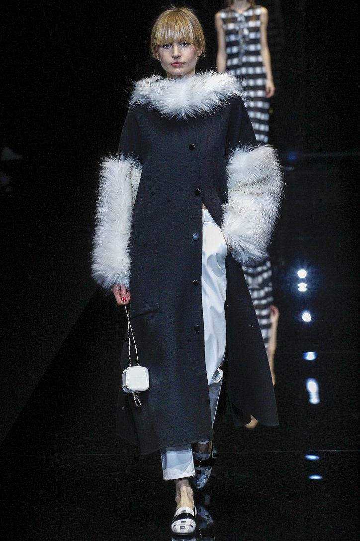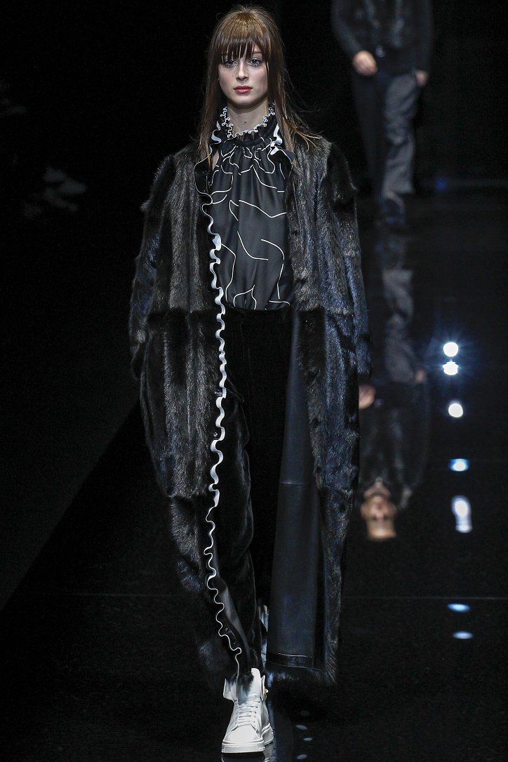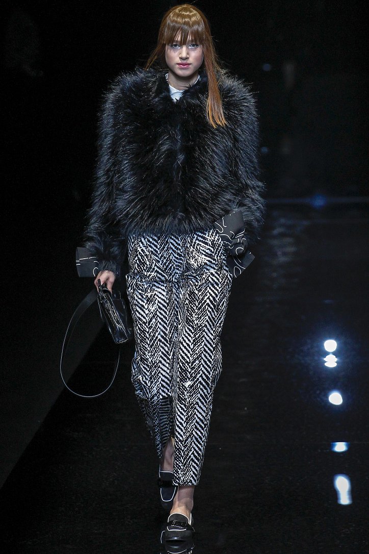 Джорджо Армани представил в Милане свою новую коллекцию. Главной темой Emporio Armani осень-зима 2017-2018 стали контрасты. Белый и черный – как основные цвета коллекции. Фуксия с бирюзой и синим цветом – в принтах. Меховые куртки дизайнер предложил носить с клетчатыми брюками из ПВХ, а объемные шубы – с кроссовками. По словам самого Армани, коллекция соткана из противоположностей и несет в себе беспокойный дух мегаполиса. Впрочем, это не помешало мэтру сохранить и женственность силуэтов, и безупречность кроя, и неповторимый итальянский шик, присущий бренду. Бархат и мех, крохотные сумочки и приталенные жакеты, броские аксессуары и умело расставленные акценты – эксперимент явно удался!
