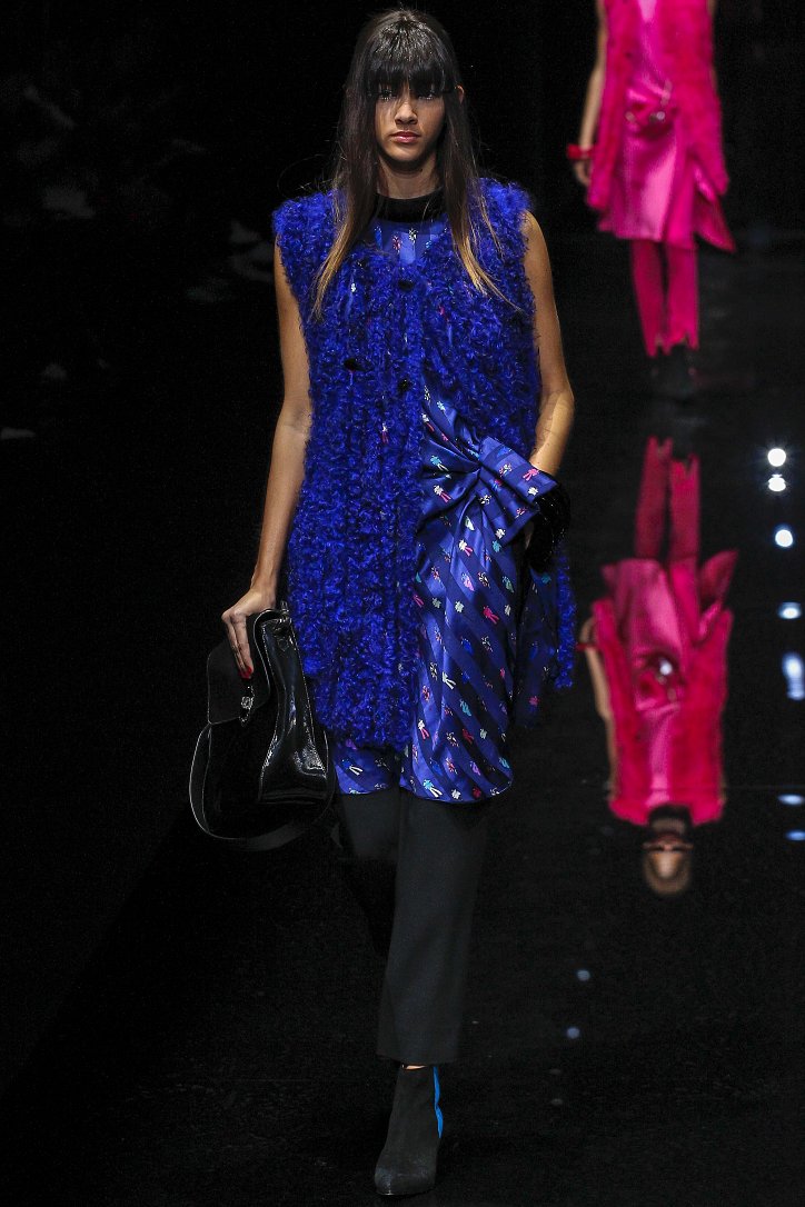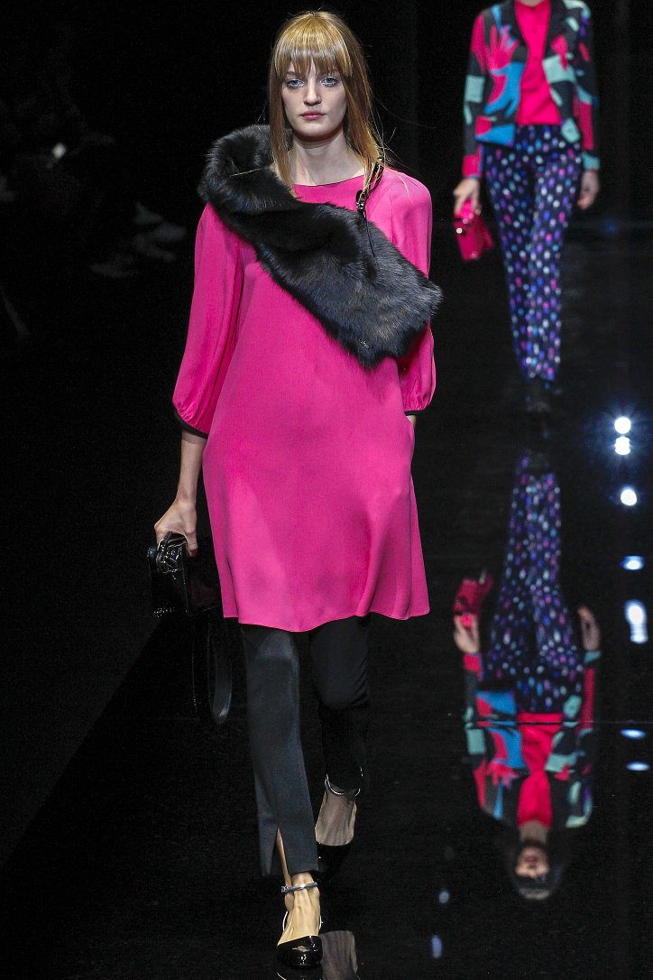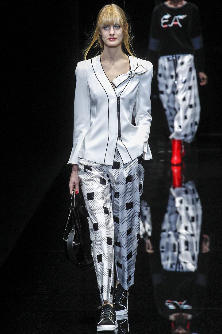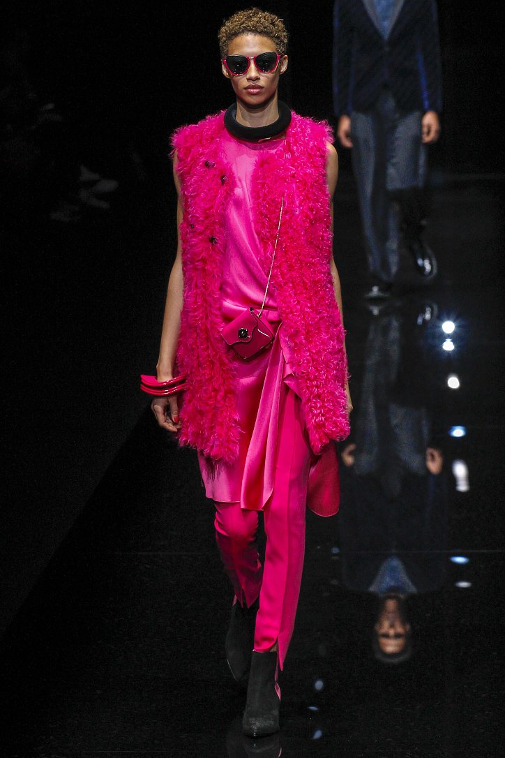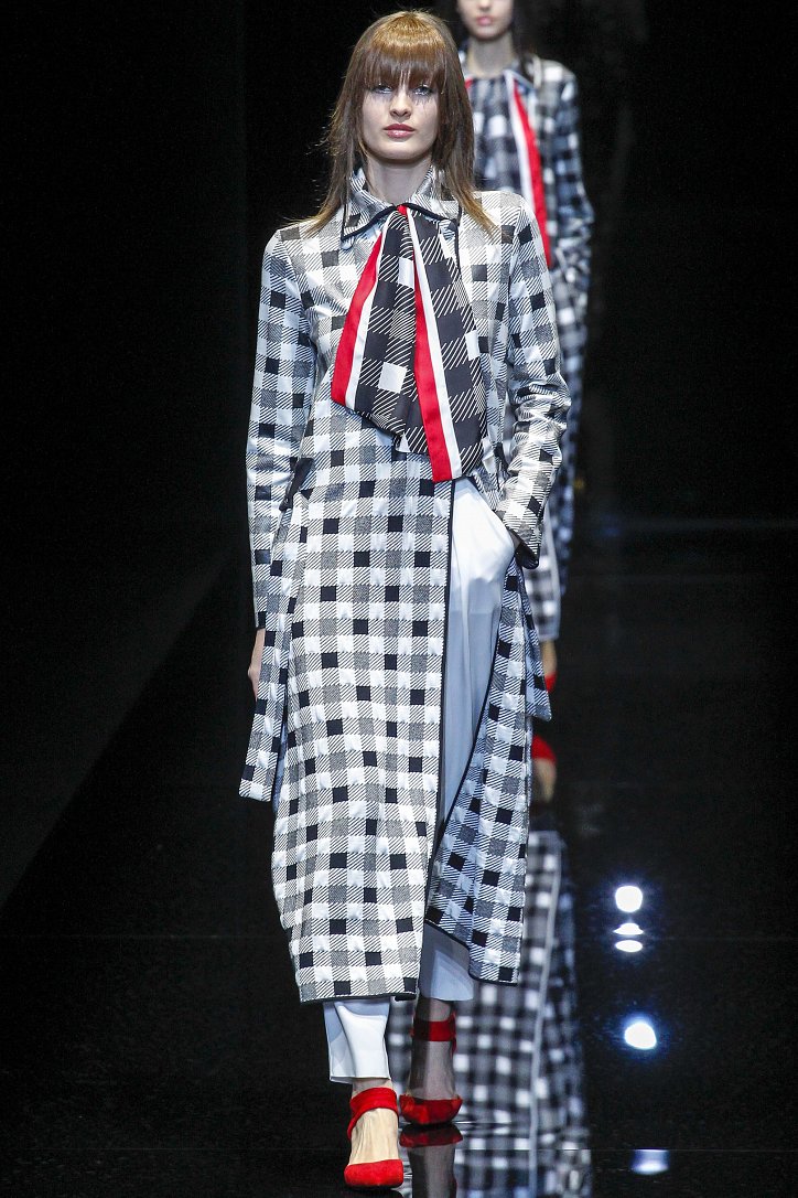 Джорджо Армани представил в Милане свою новую коллекцию. Главной темой Emporio Armani осень-зима 2017-2018 стали контрасты. Белый и черный – как основные цвета коллекции. Фуксия с бирюзой и синим цветом – в принтах. Меховые куртки дизайнер предложил носить с клетчатыми брюками из ПВХ, а объемные шубы – с кроссовками. По словам самого Армани, коллекция соткана из противоположностей и несет в себе беспокойный дух мегаполиса. Впрочем, это не помешало мэтру сохранить и женственность силуэтов, и безупречность кроя, и неповторимый итальянский шик, присущий бренду. Бархат и мех, крохотные сумочки и приталенные жакеты, броские аксессуары и умело расставленные акценты – эксперимент явно удался!