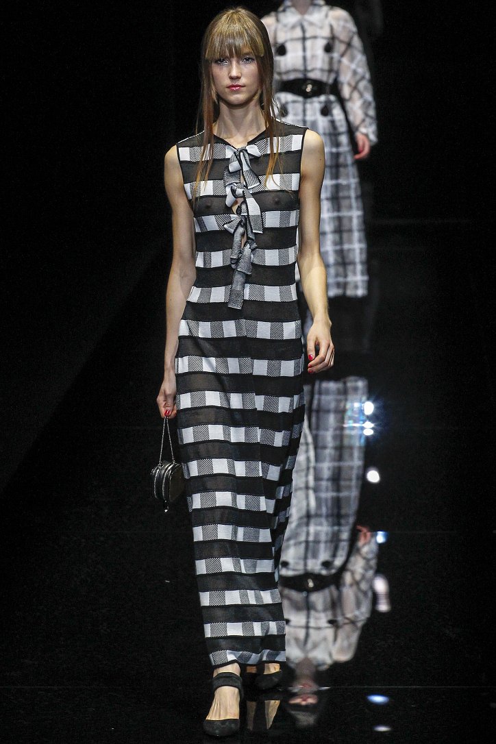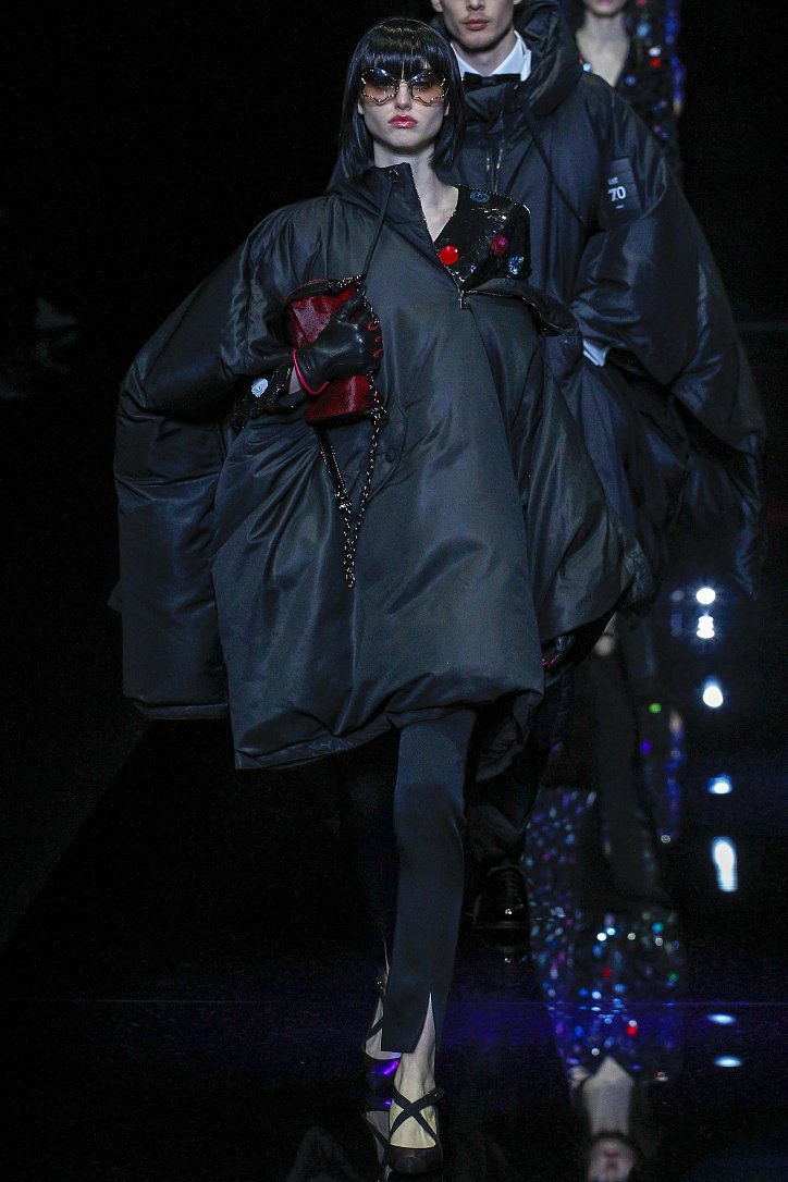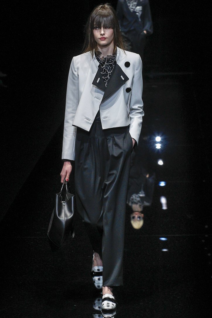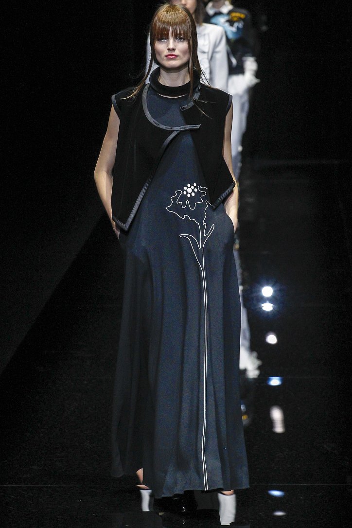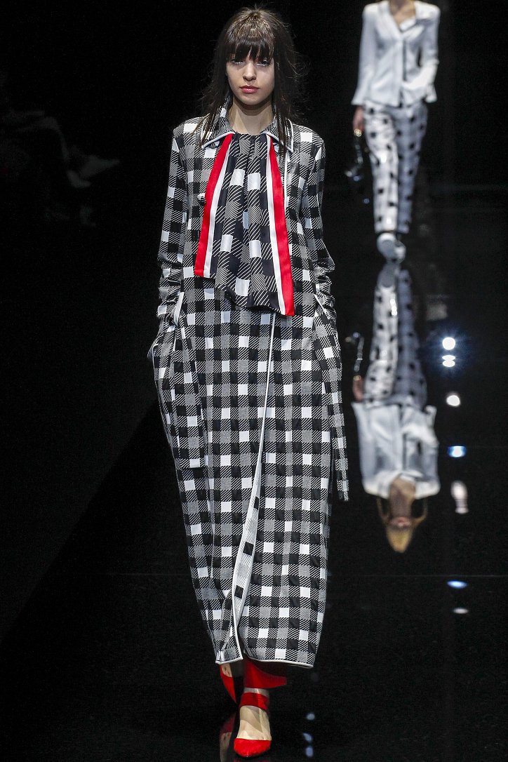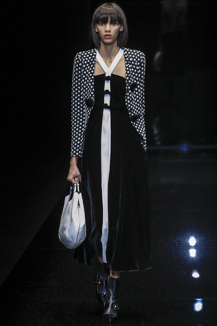 Джорджо Армани представил в Милане свою новую коллекцию. Главной темой Emporio Armani осень-зима 2017-2018 стали контрасты. Белый и черный – как основные цвета коллекции. Фуксия с бирюзой и синим цветом – в принтах. Меховые куртки дизайнер предложил носить с клетчатыми брюками из ПВХ, а объемные шубы – с кроссовками. По словам самого Армани, коллекция соткана из противоположностей и несет в себе беспокойный дух мегаполиса. Впрочем, это не помешало мэтру сохранить и женственность силуэтов, и безупречность кроя, и неповторимый итальянский шик, присущий бренду. Бархат и мех, крохотные сумочки и приталенные жакеты, броские аксессуары и умело расставленные акценты – эксперимент явно удался!