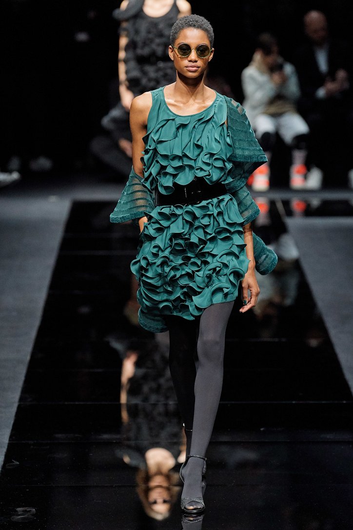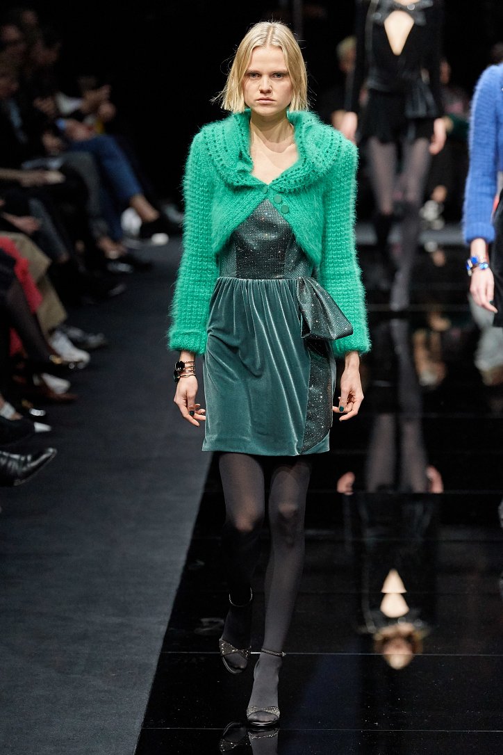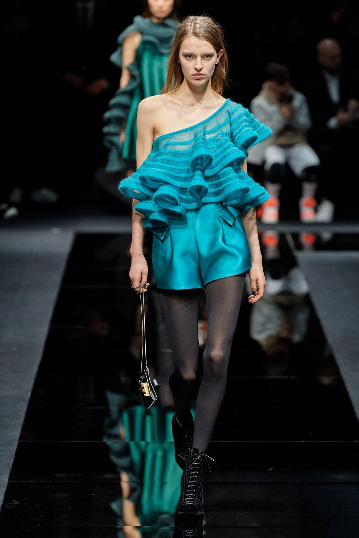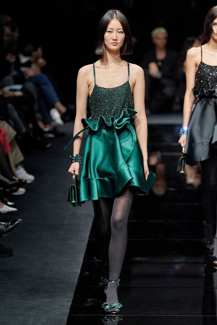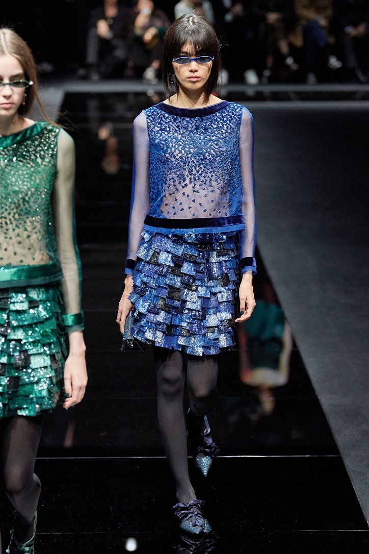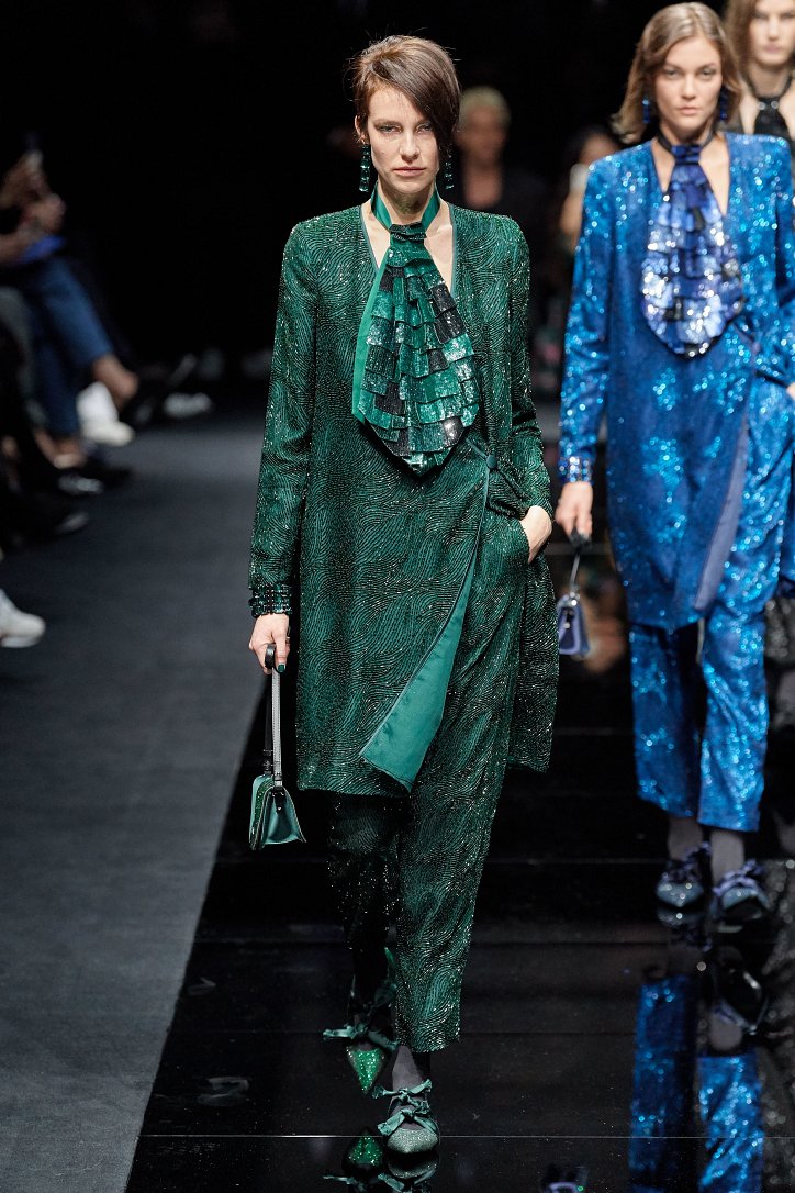 Драгоценные оттенки синего и зеленого, переработанные и органические материалы, крупная клетка и «гусиная лапка», роскошный бархат и «мужские» ткани, ультраженственные оборки и пайетки – коллекция Emporio Armani осень-зима 2020-2021 создана для сильных и решительных женщин, которые не боятся принимать решения и любят эклектику.
