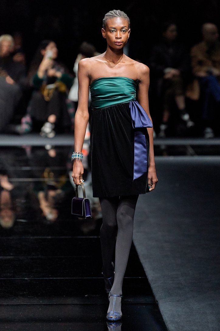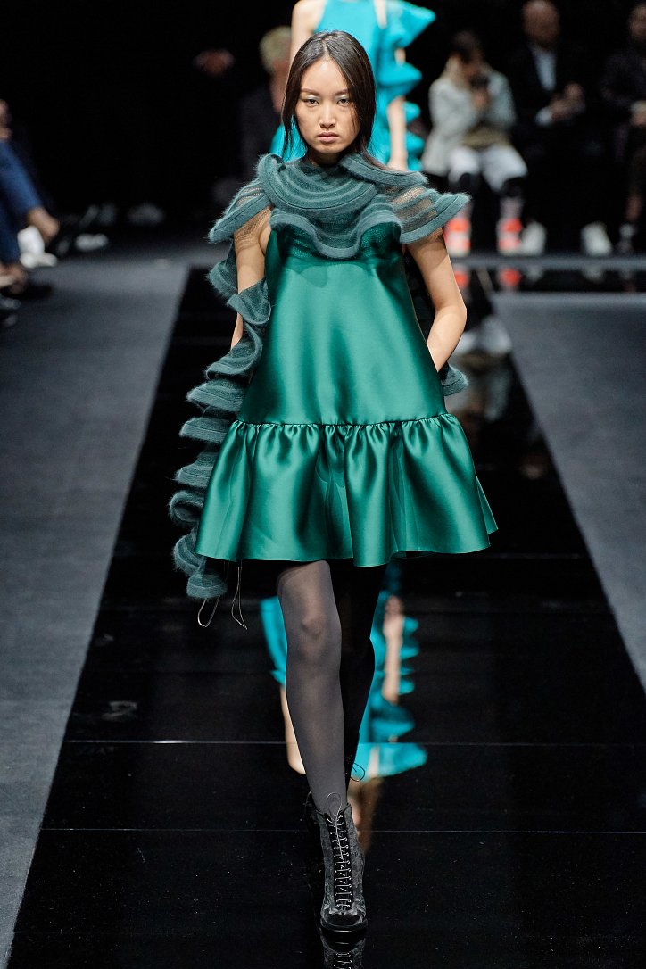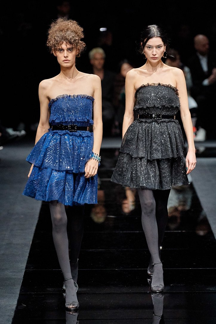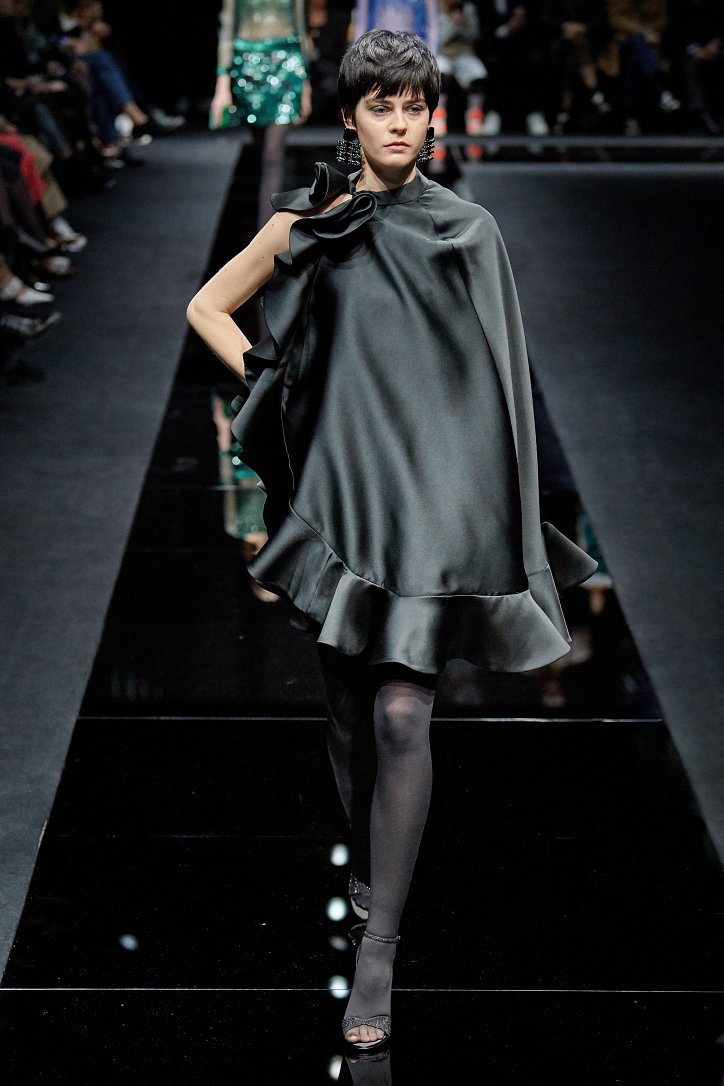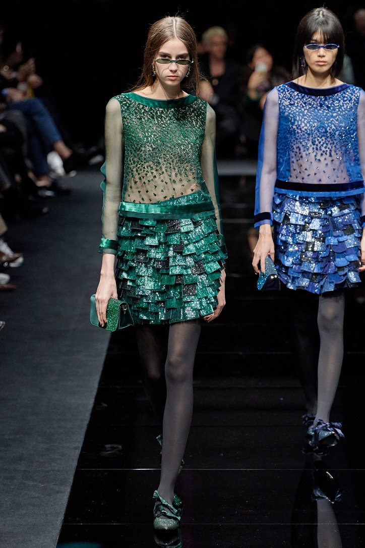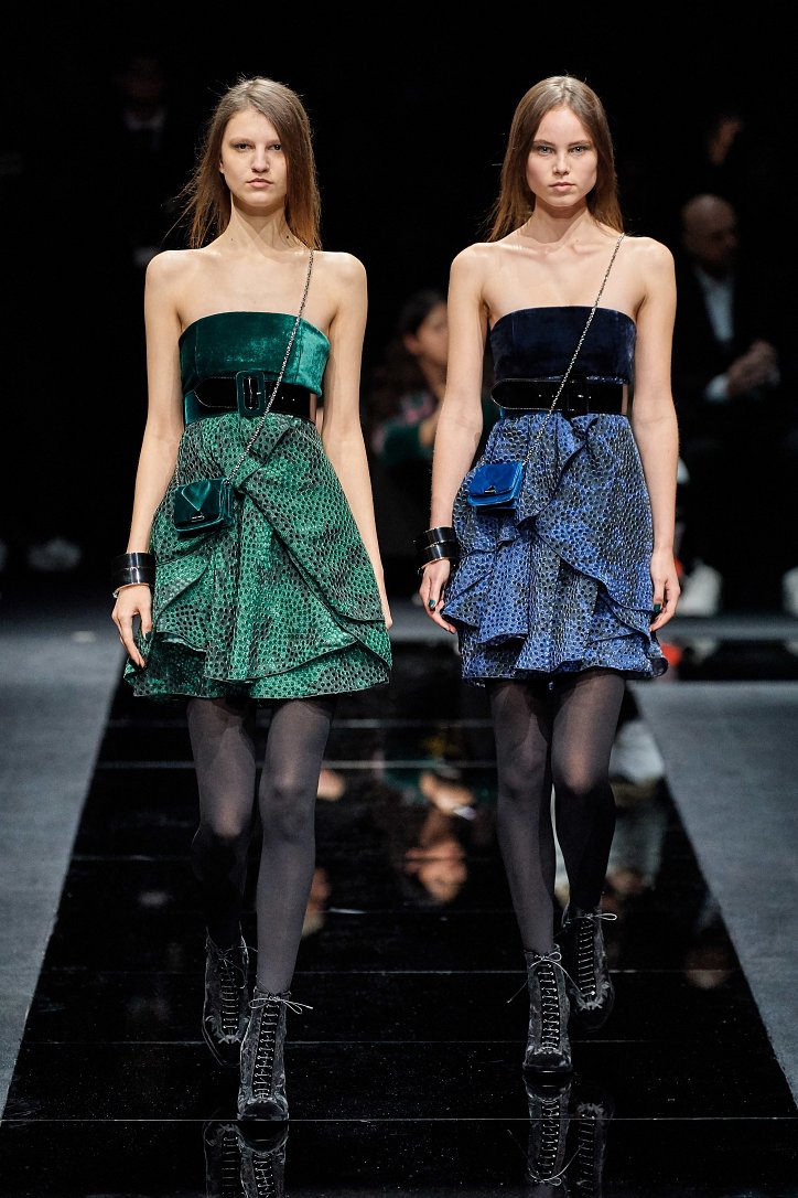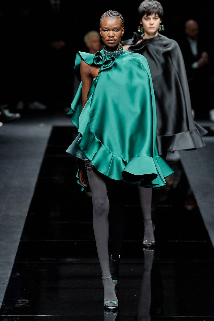 Драгоценные оттенки синего и зеленого, переработанные и органические материалы, крупная клетка и «гусиная лапка», роскошный бархат и «мужские» ткани, ультраженственные оборки и пайетки – коллекция Emporio Armani осень-зима 2020-2021 создана для сильных и решительных женщин, которые не боятся принимать решения и любят эклектику.