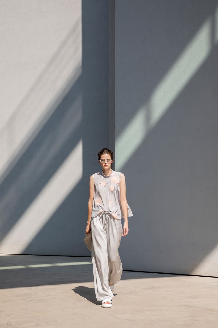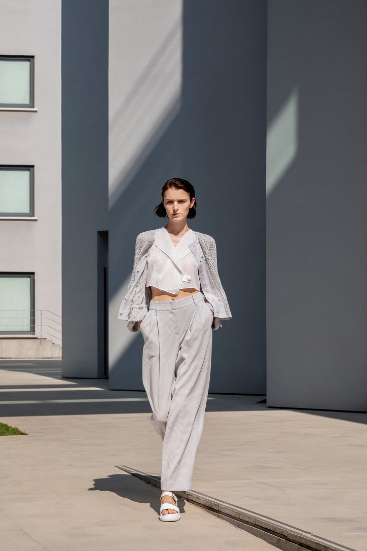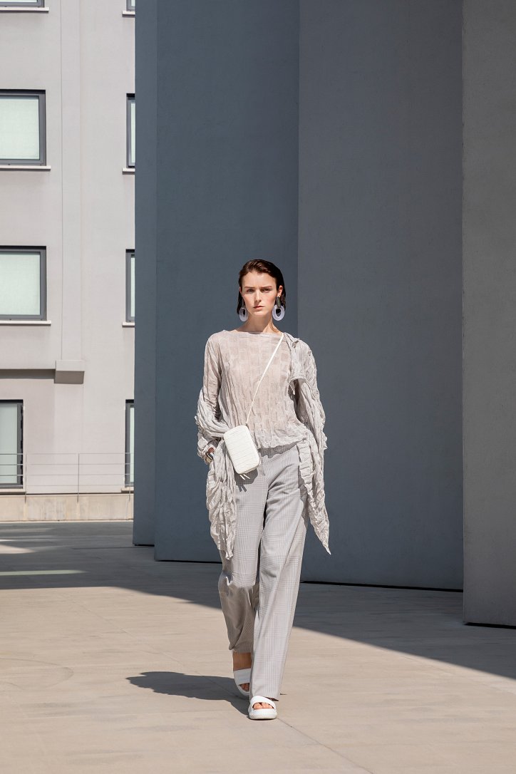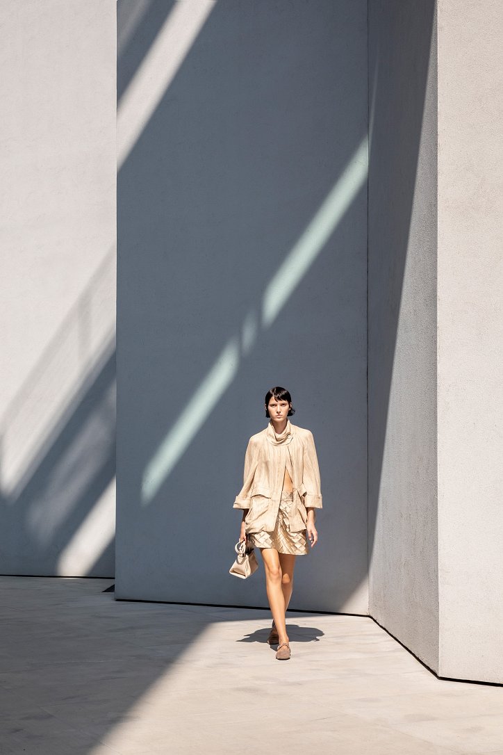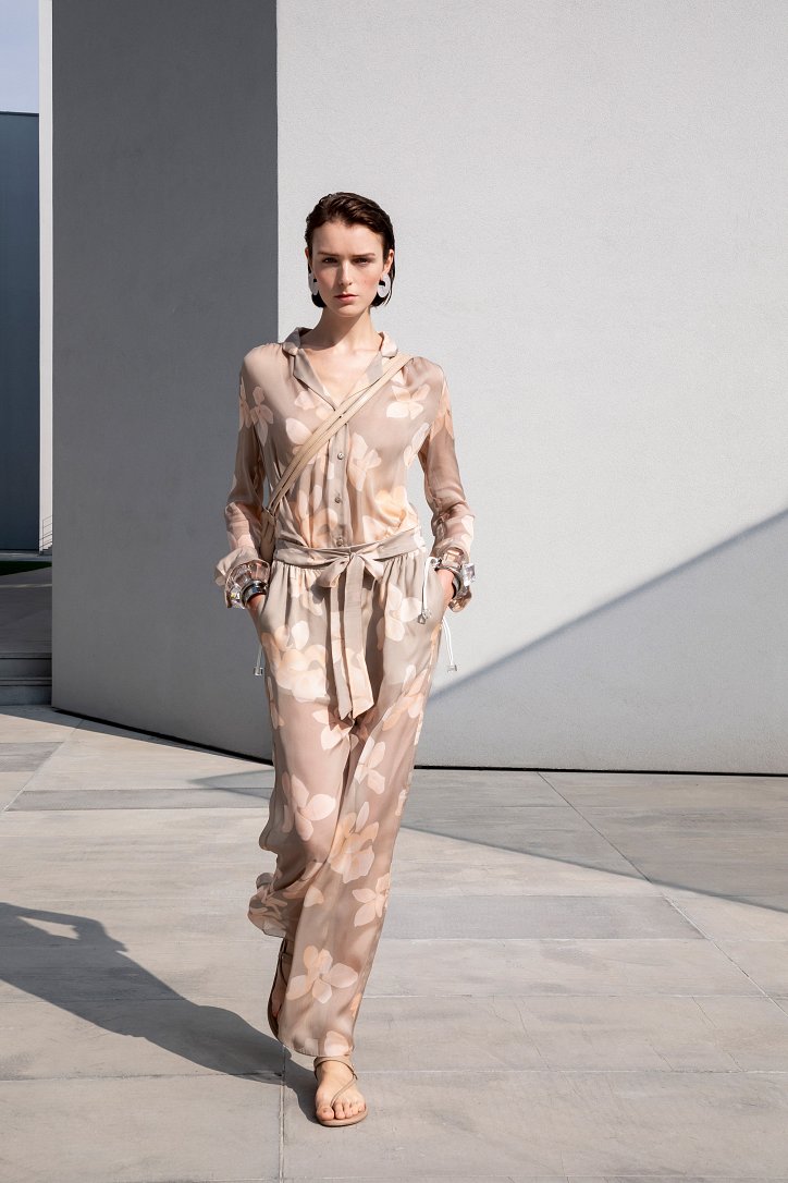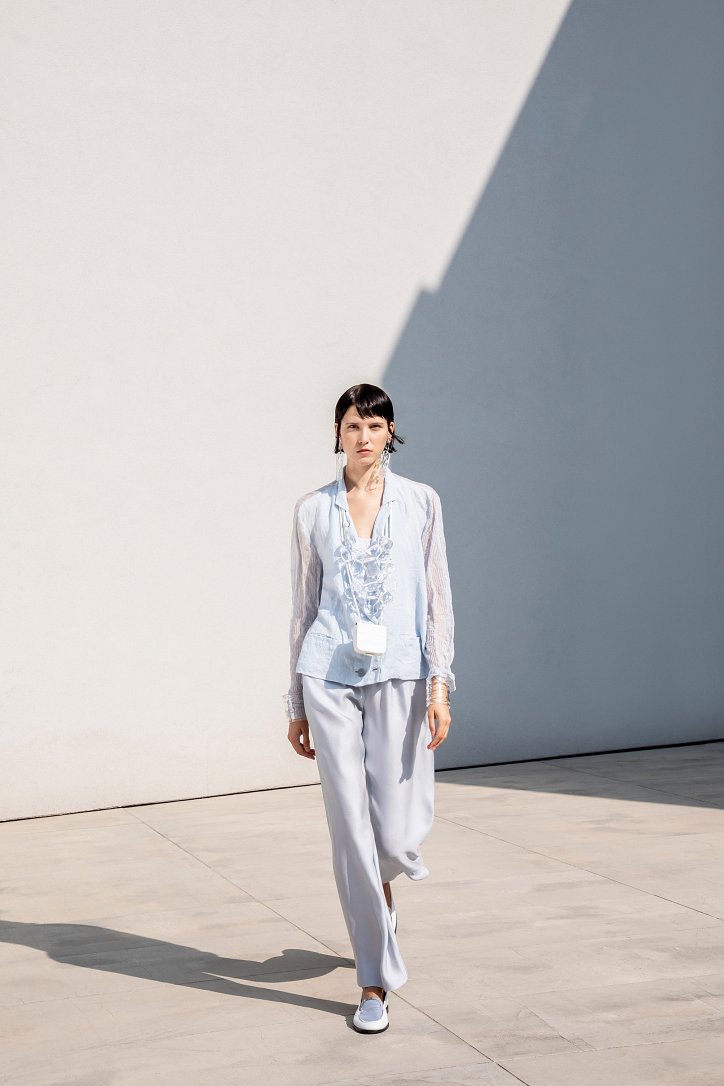 Брючные костюмы и летящие тренчи, широкие брюки на высокой талии и свободные шорты, платья и комбинезоны – все было очень светлое, легкое и свободное.