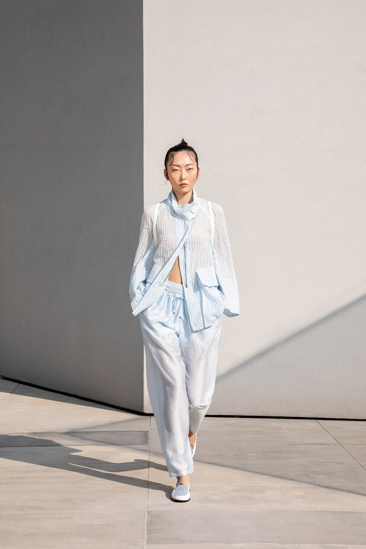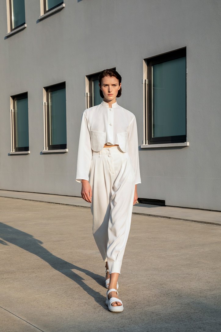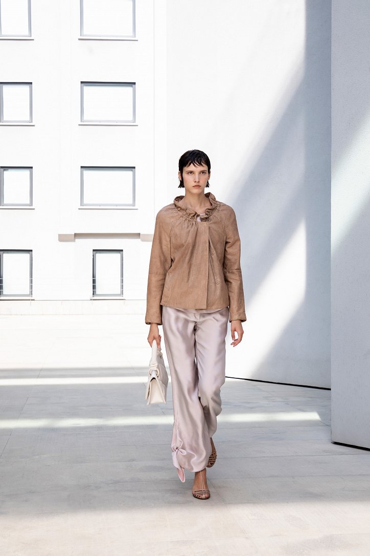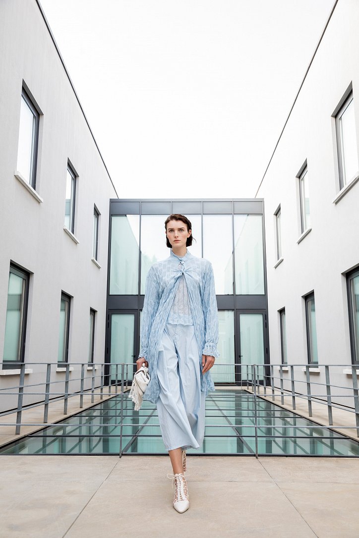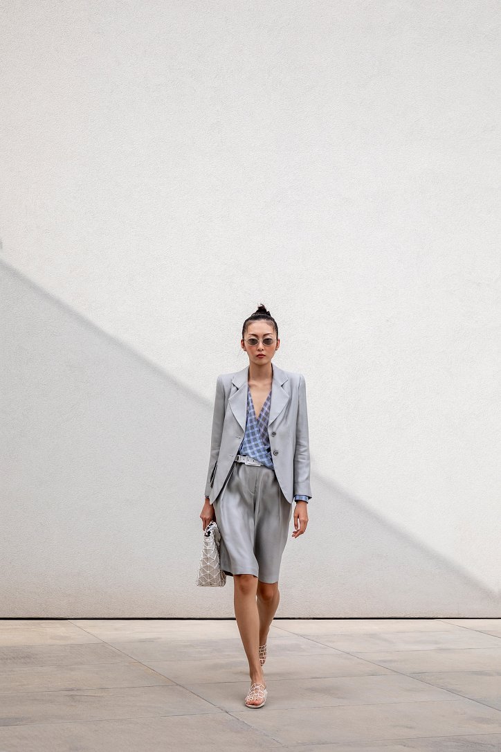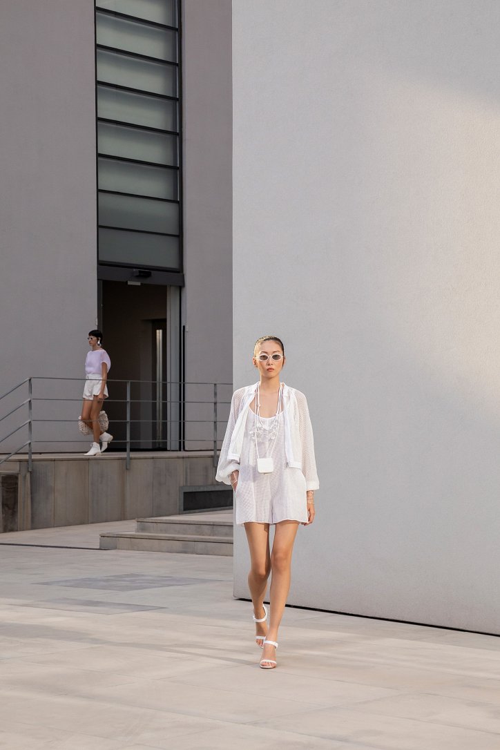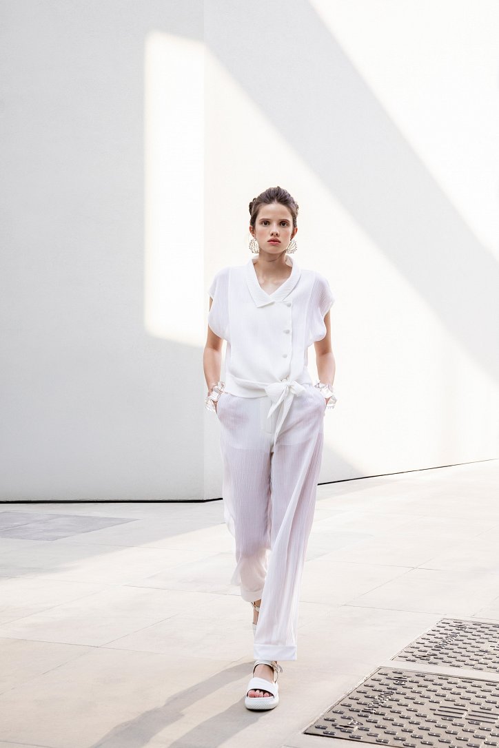 Брючные костюмы и летящие тренчи, широкие брюки на высокой талии и свободные шорты, платья и комбинезоны – все было очень светлое, легкое и свободное.