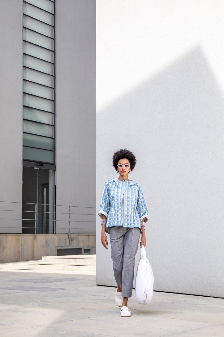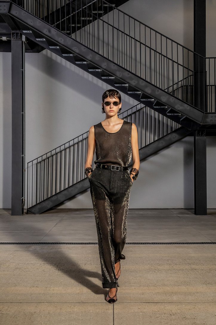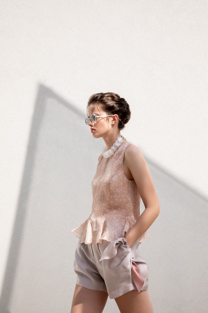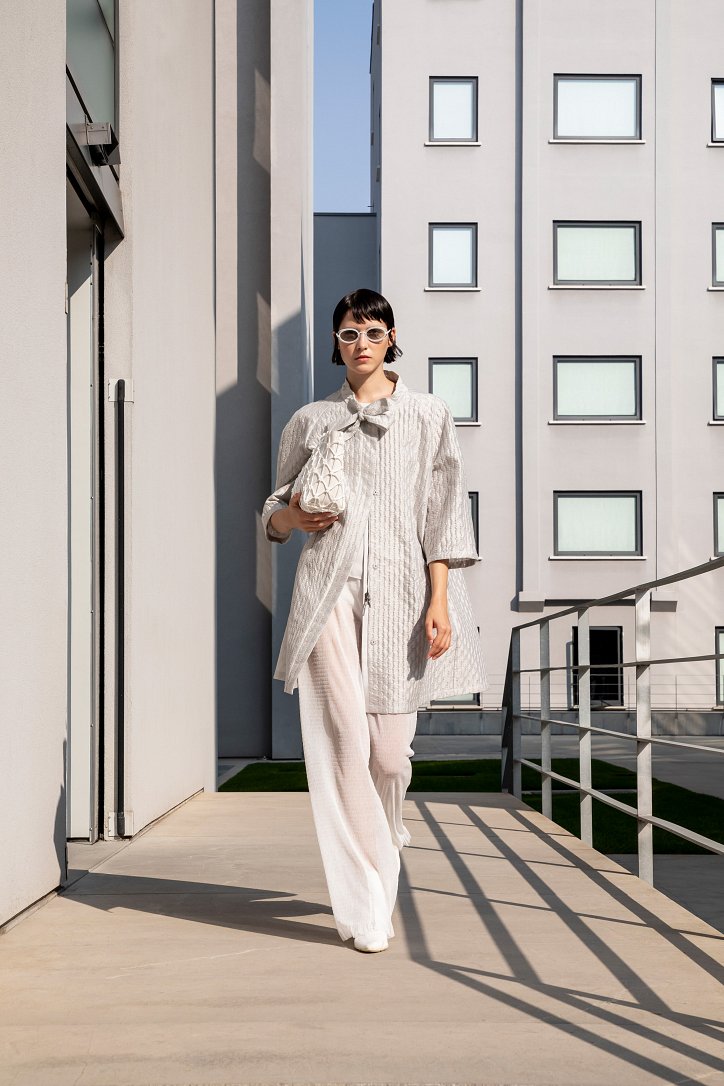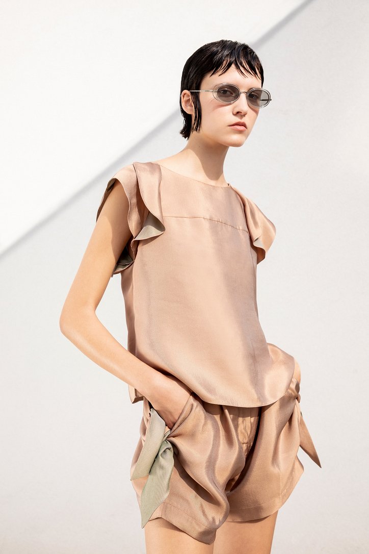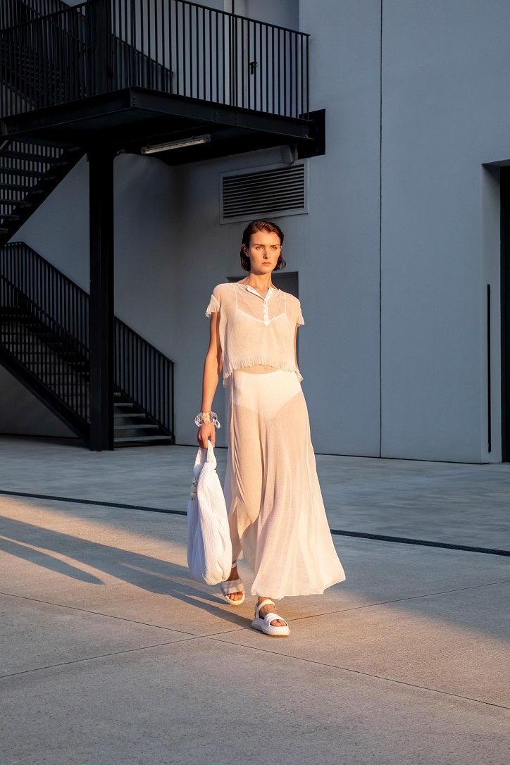 Брючные костюмы и летящие тренчи, широкие брюки на высокой талии и свободные шорты, платья и комбинезоны – все было очень светлое, легкое и свободное.