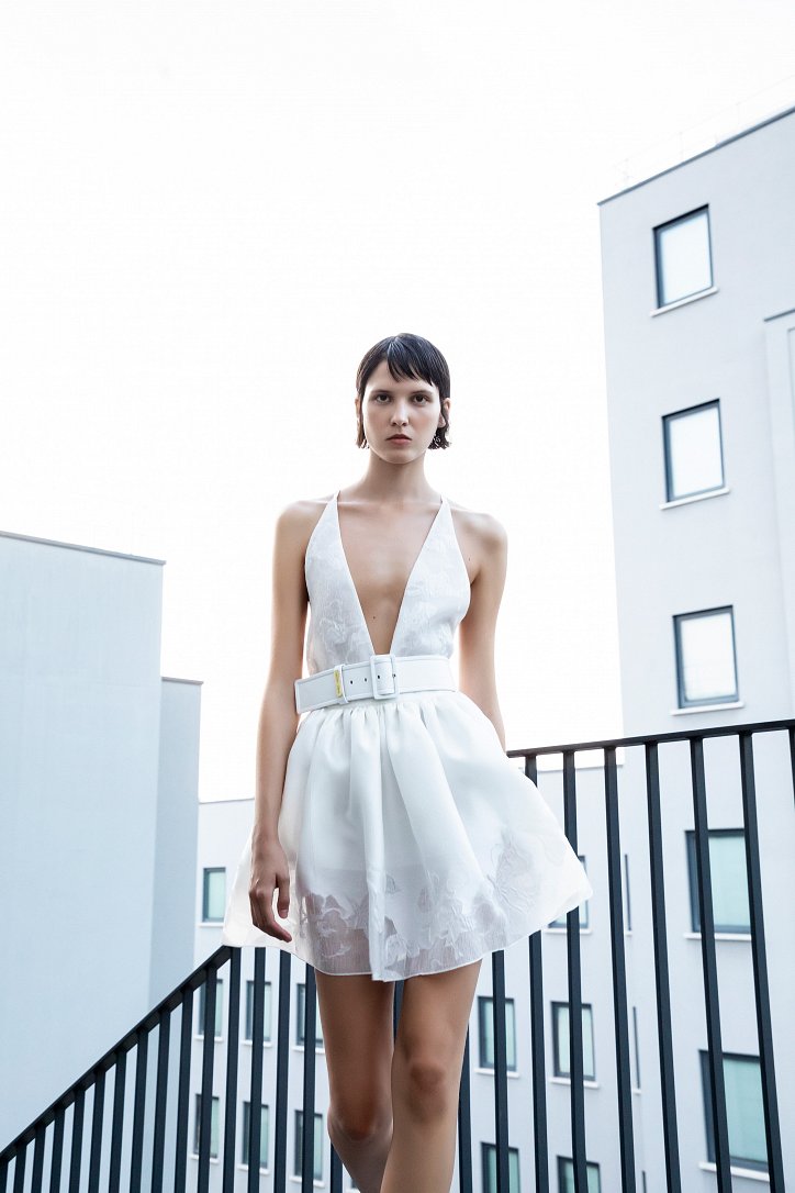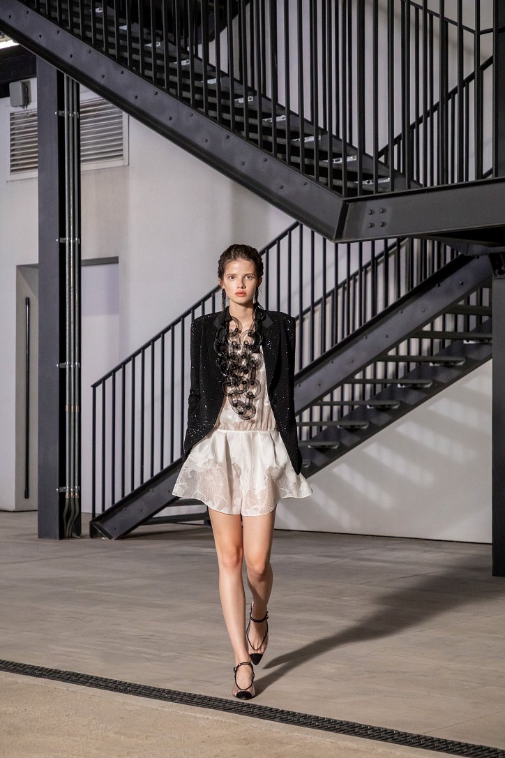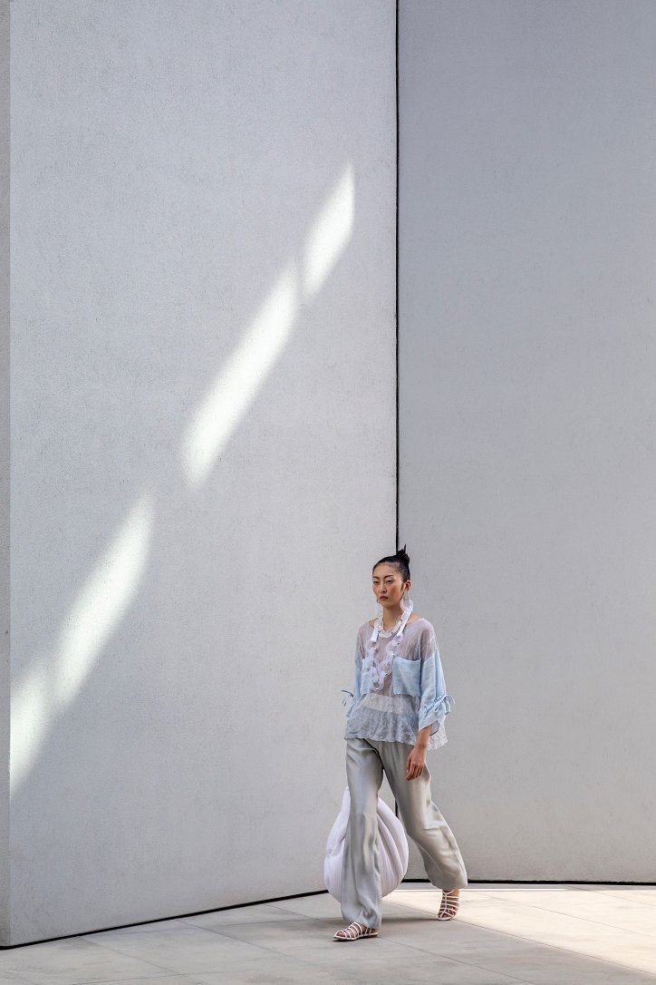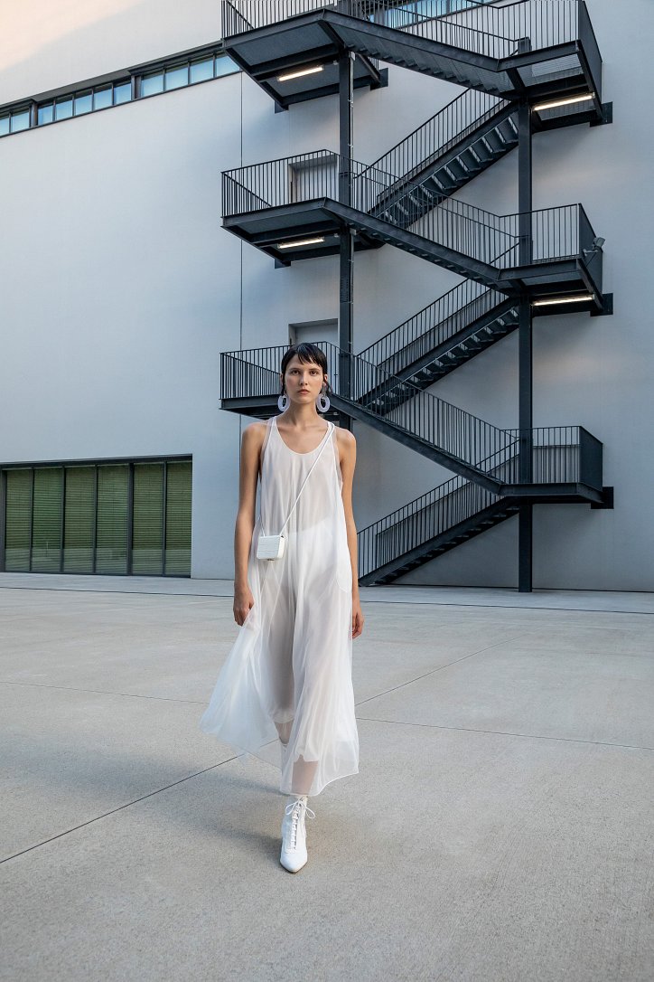 Герои короткометражки, среди которых были и танцоры, и оперный певец, и известная ди-джей, двигались в одежде из полупрозрачных и летящих тканей, едва заметный блеск которых выдавал их высокотехнологичное происхождение.
