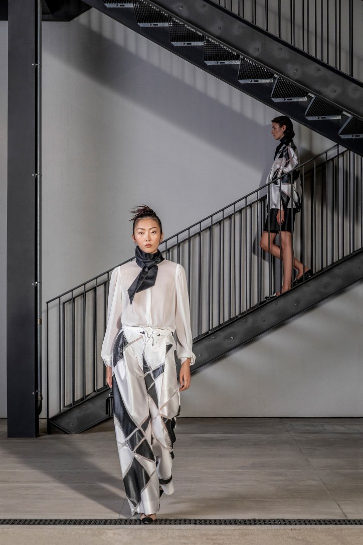 Новая коллекция Emporio Armani была представлена в формате видеоэссе Building Dialogues. Замкнутое пространство, в котором оказываются главные герои, невольно навевает мысли о вынужденной изоляции, а «многоточие» в конце фильма – явная аллегория: ведь пандемия еще не закончилась…