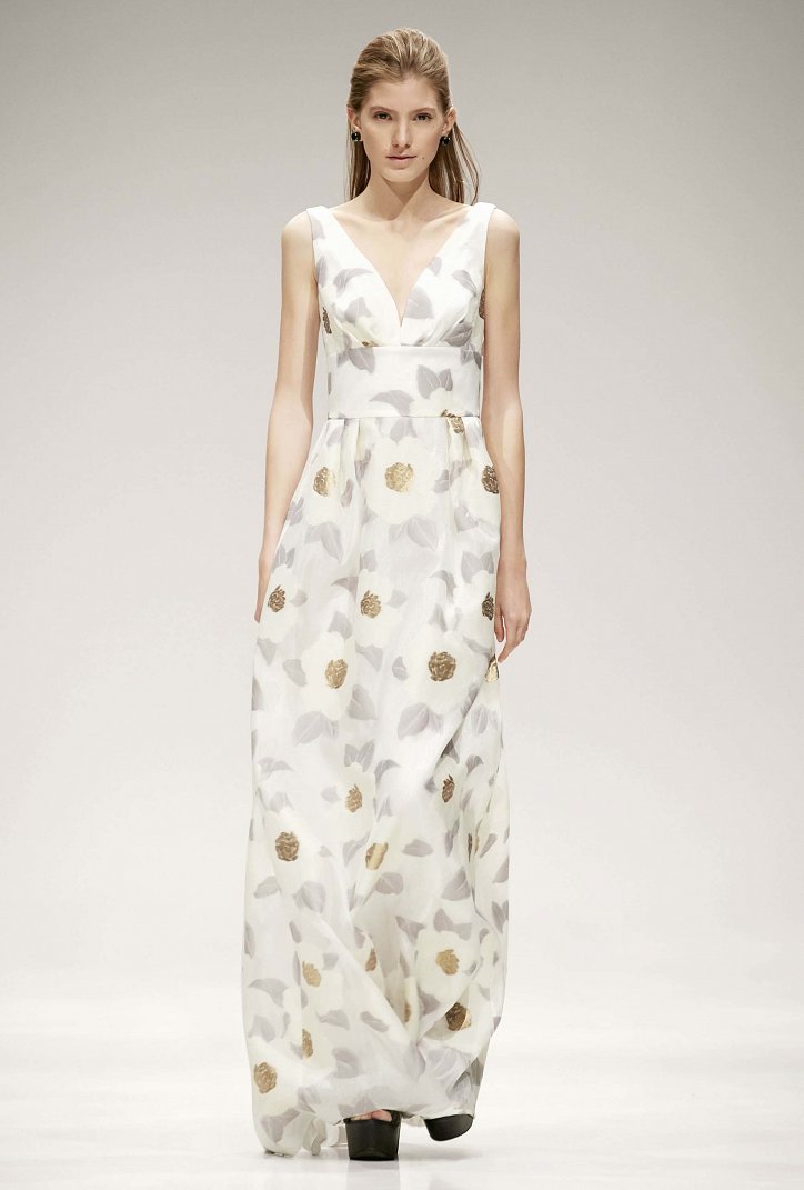 Немецкий бренд Escada отмечает в этом году свое 40-летие. Об этом ненавязчиво напоминает и новая коллекция Escada весна-лето 2017: силуэты эпохи семидесятых в ней явно неслучайны. А вот цветовая палитра, выбранная креативным директором бренда Daniel Wingate, явно зовет нас на сафари в Африку: полосатые платья и топы выполнены в «пряной» цветовой гамме, а растительные принты и оттенки выжженной пустыни, сочной зелени и безоблачного неба «раскрасили» свободные блузы, «соскользнувшие» с одного плеча, широкие кюлоты, плащи и платья.
