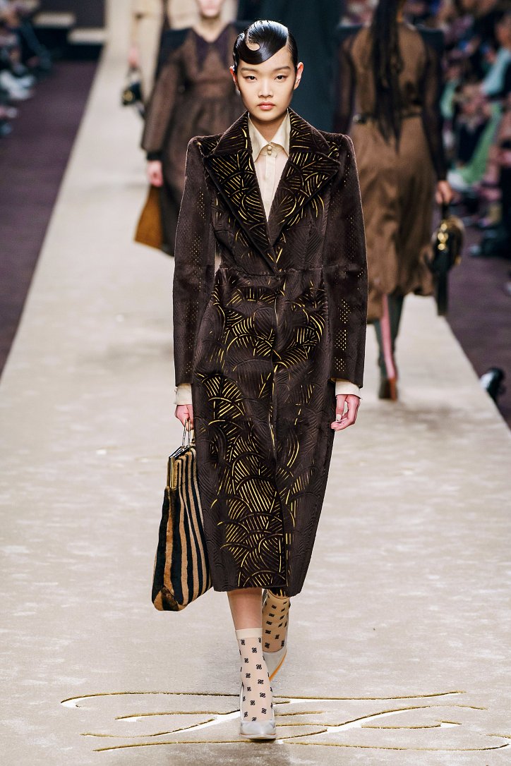 Видео, в котором Карл Лагерфельд рисует, в чем он был одет в первый день работы в доме моды Fendi, не сдерживающая слез Silvia Venturini Fendi и открытки для гостей - с эскизами моделей из новой коллекции, нарисованными рукой Лагерфельда, и датой его смерти на обороте - коллекция Fendi, последняя, разработанная легендарным кутюрье, стала не столько показом, сколько данью памяти великому Карлу.
