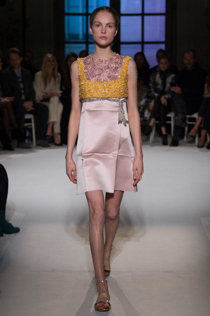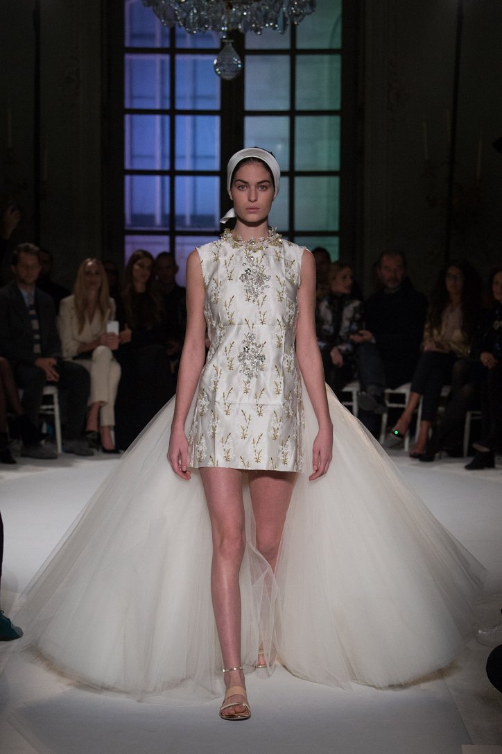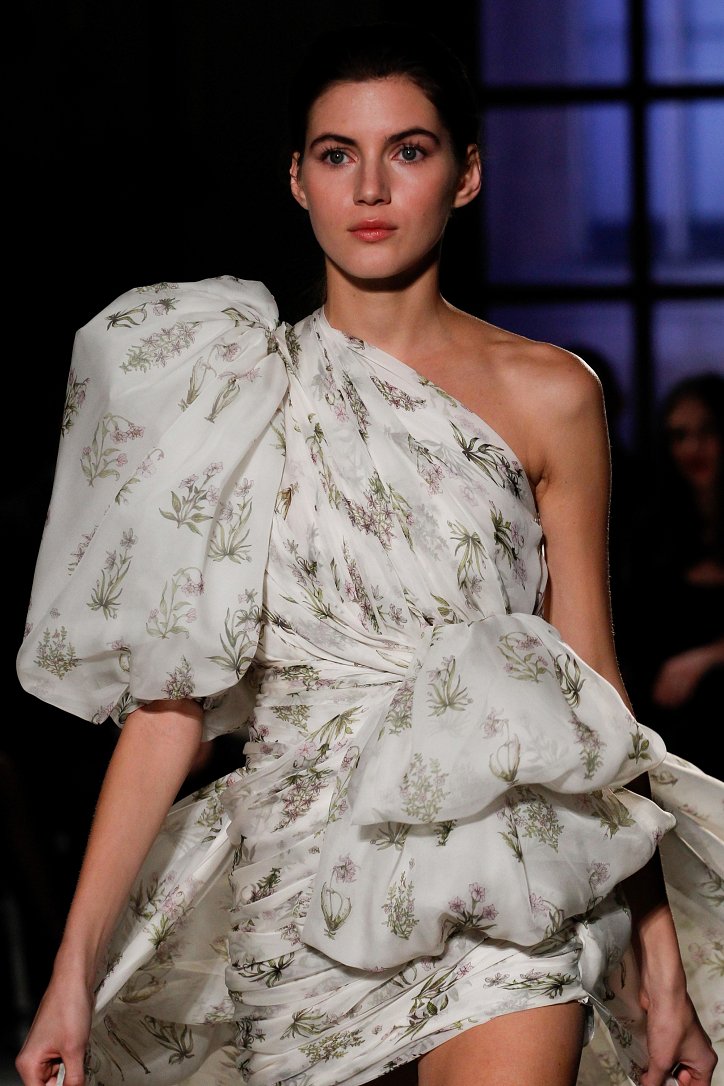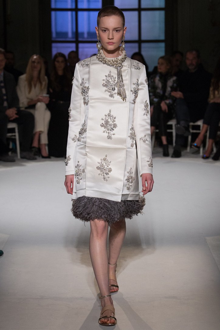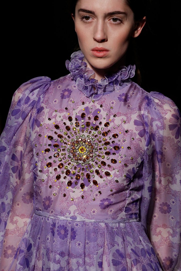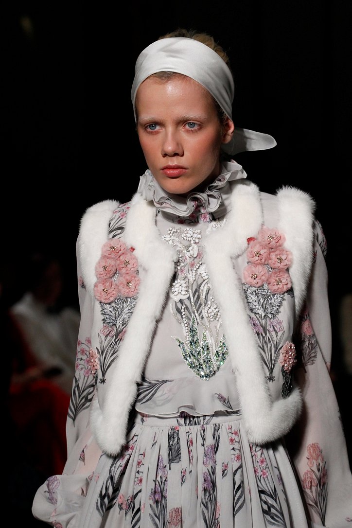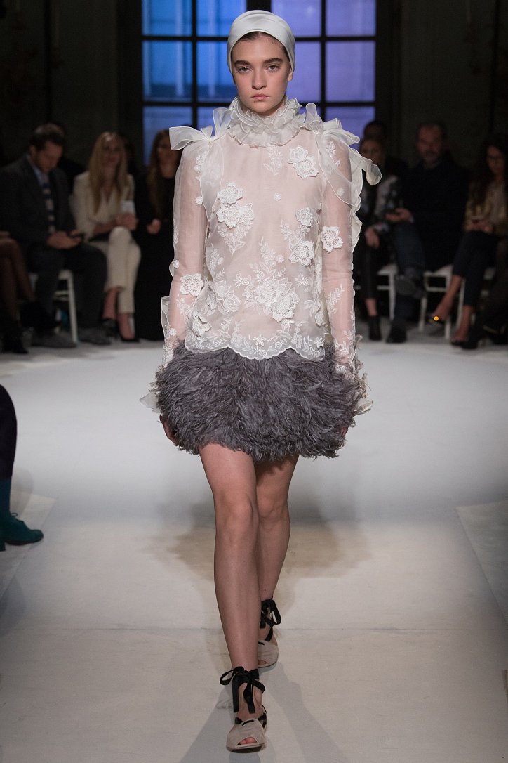 Конечно же, в коллекции Giambattista Valli Haute Couture весна 2017 были цветы! Много цветов – пастельно-нежные и яркие, мелкие и крупные, в виде принтов и объемного декора. «Главный садовник» модного Олимпа остается верен себе. Потрясающие по своей красоте букеты на этот раз распустились на пышных бальных платьях и оригинальных моделях с длинными шлейфами и мини-юбками «в анфас», коротких атласных платьицах с мятыми «заломами» и брючных костюмах в «пижамном» стиле. Там же, где цветов не было, в распустившиеся бутоны превращались сами платья – благодаря огромному количеству рюшей, оборок, воланов, пышным каскадным юбками и «волнистым» воротникам-«стоечкам».