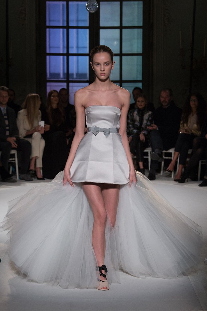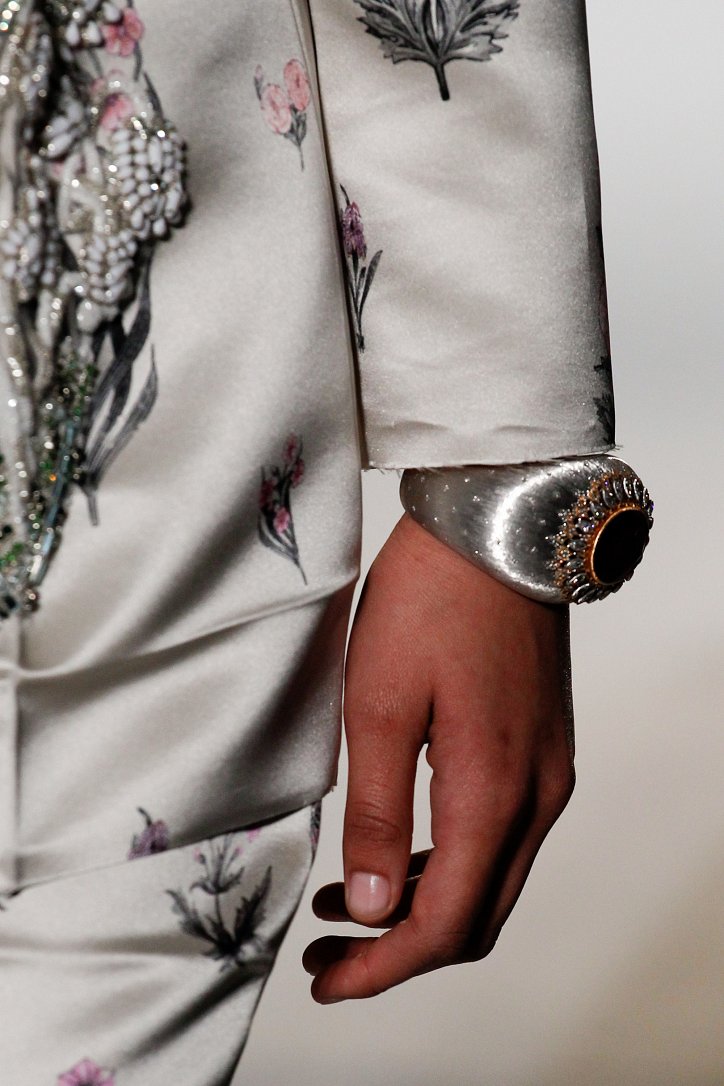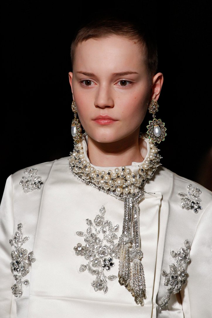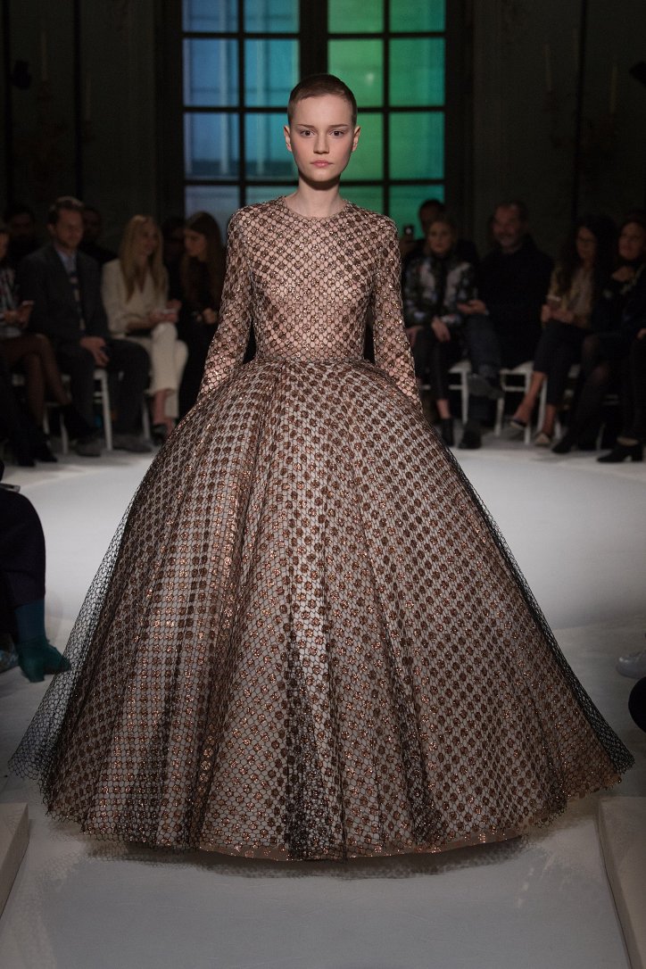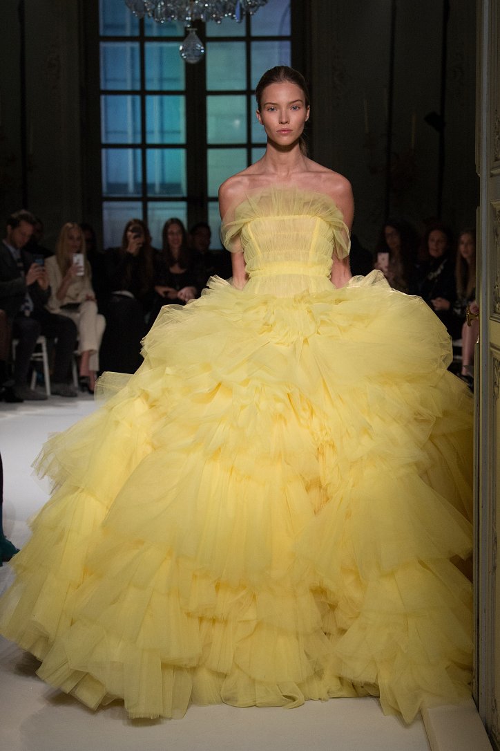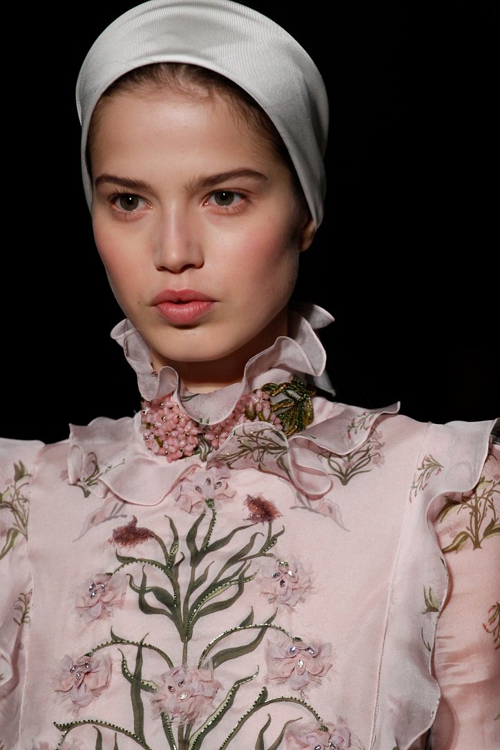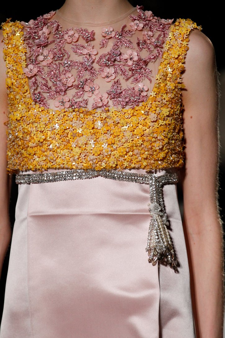 Конечно же, в коллекции Giambattista Valli Haute Couture весна 2017 были цветы! Много цветов – пастельно-нежные и яркие, мелкие и крупные, в виде принтов и объемного декора. «Главный садовник» модного Олимпа остается верен себе. Потрясающие по своей красоте букеты на этот раз распустились на пышных бальных платьях и оригинальных моделях с длинными шлейфами и мини-юбками «в анфас», коротких атласных платьицах с мятыми «заломами» и брючных костюмах в «пижамном» стиле. Там же, где цветов не было, в распустившиеся бутоны превращались сами платья – благодаря огромному количеству рюшей, оборок, воланов, пышным каскадным юбками и «волнистым» воротникам-«стоечкам».